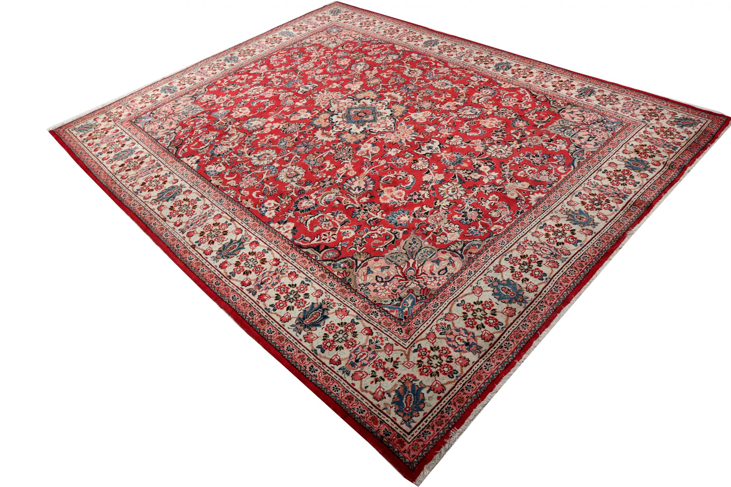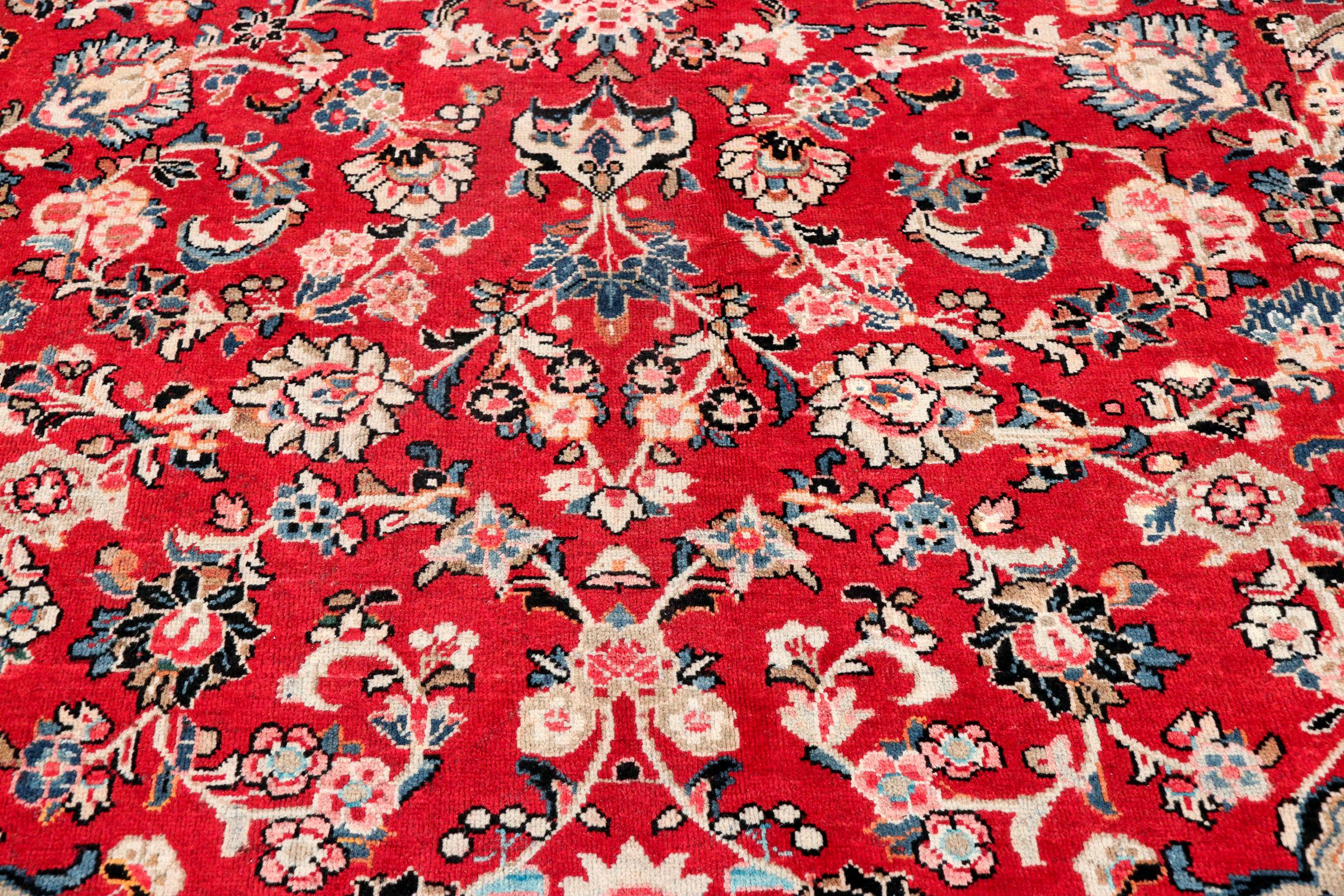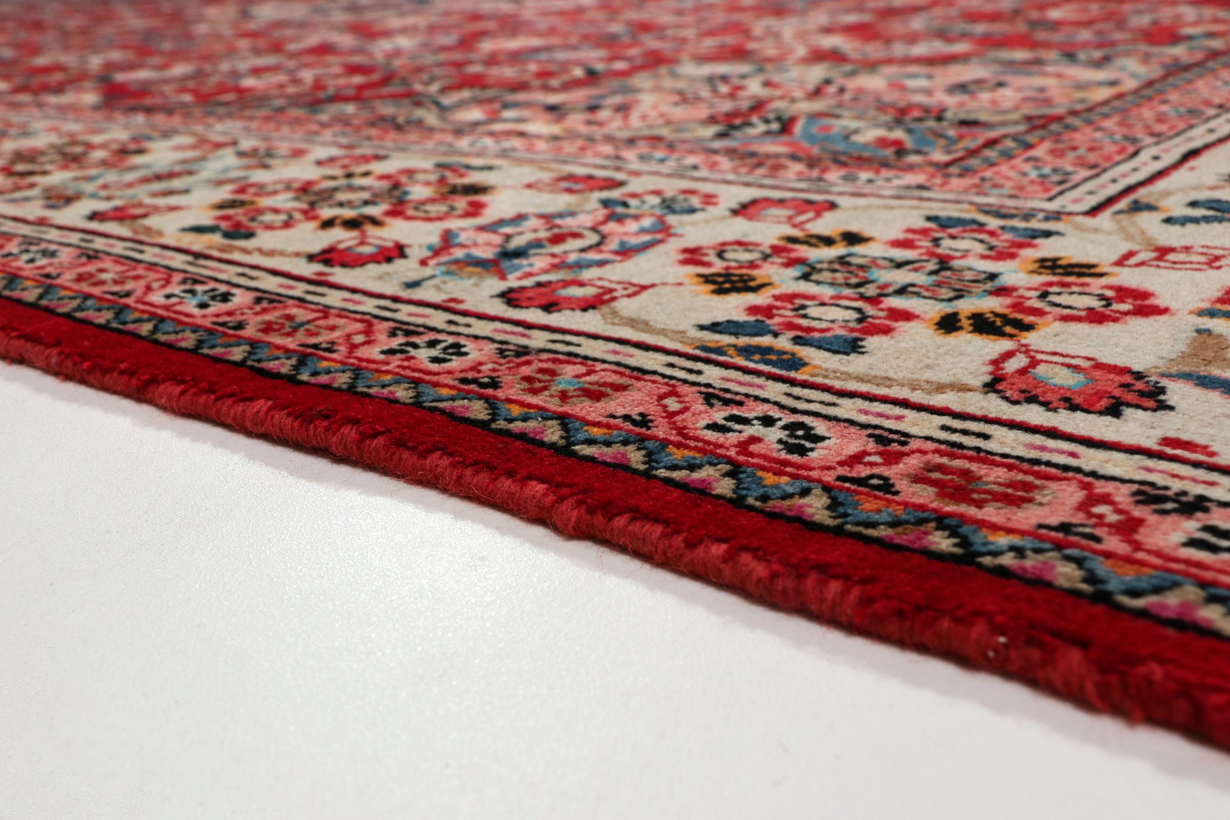 Carpet ID: 8813500173693 Size: 387x297 cm Thickness: ap. 12 mm Knot density: 72 000 - 90 000 / m² Manufacturing: Knotted by hand Pile: Handspun wool Warp: Cotton Origin: Persia Age: New Weight: ap. 40 kg Also know as Mahalat In stock: Unique - Only 1 in stock
