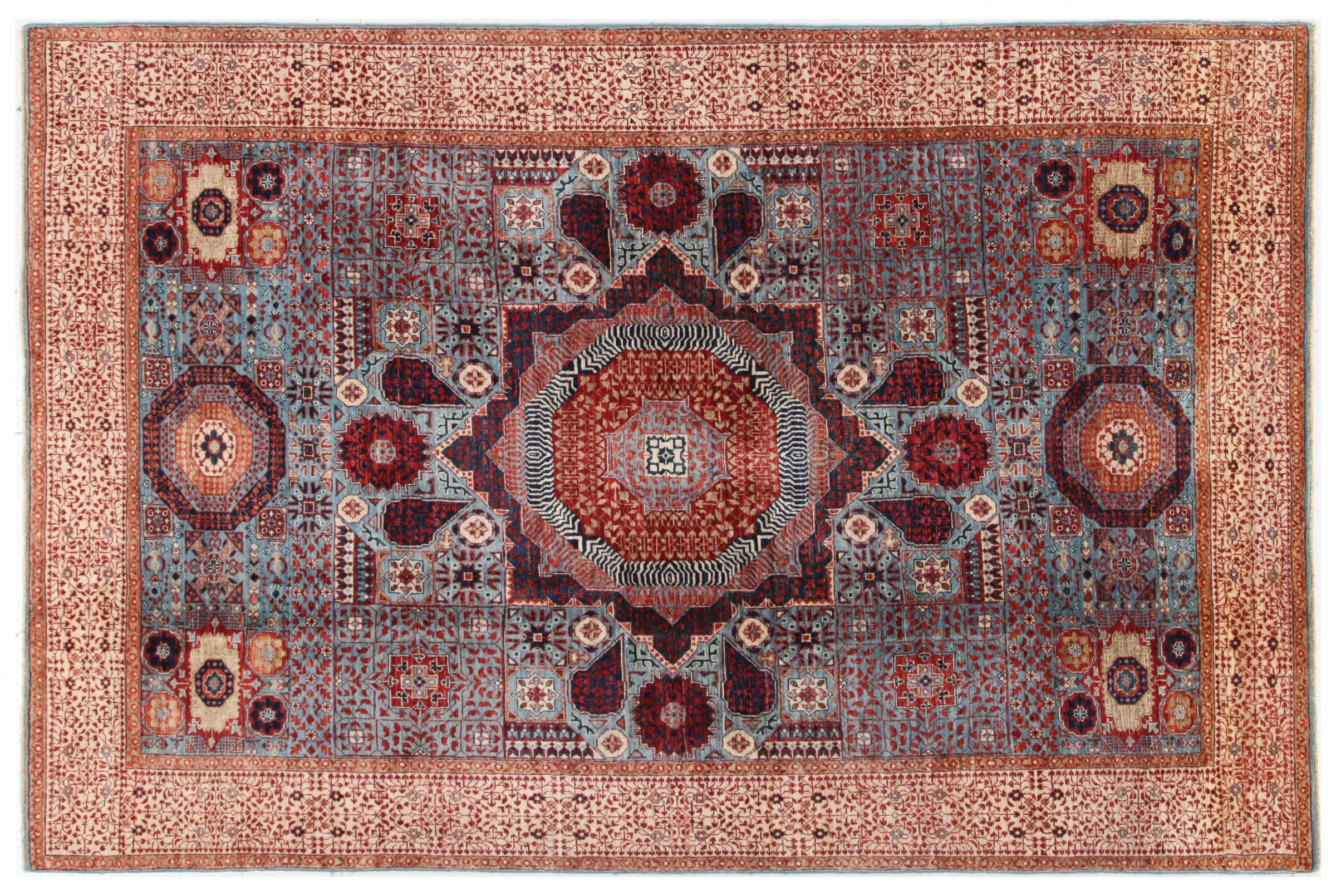 A large part of Pakistani rug production takes place in and around the cities of Lahore and Karachi. Many of the rug knotters of that time fled to Pakistan during the war with India and settled there. Today, especially hand-knotted Pakistan Bukhara rugs are well-known. Similar to the Afghan oriental rugs, Pakistani rugs are also made in dark colours and mostly have shades of red. Even the well-known elephant foot pattern (repeating octagonal pattern) can be found on a Pakistani.