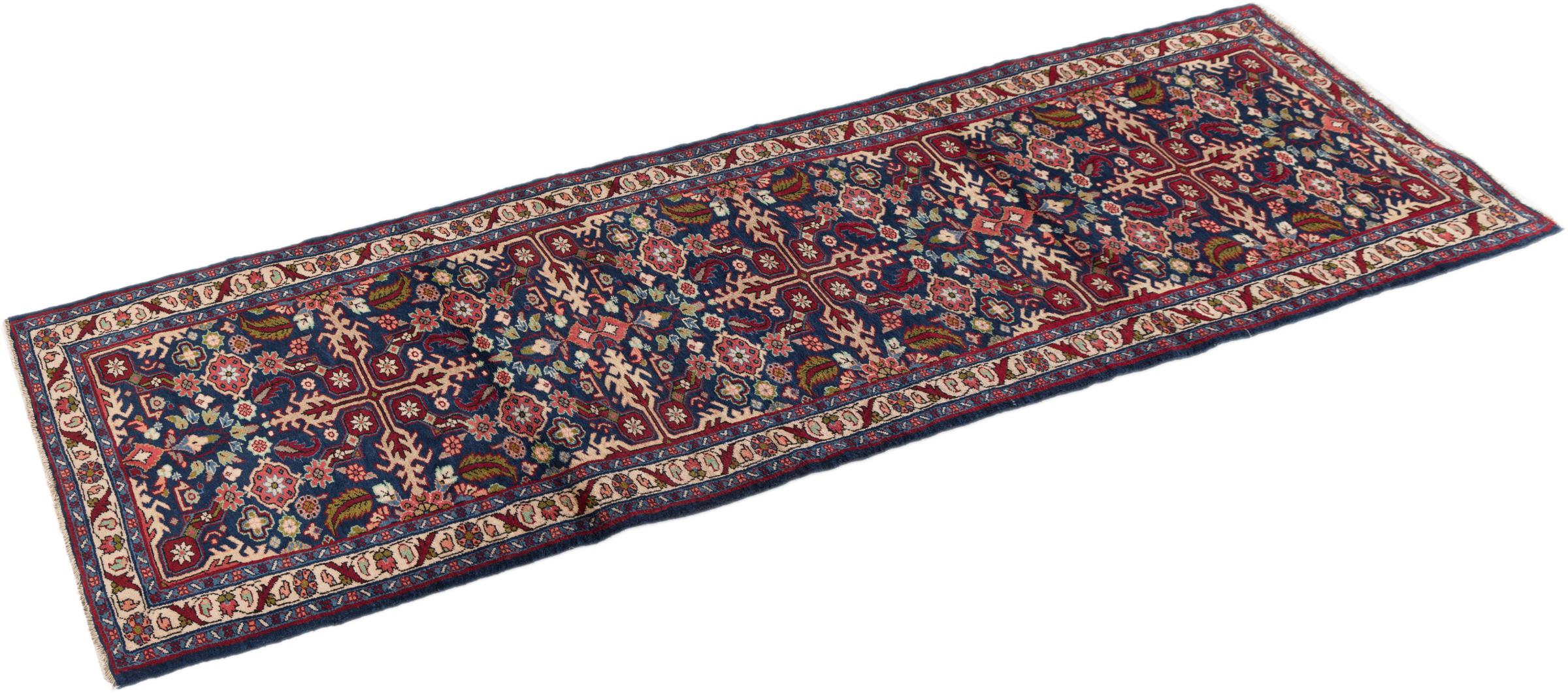 Carpet ID: 29615900574 Size: 292x83 cm Thickness: ap. 12 mm Knot density: 320 000 - 360 000 / m² Manufacturing: Knotted by hand Pile: Handspun wool Warp: Cotton Origin: Persia Age: New Weight: ap. 8 kg Also know as Meriban In stock: Unique - Only 1 in stock