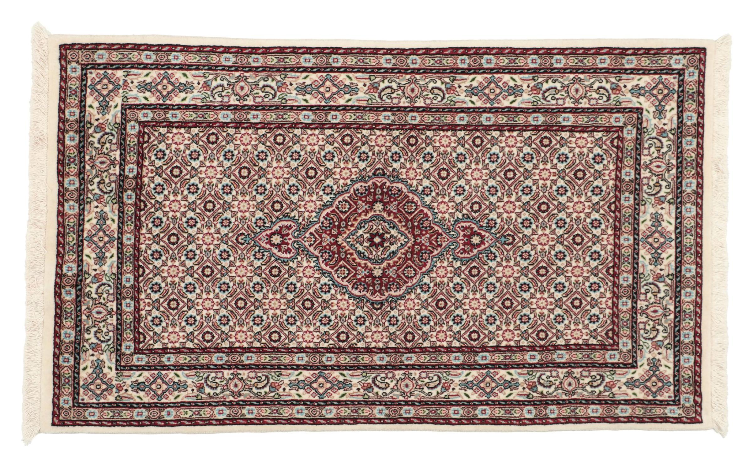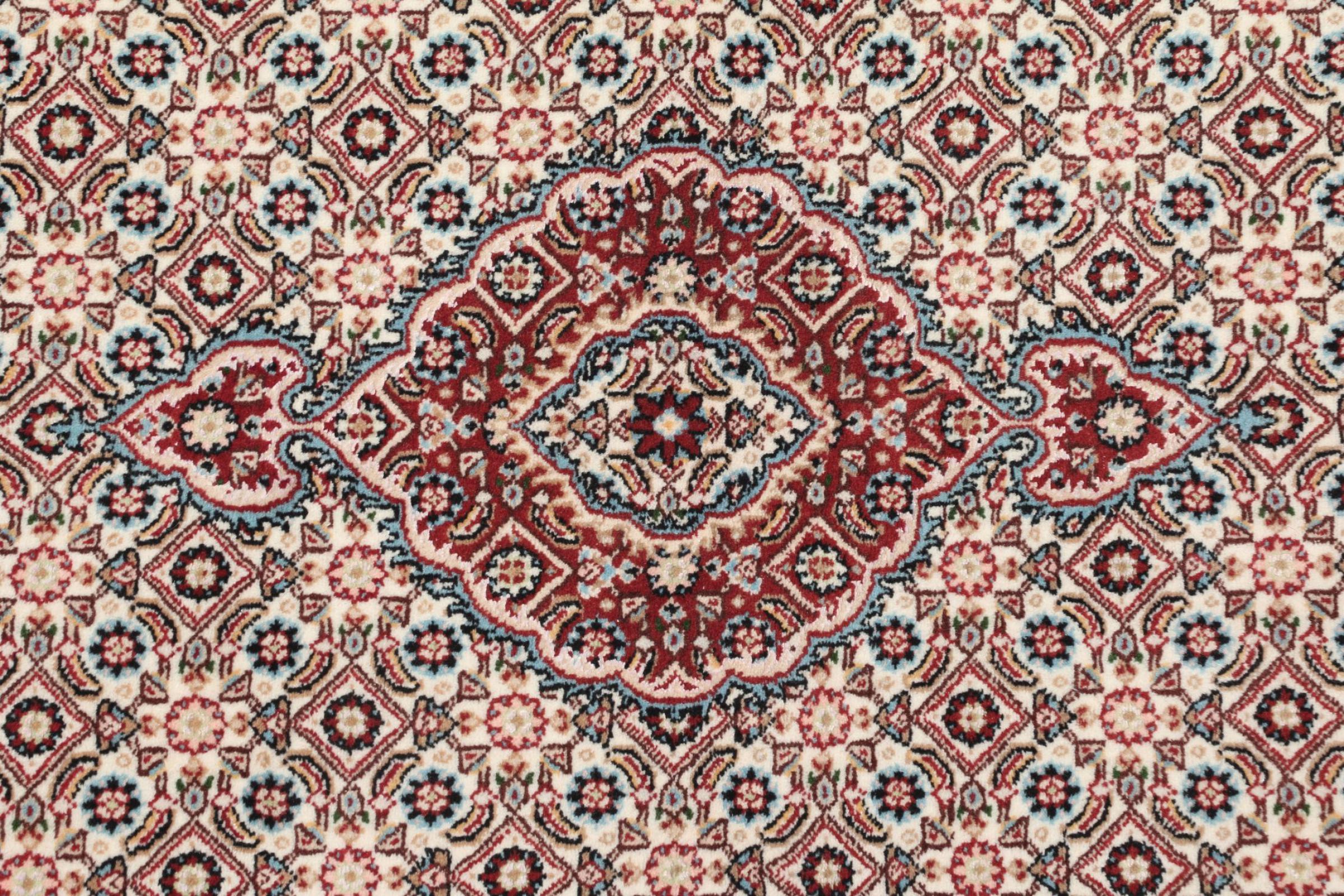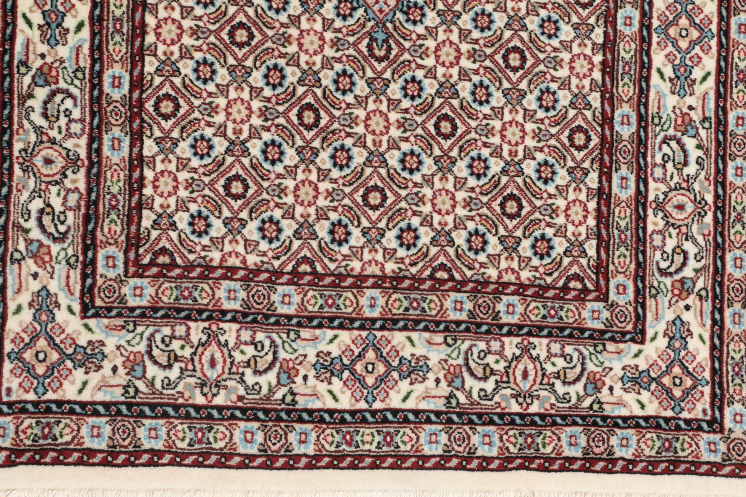Moud is located in Iran, south of Mashhad. As a city of former Persia, its tradition of rug-making goes back many centuries, if not thousands of years. Hand knotted rugs from Moud enjoy an excellent reputation. They are made with the famous Persian knot. Typically, Moud Persian rugs have a pattern that covers the entire surface. The Garden pattern with motifs from Persian gardens or the Herati pattern.