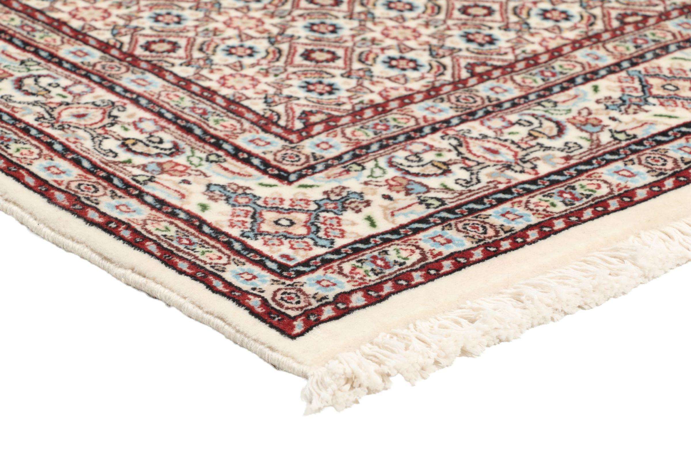This carpet from Moud, a city 300 kilometres south of Mashhad, impresses at first glance. The typical Herati pattern or garden design is appreciated by connoisseurs and lovers of genuine Persian rugs. If you are looking for a handmade rug of fine quality with a very unique and distinctive design, this type of rug is the perfect choice.