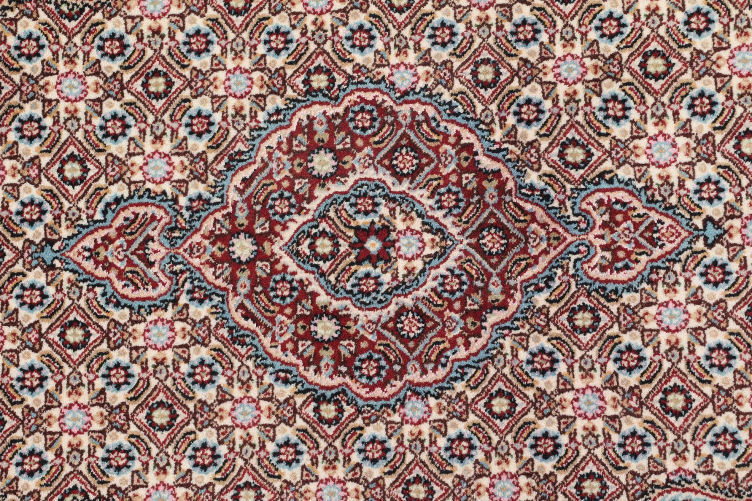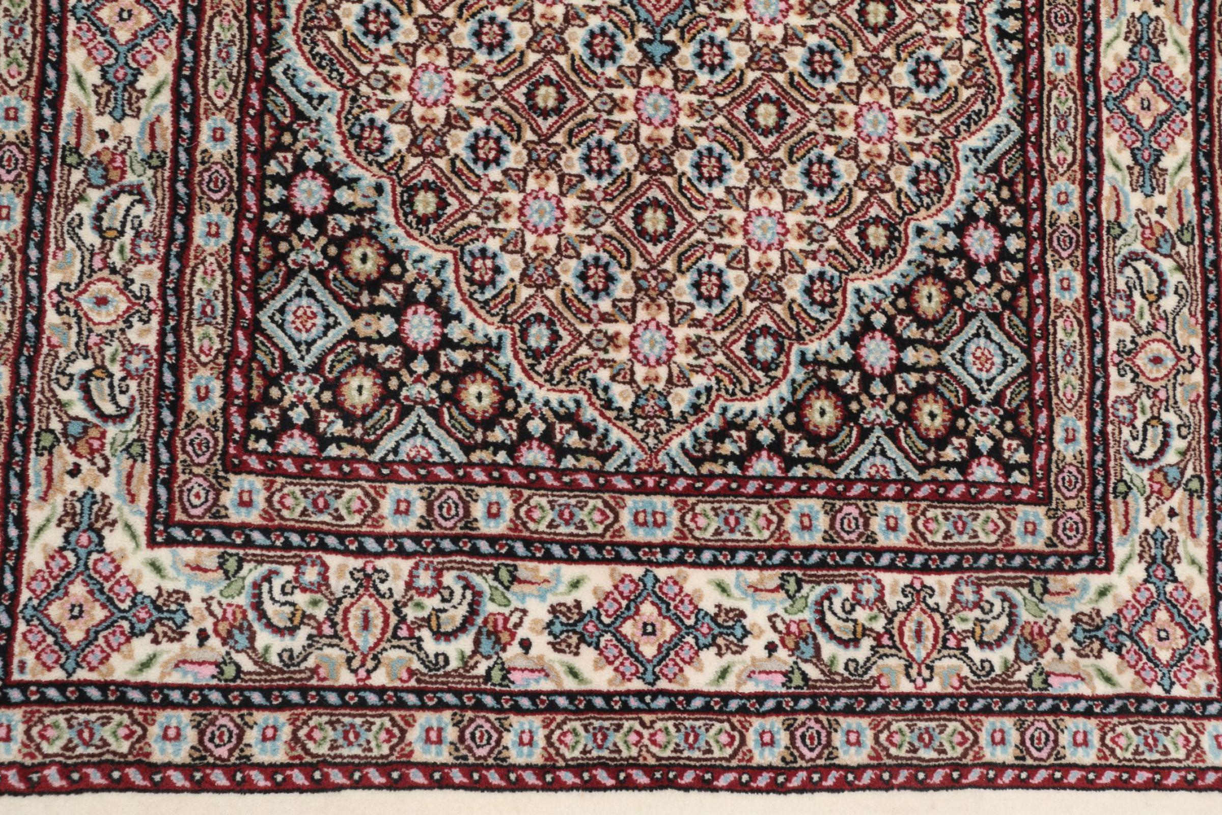 Moud is located in Iran, south of Mashhad. As a city of former Persia, its tradition of rug-making goes back many centuries, if not thousands of years. Hand knotted rugs from Moud enjoy an excellent reputation. They are made with the famous Persian knot. Typically, Moud Persian rugs have a pattern that covers the entire surface. The Garden pattern with motifs from Persian gardens or the Herati pattern.