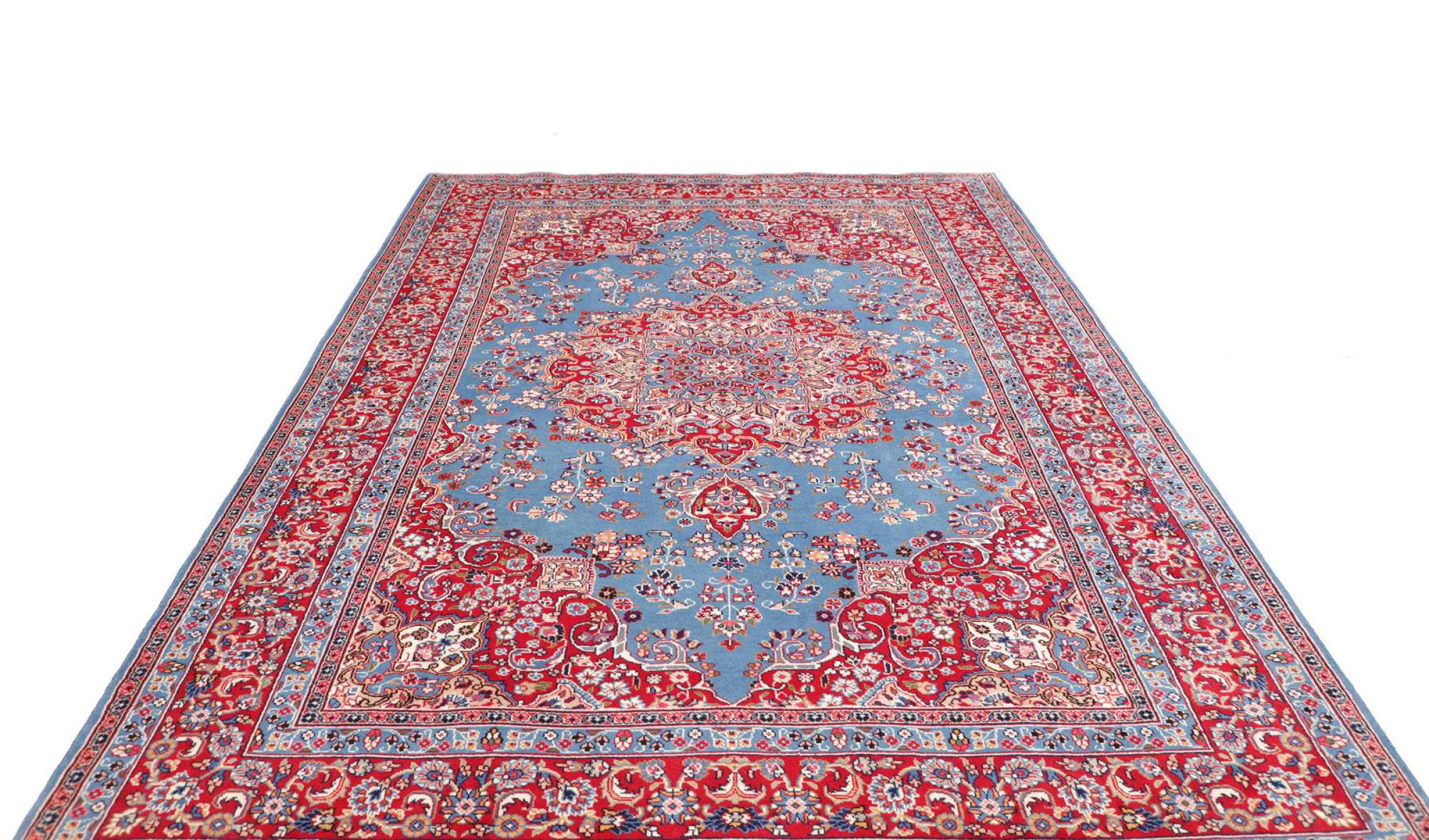 This rug is made of hand spun sheep wool of the highest quality. Especially in Iran (former Persia), Afghanistan and Pakistan wool is still spun by hand before the actual knotting of the rug begins. Wool has proven itself as a natural and extremely hard-wearing material over centuries. Among other things, it has dirt-repellent and heat-insulating properties. At the same time, wool is incomparably soft and has a natural shine.