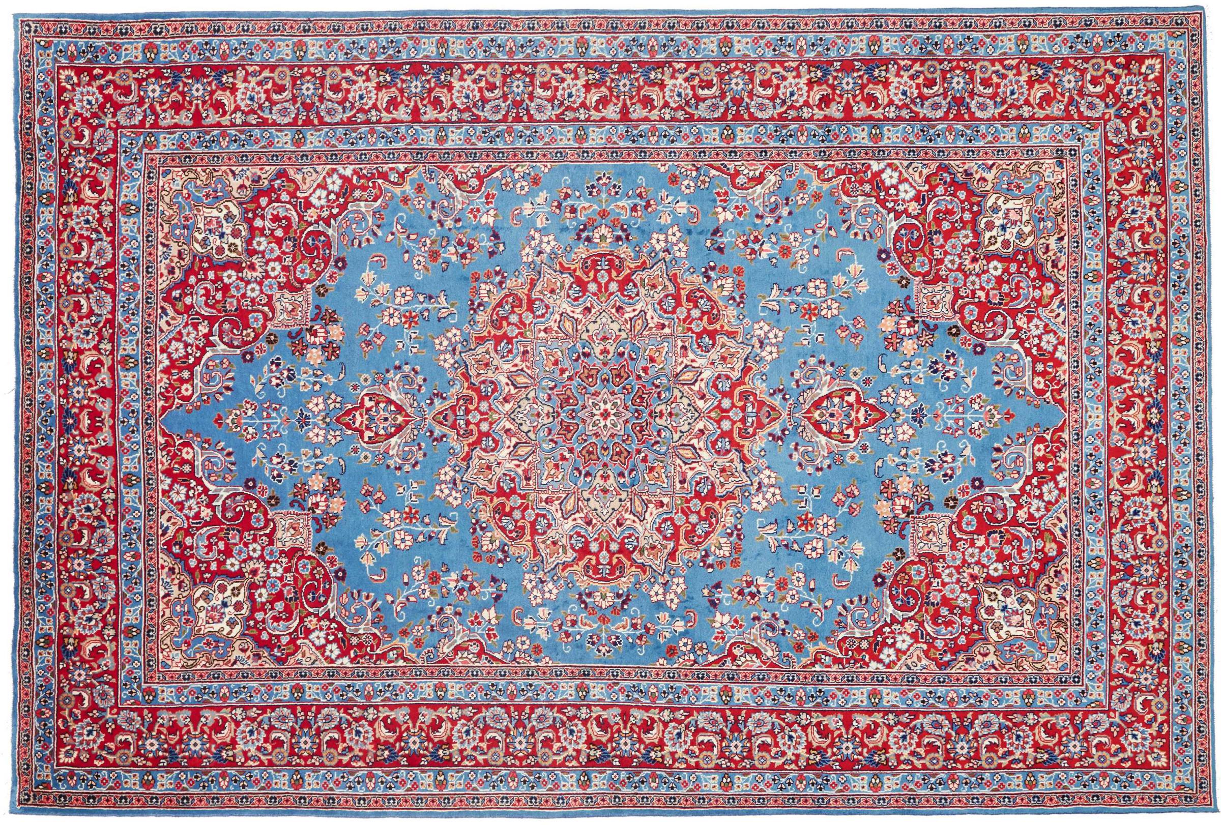 This carpet from Moud, a city 300 kilometres south of Mashhad, impresses at first glance. The typical Herati pattern or garden design is appreciated by connoisseurs and lovers of genuine Persian rugs. If you are looking for a handmade rug of fine quality with a very unique and distinctive design, this type of rug is the perfect choice.