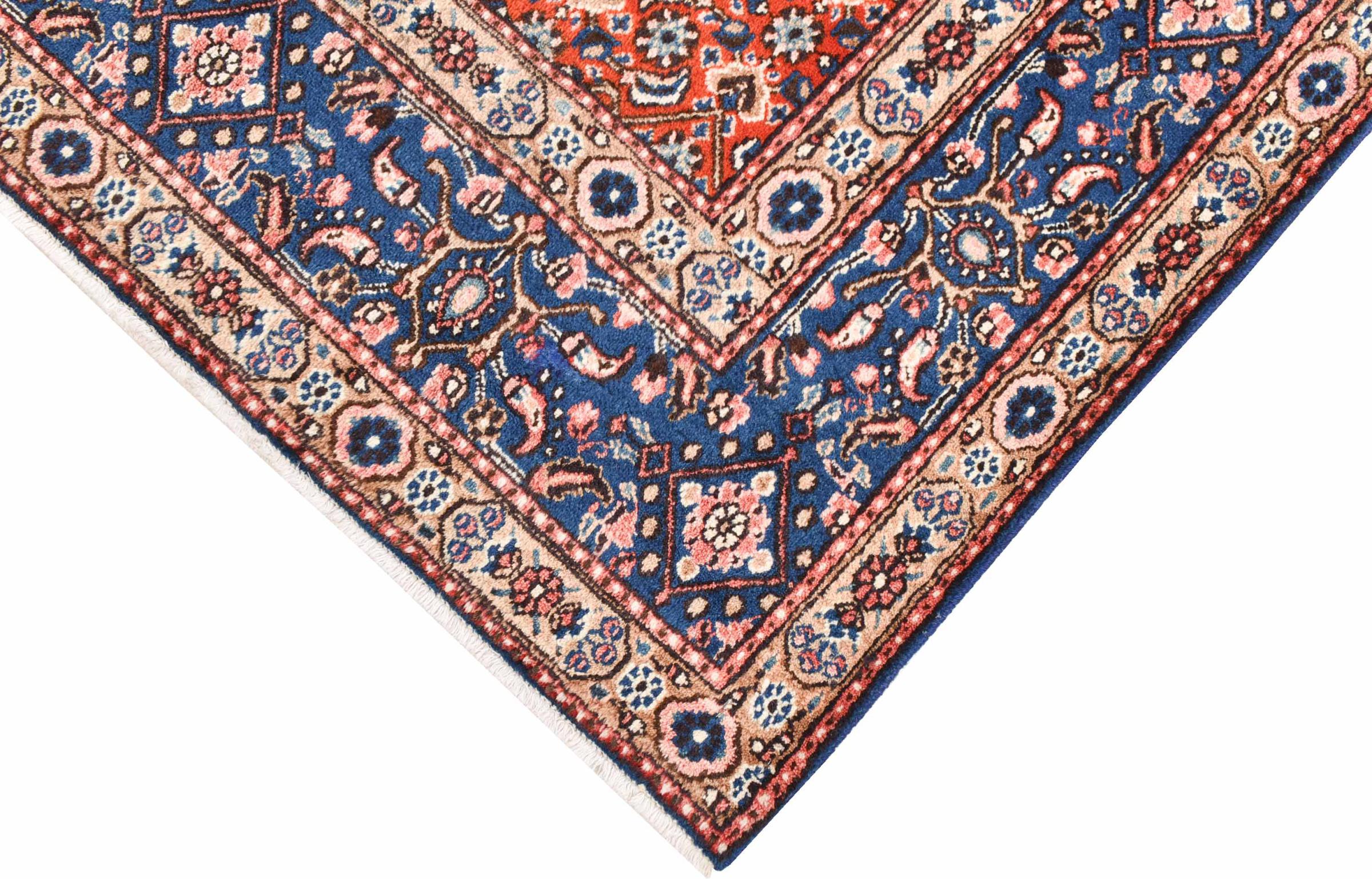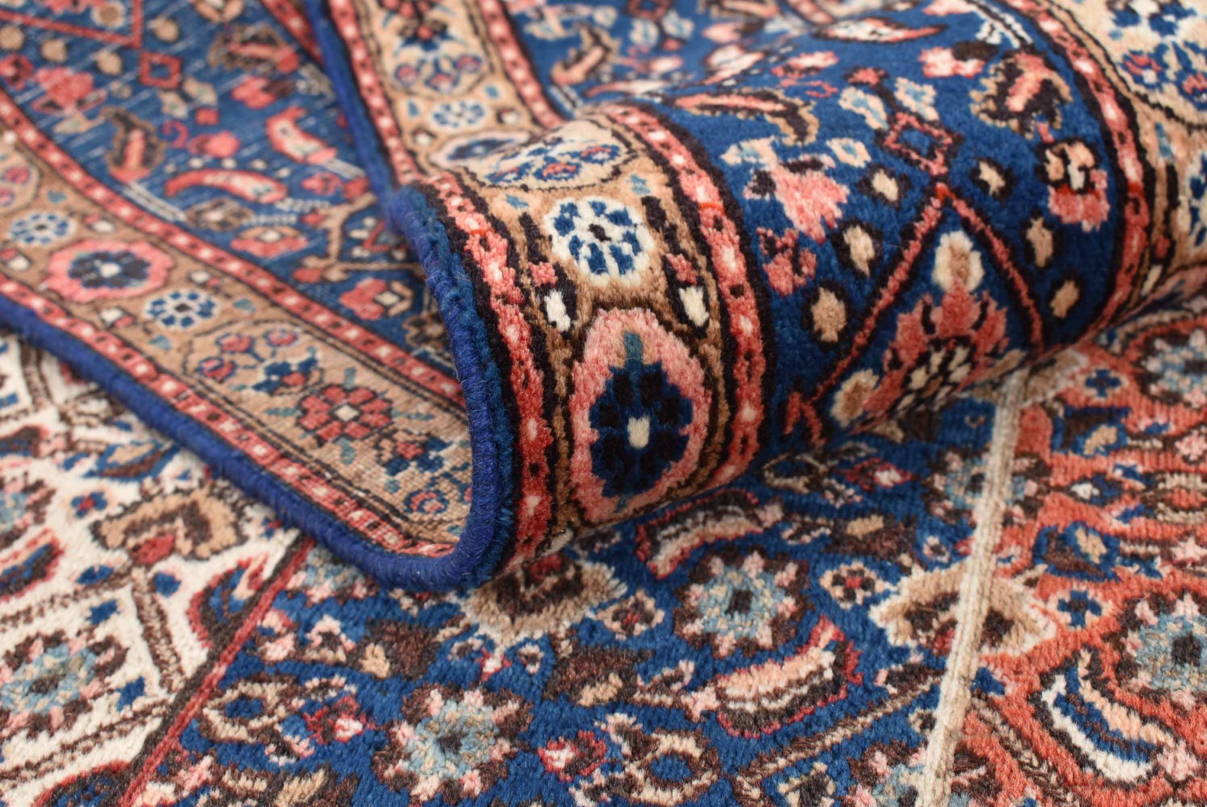 This carpet from Moud, a city 300 kilometres south of Mashhad, impresses at first glance. The typical Herati pattern or garden design is appreciated by connoisseurs and lovers of genuine Persian rugs. If you are looking for a handmade rug of fine quality with a very unique and distinctive design, this type of rug is the perfect choice.