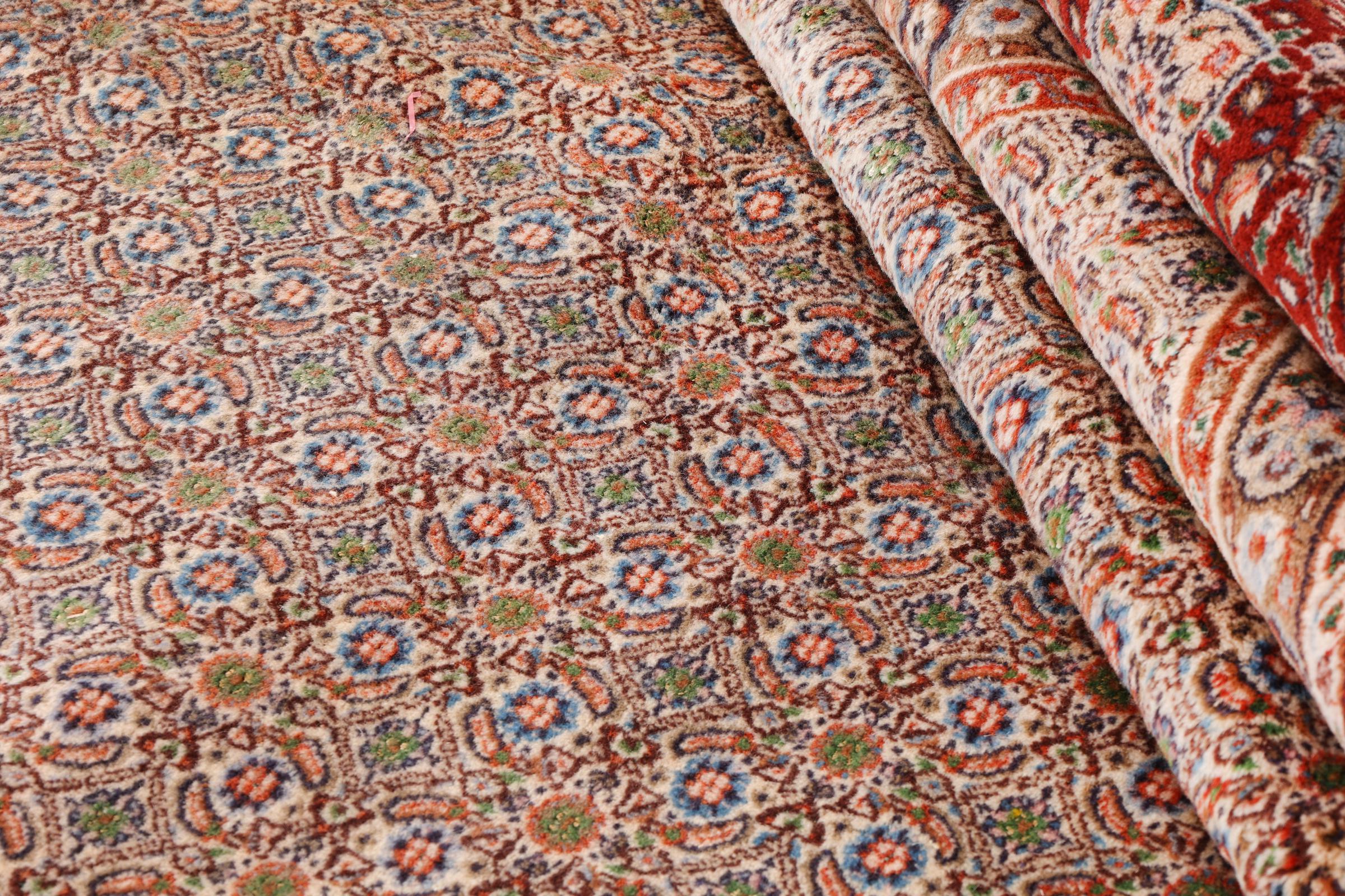 Moud is located in Iran, south of Mashhad. As a city of former Persia, its tradition of rug-making goes back many centuries, if not thousands of years. Hand knotted rugs from Moud enjoy an excellent reputation. They are made with the famous Persian knot. Typically, Moud Persian rugs have a pattern that covers the entire surface. The Garden pattern with motifs from Persian gardens or the Herati pattern.