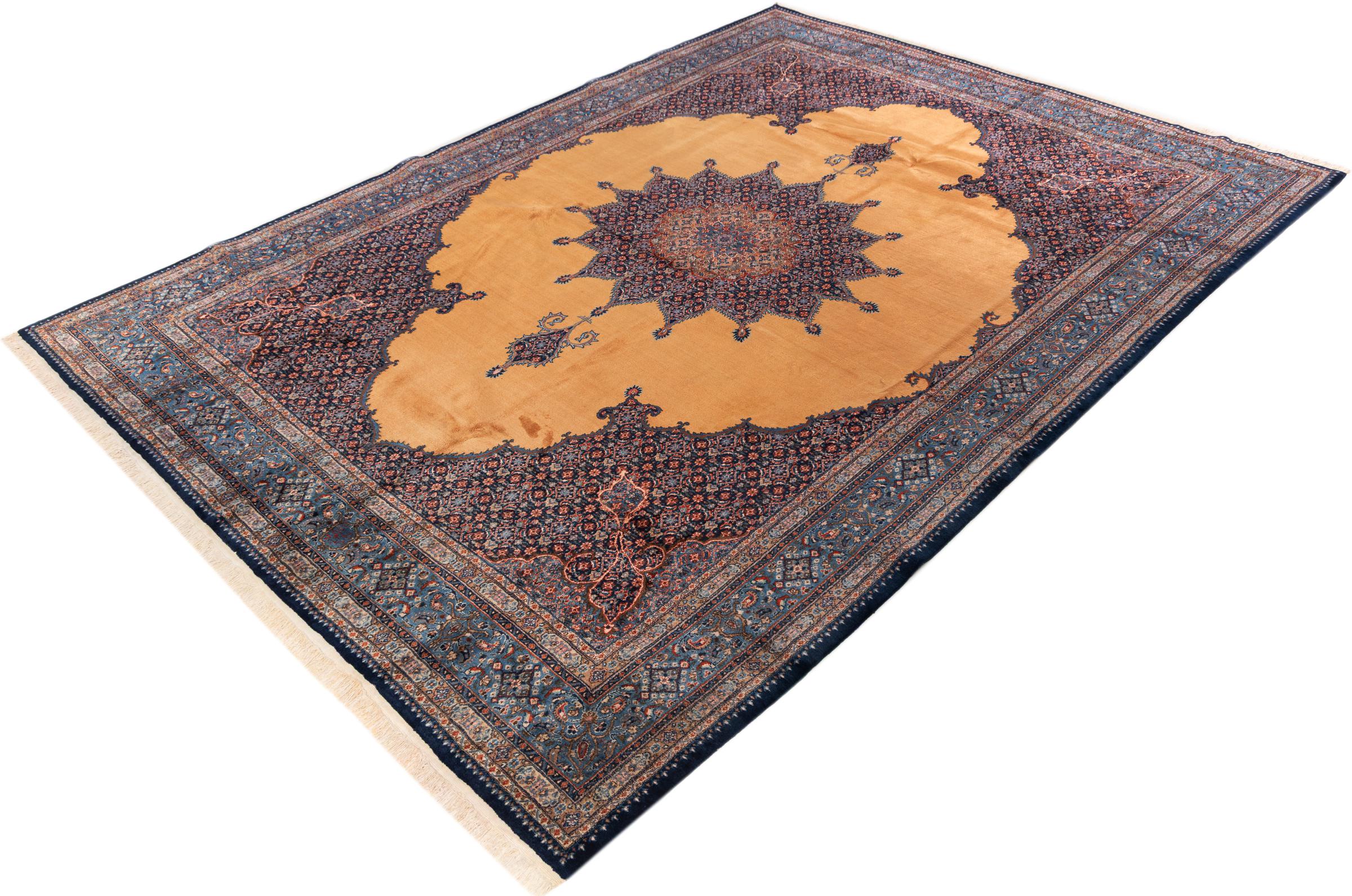 Moud is located in Iran, south of Mashhad. As a city of former Persia, its tradition of rug-making goes back many centuries, if not thousands of years. Hand knotted rugs from Moud enjoy an excellent reputation. They are made with the famous Persian knot. Typically, Moud Persian rugs have a pattern that covers the entire surface. The Garden pattern with motifs from Persian gardens or the Herati pattern.