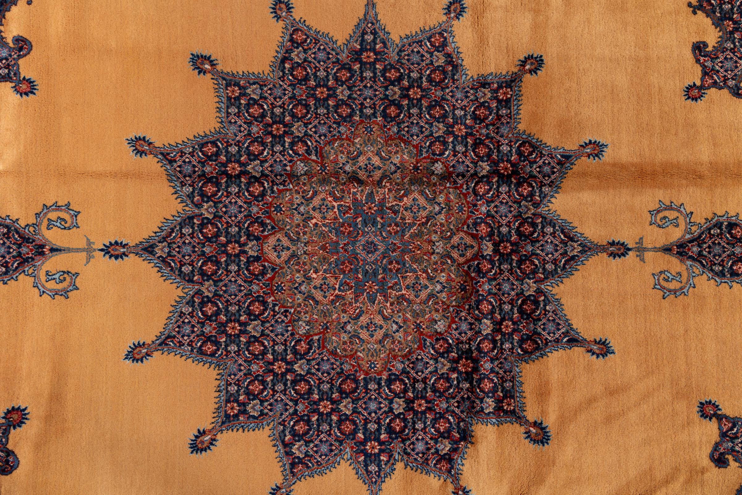 This carpet from Moud, a city 300 kilometres south of Mashhad, impresses at first glance. The typical Herati pattern or garden design is appreciated by connoisseurs and lovers of genuine Persian rugs. If you are looking for a handmade rug of fine quality with a very unique and distinctive design, this type of rug is the perfect choice.