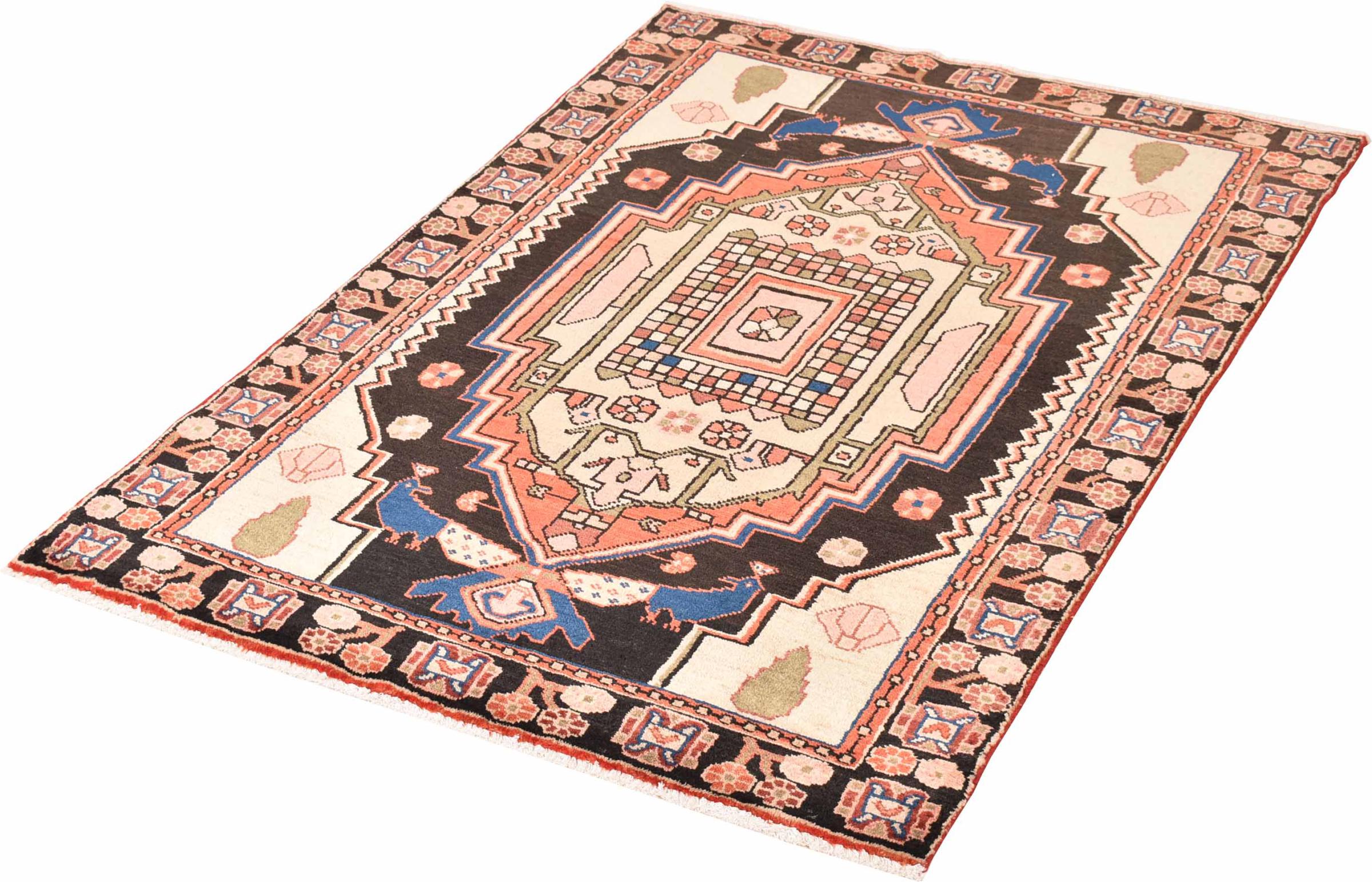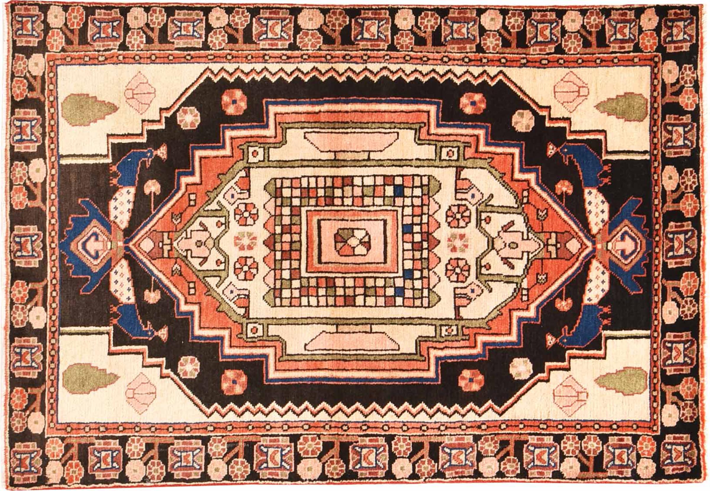 This rug belongs to village and nomadic rugs from Iran, formerly Persia. This type of rug is knotted by hand in smaller towns and villages in old tradition. Even nomads still knot Persian rugs in the open air. The rugs are knotted without a draft and completely from the mind. They are characterized by classical ornaments, which are arranged in straight and geometrical patterns. Thanks to their cultural-traditional origin, these rugs have a unique character that embodies ancient Persia.