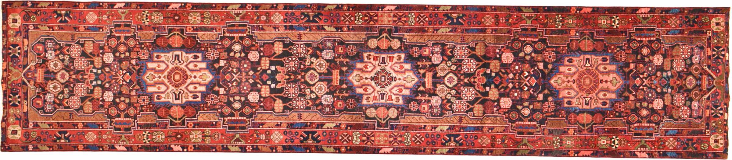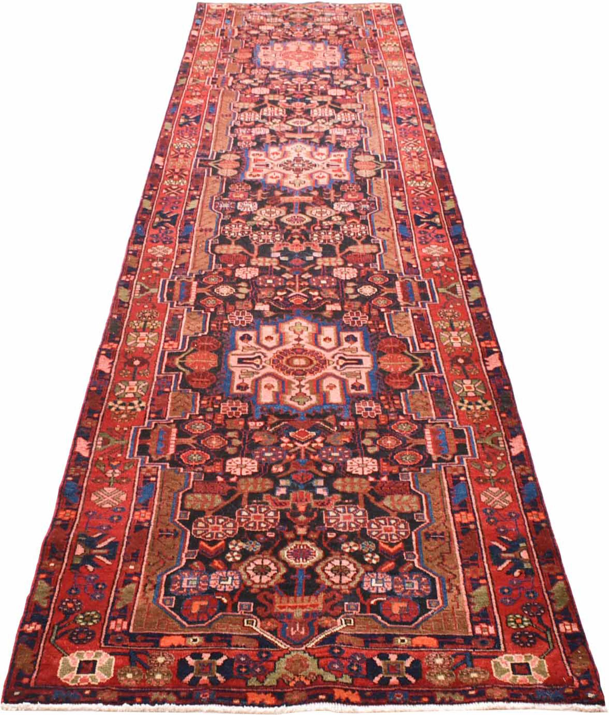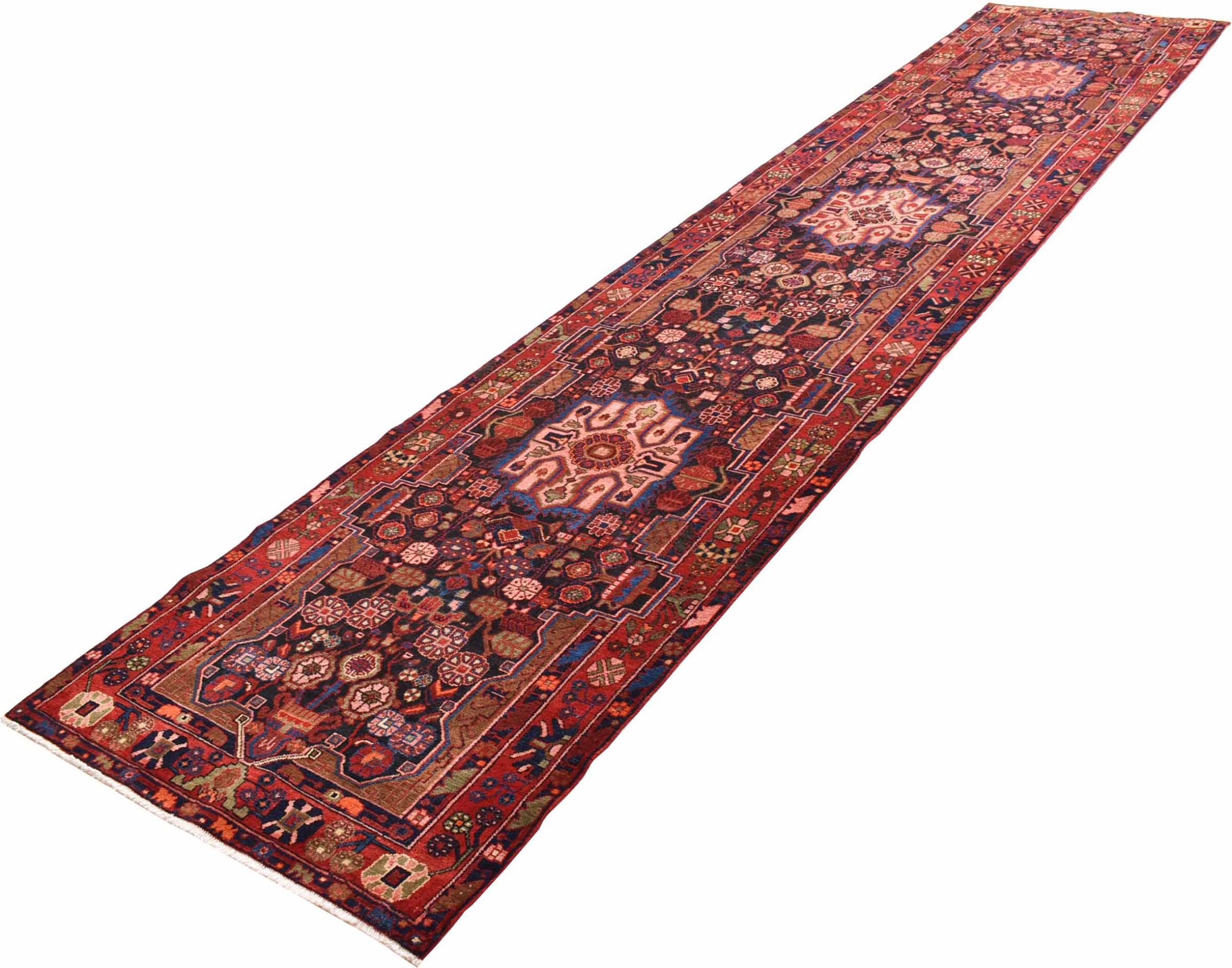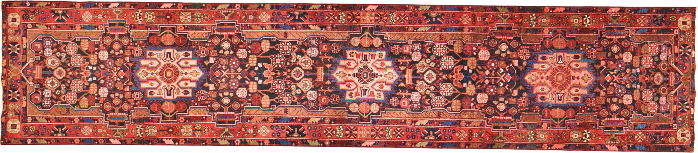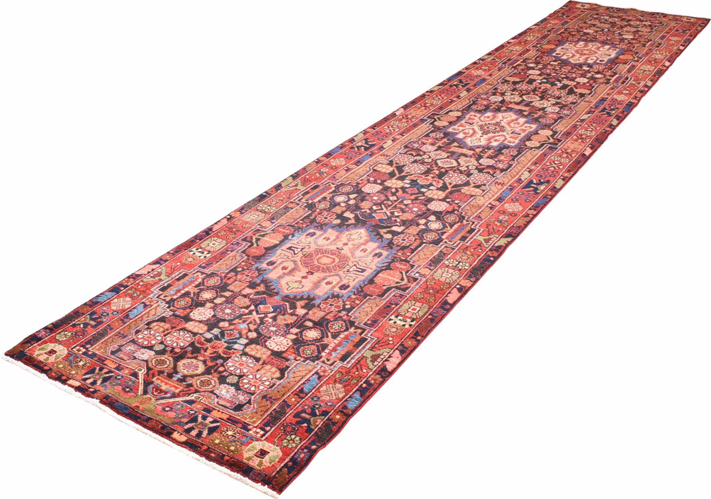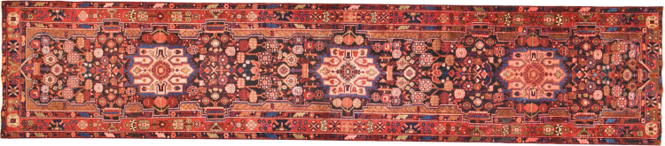 Carpet ID: 301019004718253 Size: 512x107 cm Thickness: ap. 12 mm Knot density: 128 000 - 160 000 / m² Manufacturing: Knotted by hand Pile: Handspun wool Warp: Cotton Origin: Persia Age: New Weight: ap. 19 kg In stock: Unique - Only 1 in stock