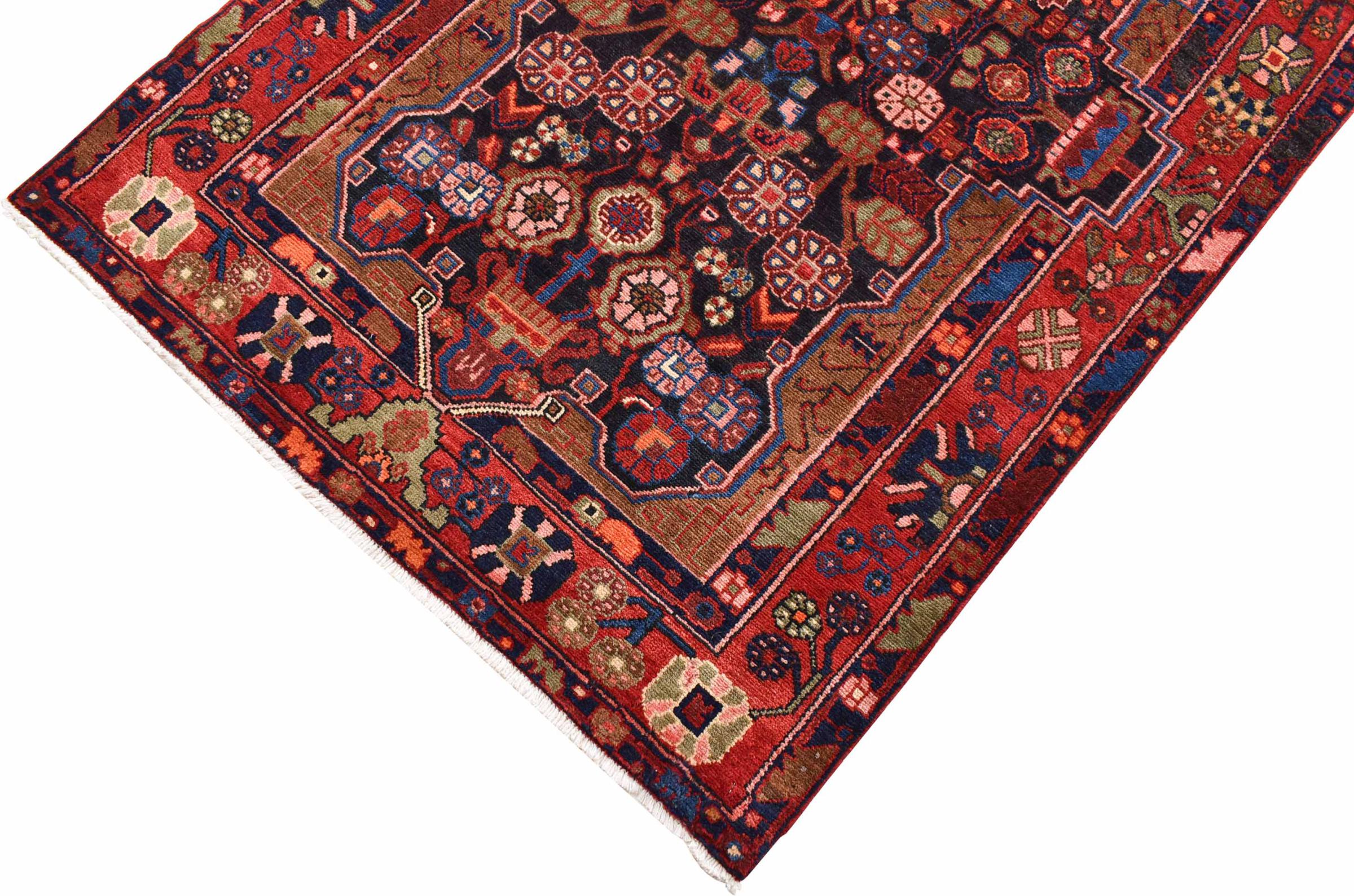 This Persian Nahavand Carpet was hand knotted in western Iran. It is robust and perfectly suitable for highly frequented areas. The relatively low knot density does not say much about the quality of this Persian Carpet. Decisive are the high quality wool and the beautiful shining colours.