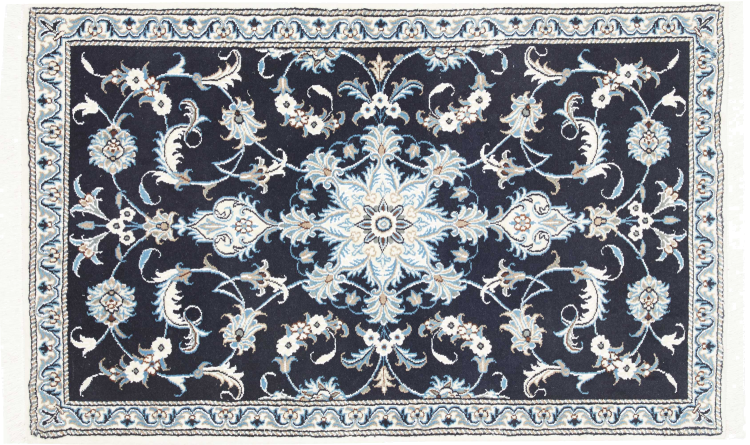Rugs from the city of Nain, from the border of one of the largest deserts in Iran, are among the most famous Persian rugs in the world. Their typical design is characterized by floral ornaments, a medallion in the middle as well as beige and red or blue shades. Thanks to their designations 4La, 6La, 9La and 12La, the finenesses of a Nain rug can be seen at a glance. The lower the "La" number, the higher the knot density and thus the finer the rug.