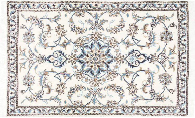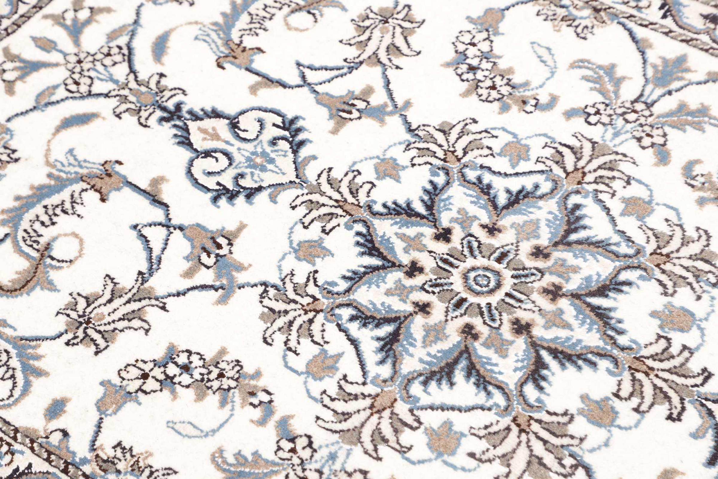 Rugs from the city of Nain, from the border of one of the largest deserts in Iran, are among the most famous Persian rugs in the world. Their typical design is characterized by floral ornaments, a medallion in the middle as well as beige and red or blue shades. Thanks to their designations 4La, 6La, 9La and 12La, the finenesses of a Nain rug can be seen at a glance. The lower the "La" number, the higher the knot density and thus the finer the rug.