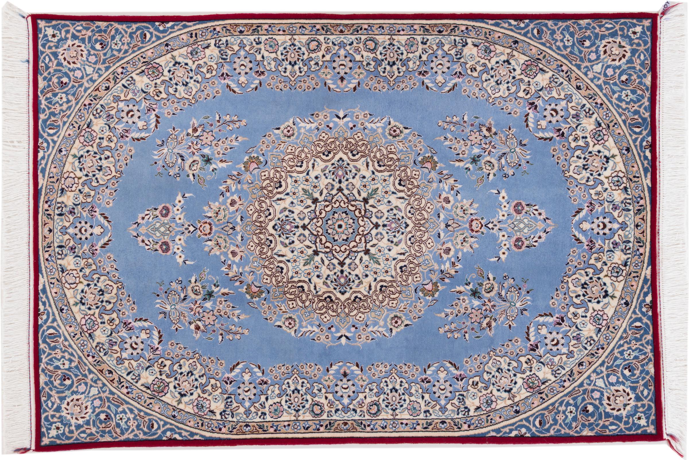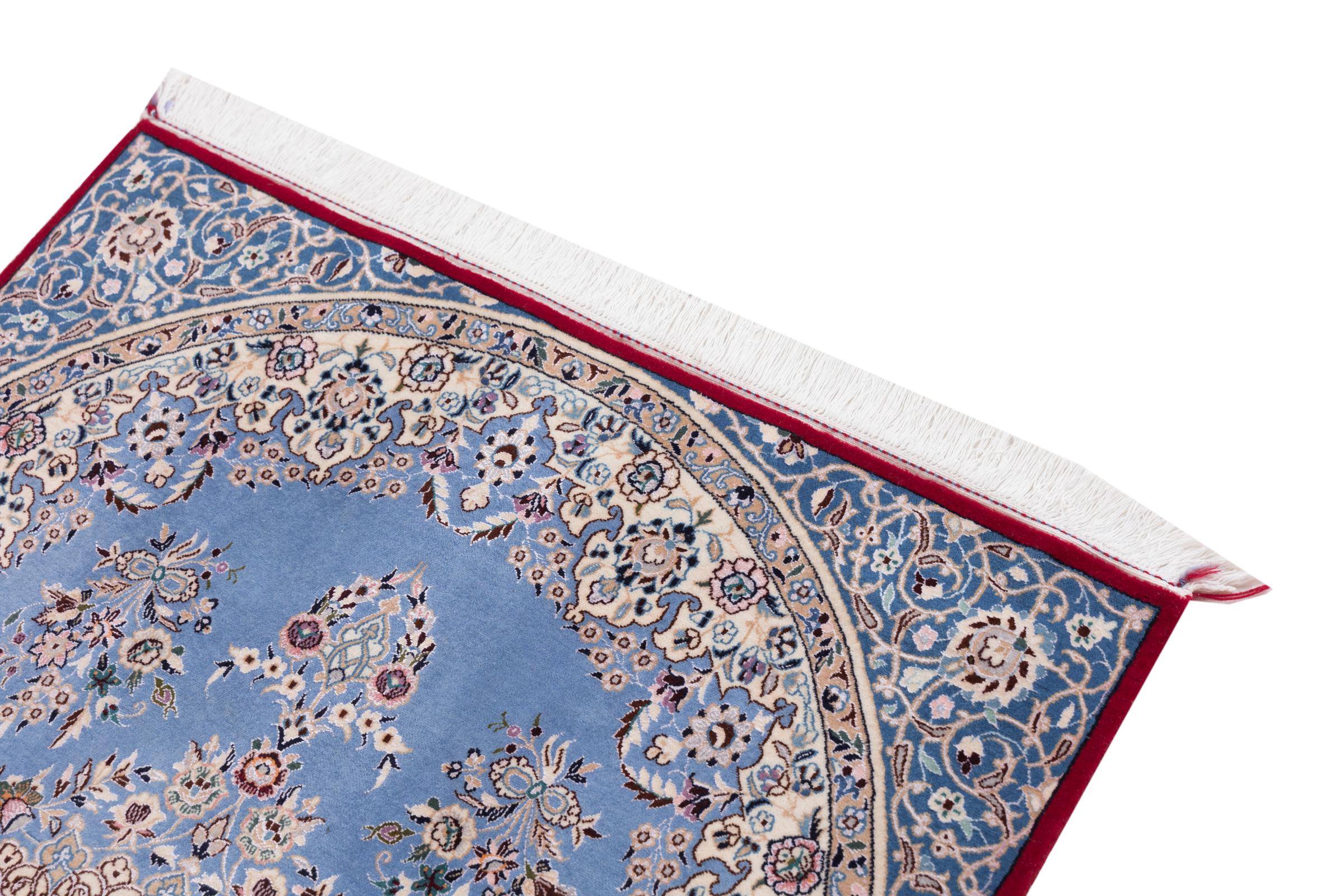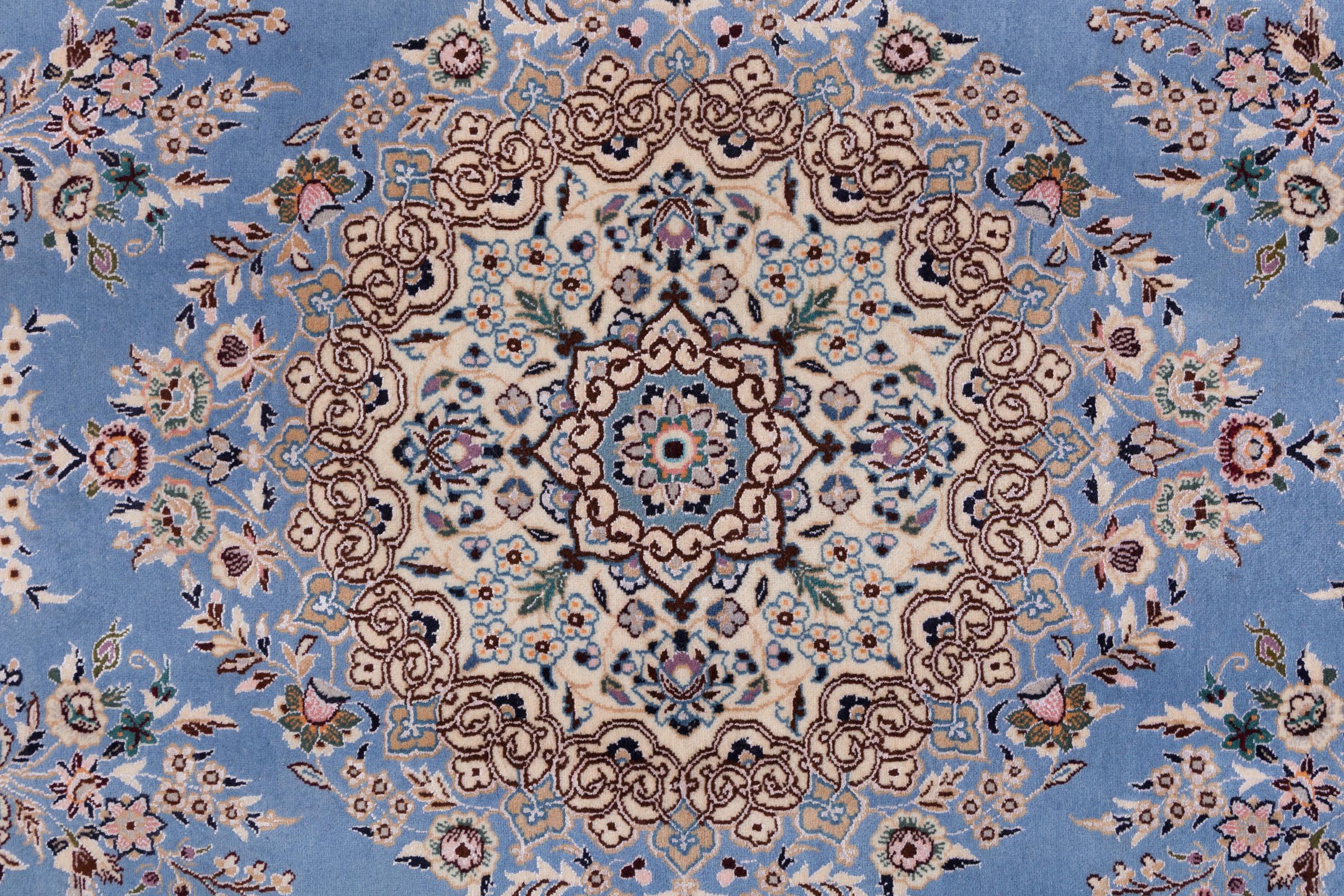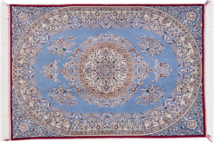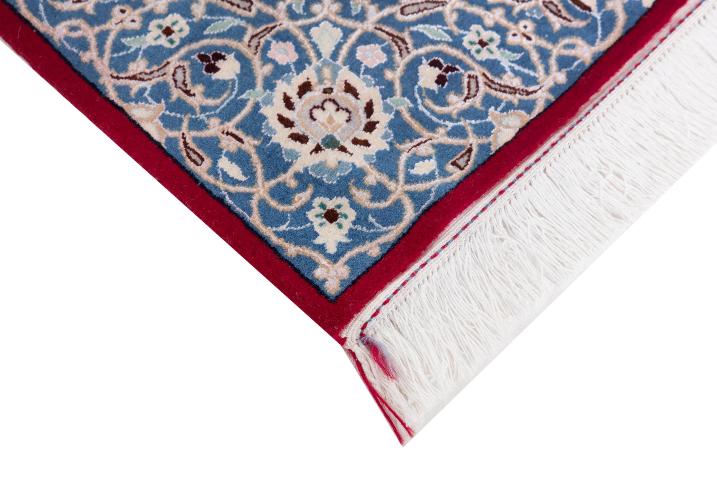 Rugs from the city of Nain, from the border of one of the largest deserts in Iran, are among the most famous Persian rugs in the world. Their typical design is characterized by floral ornaments, a medallion in the middle as well as beige and red or blue shades. Thanks to their designations 4La, 6La, 9La and 12La, the finenesses of a Nain rug can be seen at a glance. The lower the "La" number, the higher the knot density and thus the finer the rug.