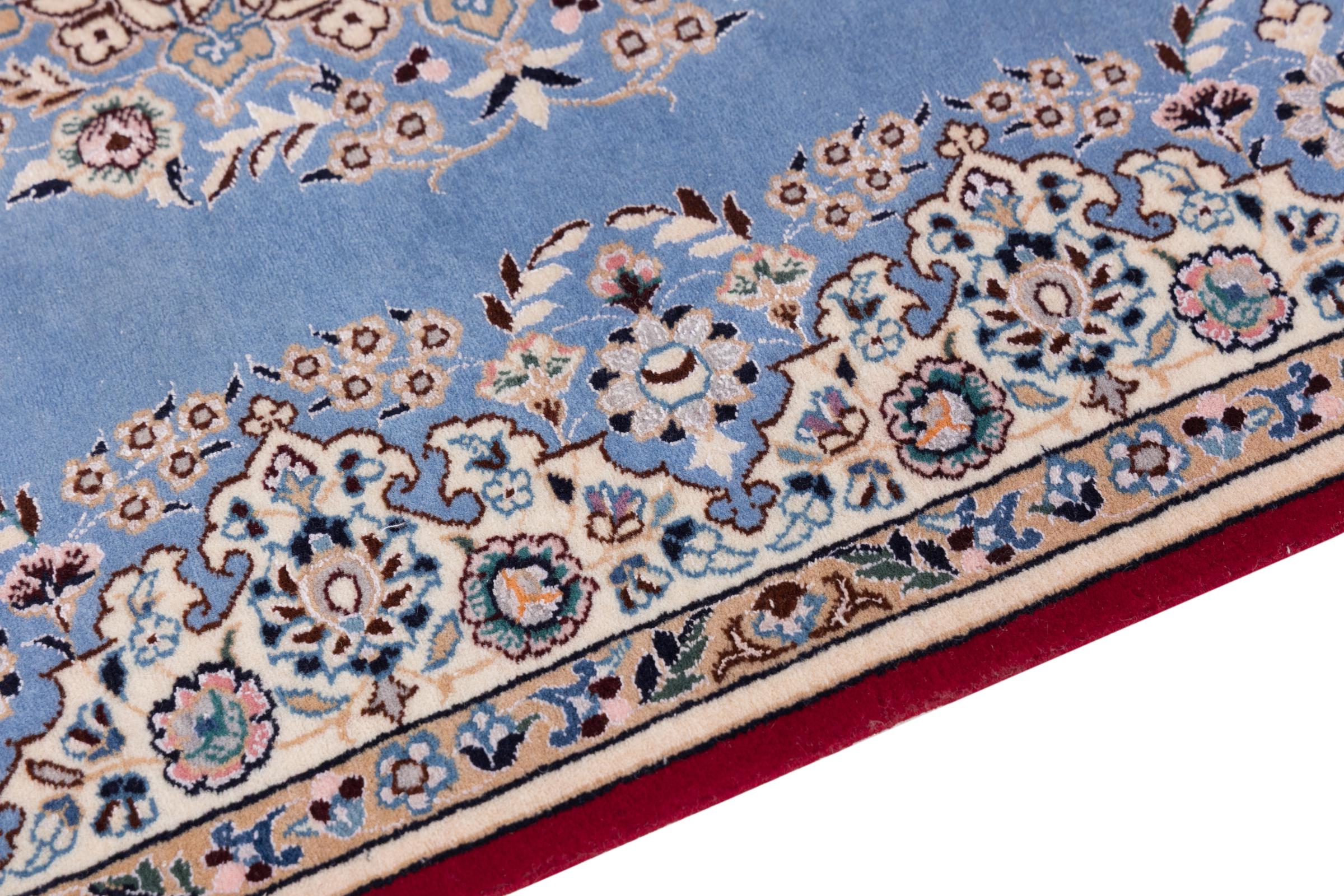 This Nain rug combines quality, tradition and an unmistakable design. It was hand-knotted from high-quality cork wool and natural silk in the desert town of the same name, Nain. Lovers of valuable rugs from Iran will love this Persian rug. With Nain rugs in the 6La and 4La classifications, you have a real work of art with an incredible level of detail that you can really lose yourself in. Nain 4La rugs are almost impossible to find today, as they are extremely elaborate to produce.