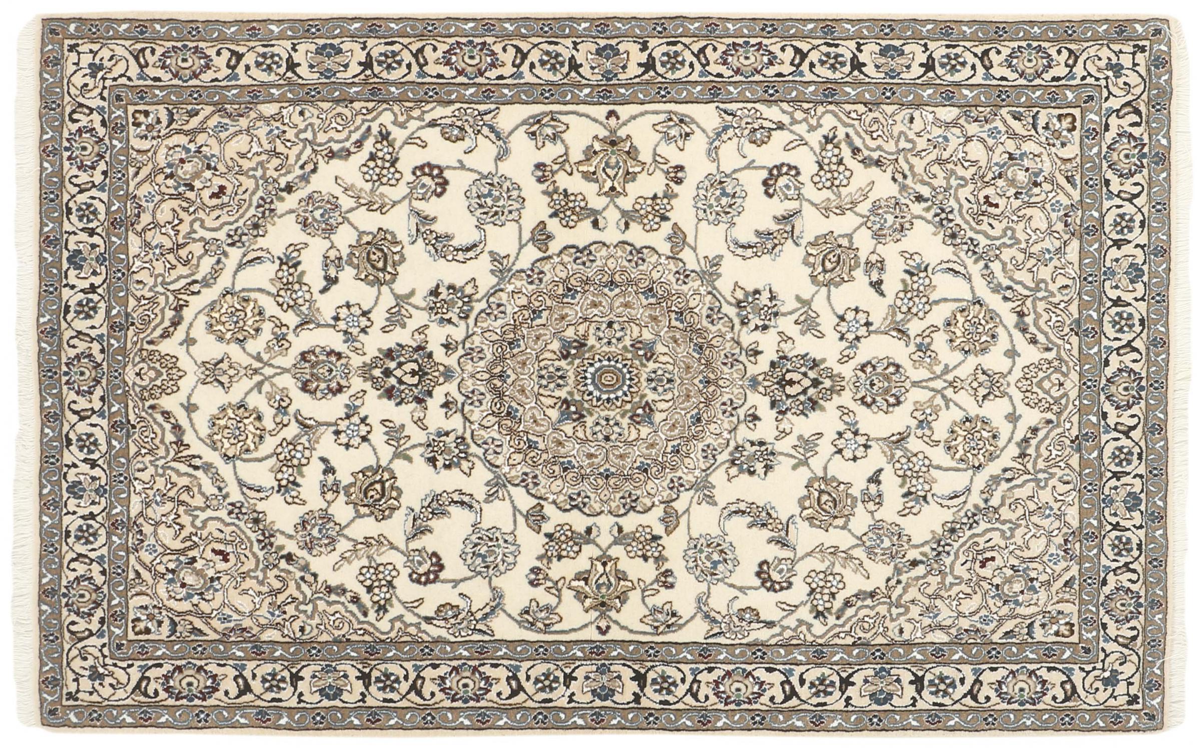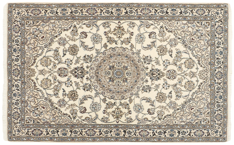 Rugs from the city of Nain, from the border of one of the largest deserts in Iran, are among the most famous Persian rugs in the world. Their typical design is characterized by floral ornaments, a medallion in the middle as well as beige and red or blue shades. Thanks to their designations 4La, 6La, 9La and 12La, the finenesses of a Nain rug can be seen at a glance. The lower the "La" number, the higher the knot density and thus the finer the rug.