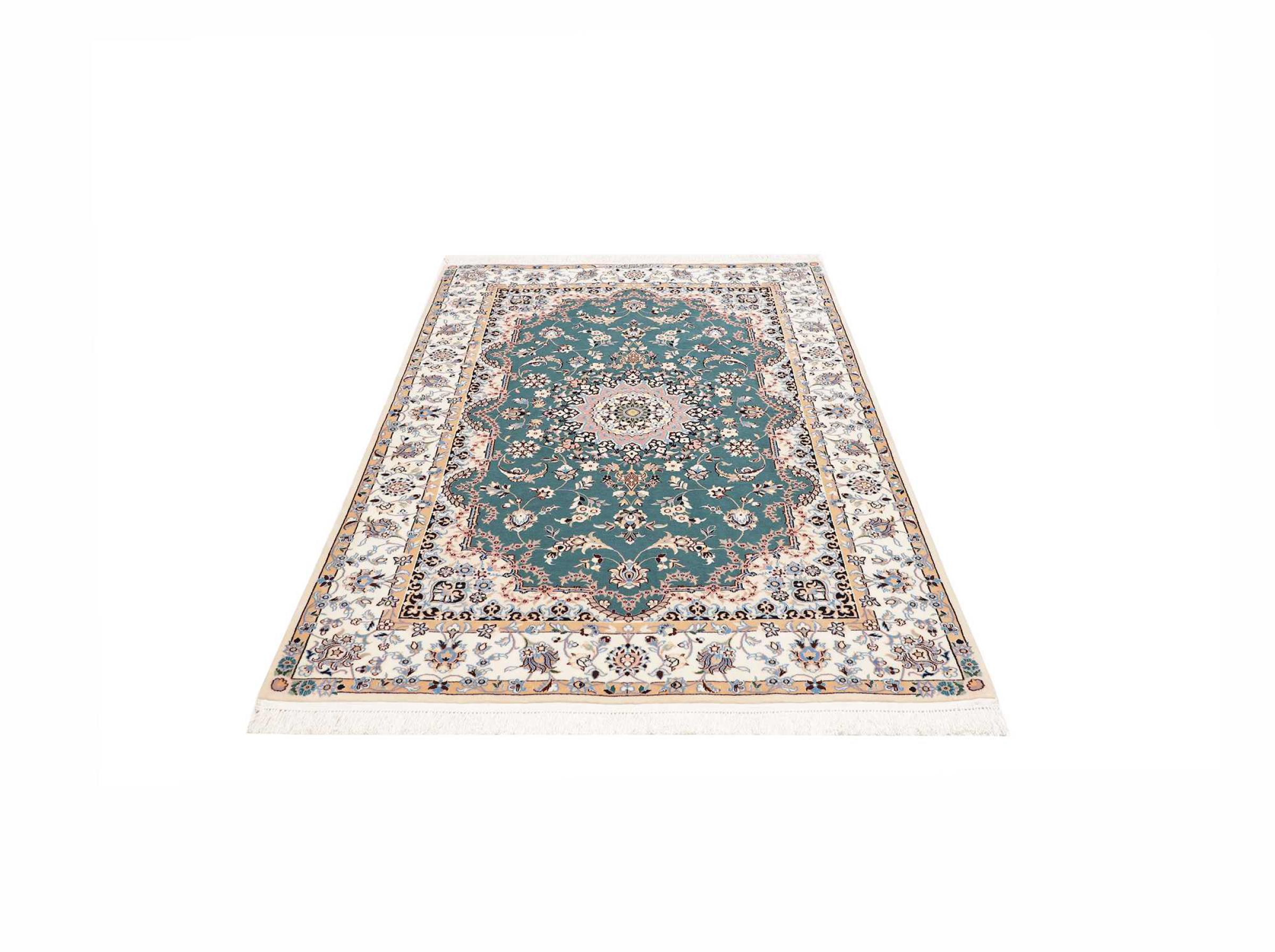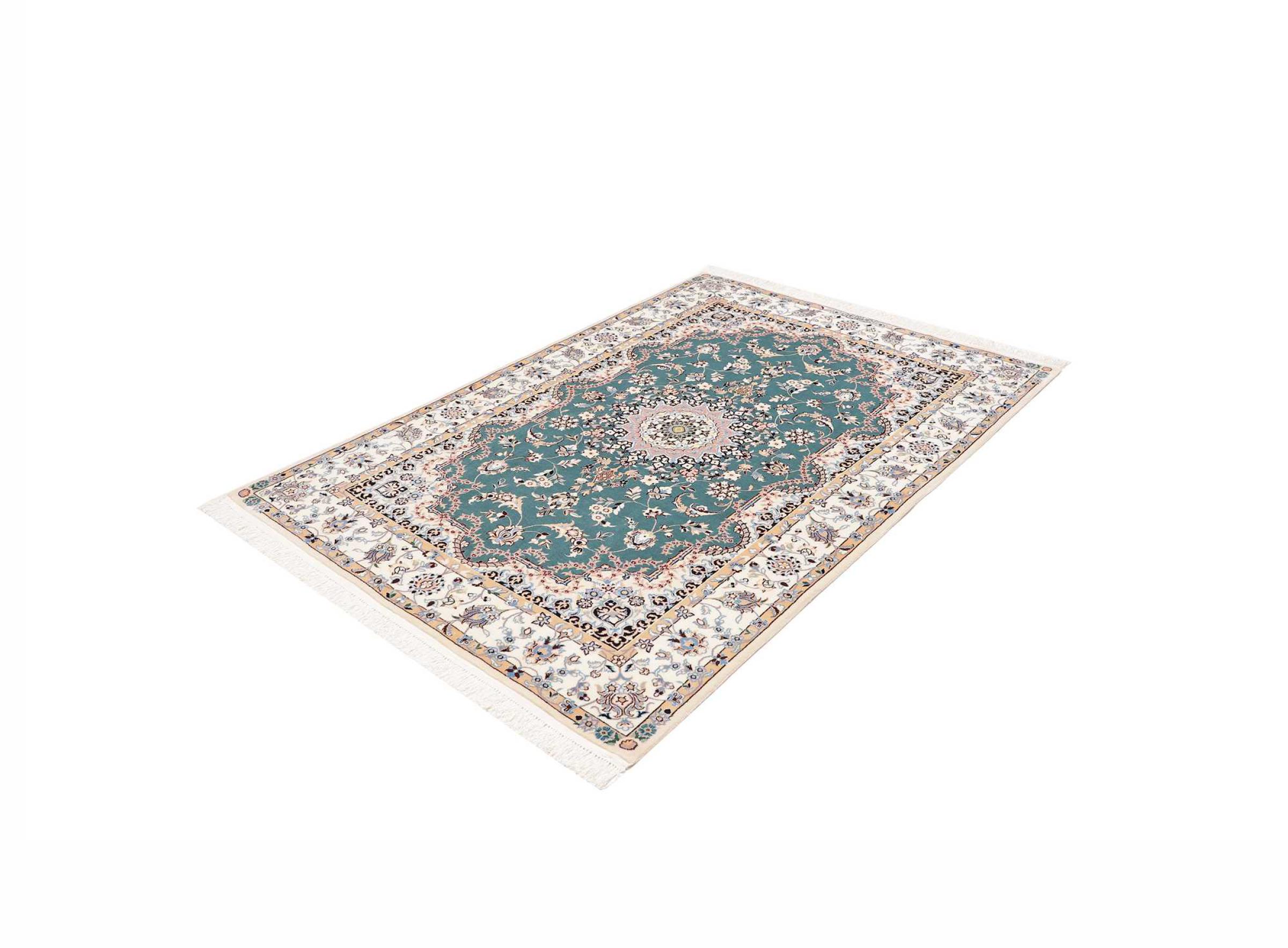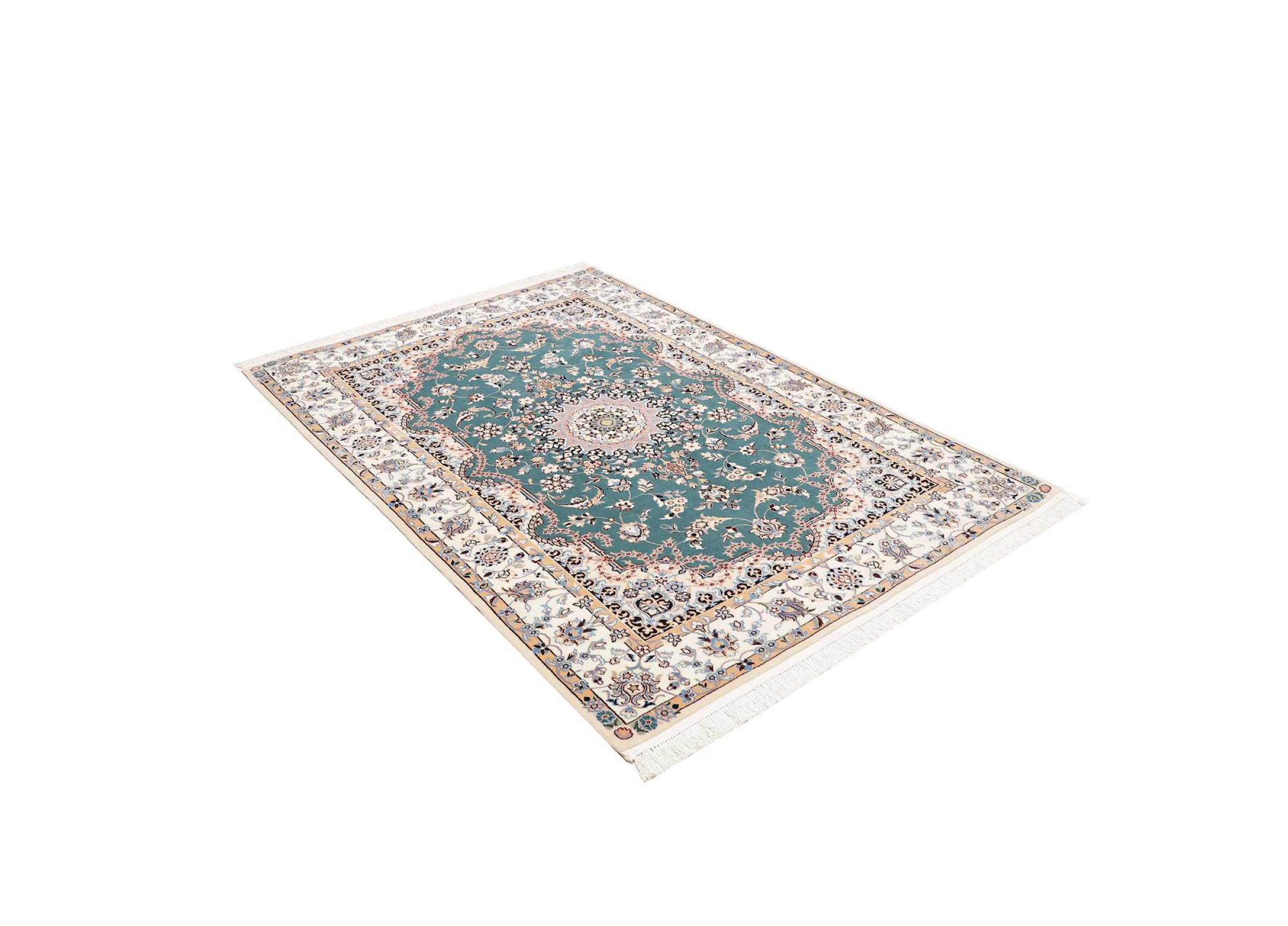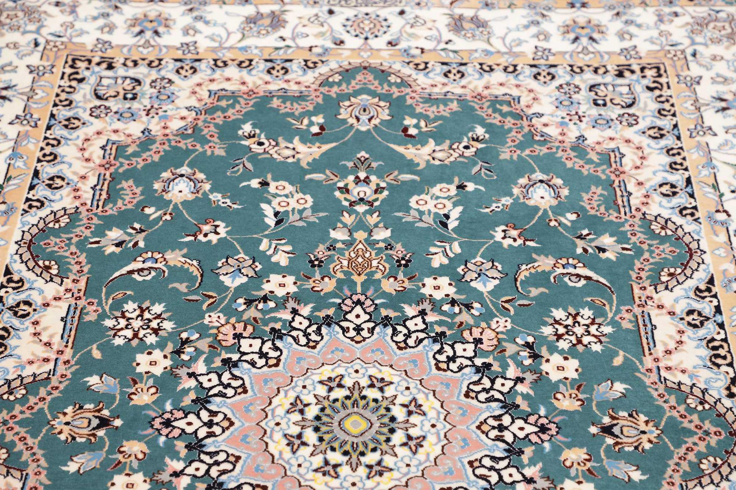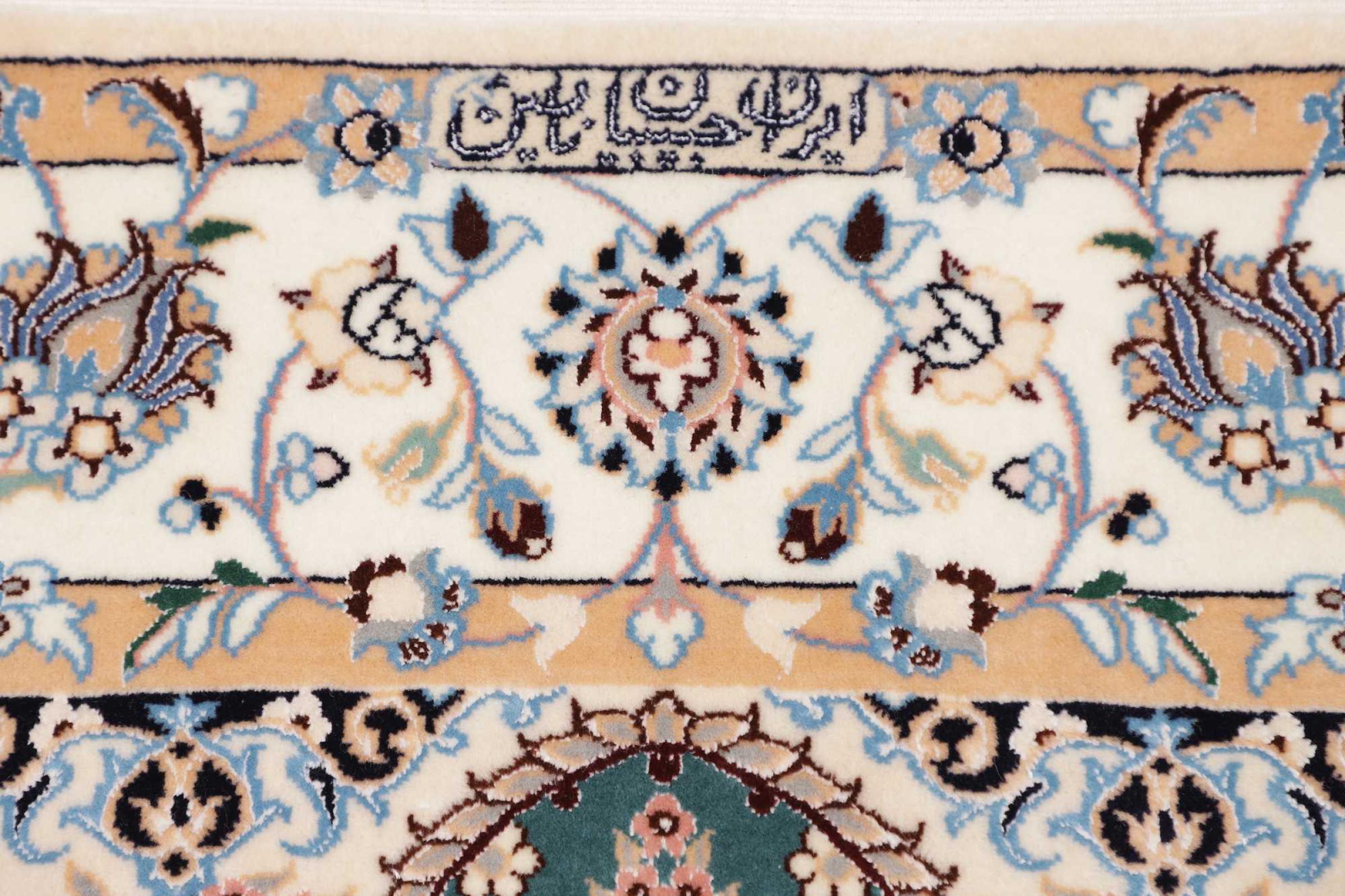 This Nain rug combines quality, tradition and an unmistakable design. It was hand-knotted from high-quality cork wool and natural silk in the desert town of the same name, Nain. Lovers of valuable rugs from Iran will love this Persian rug. With Nain rugs in the 6La and 4La classifications, you have a real work of art with an incredible level of detail that you can really lose yourself in. Nain 4La rugs are almost impossible to find today, as they are extremely elaborate to produce.