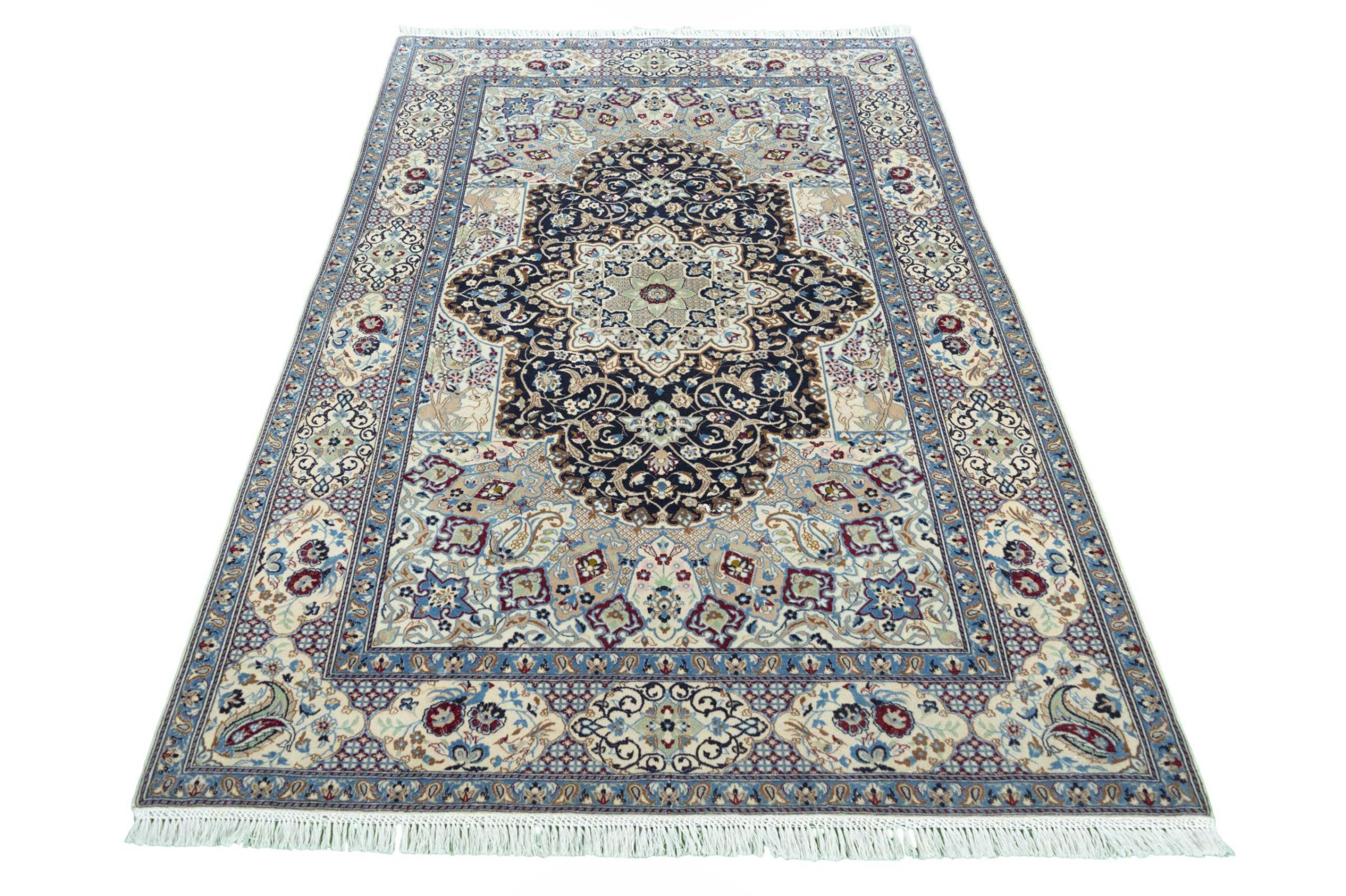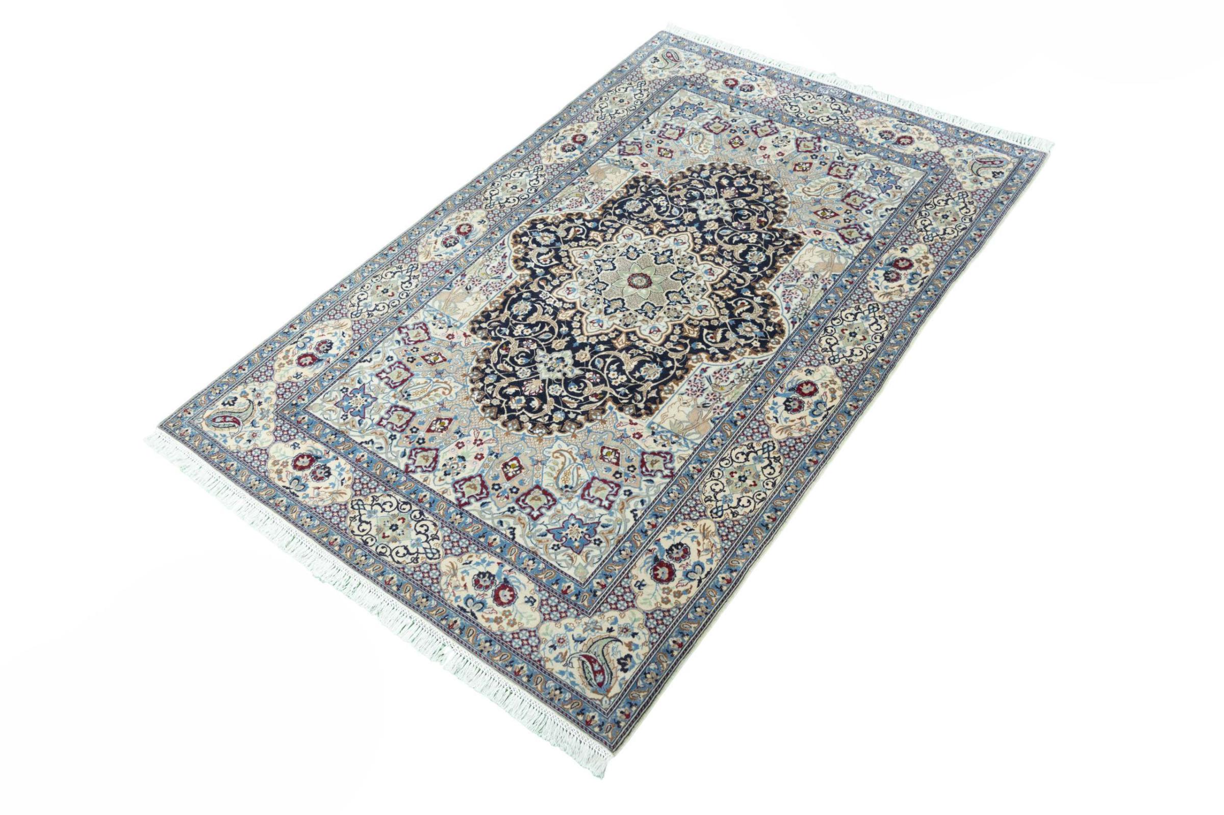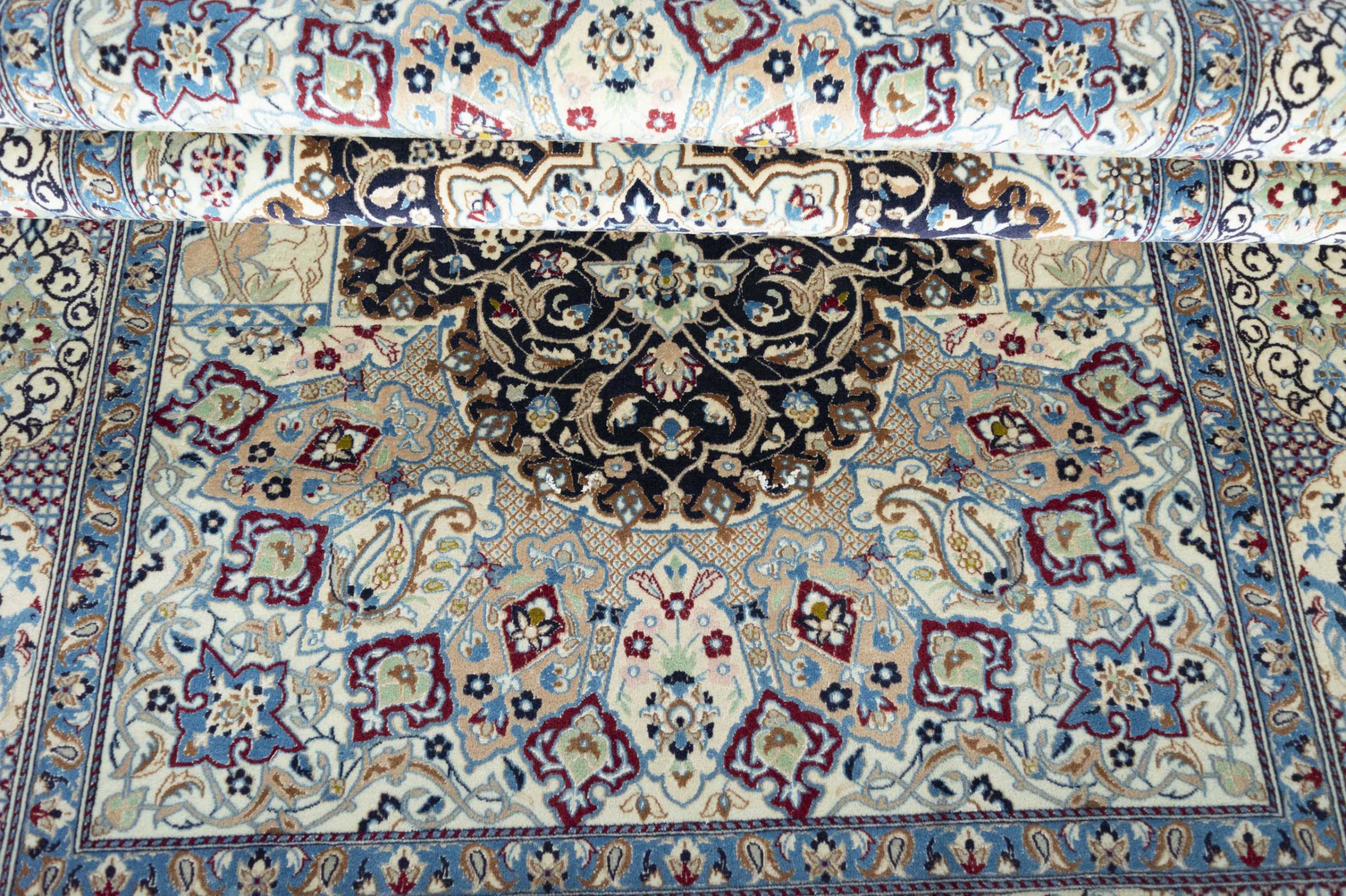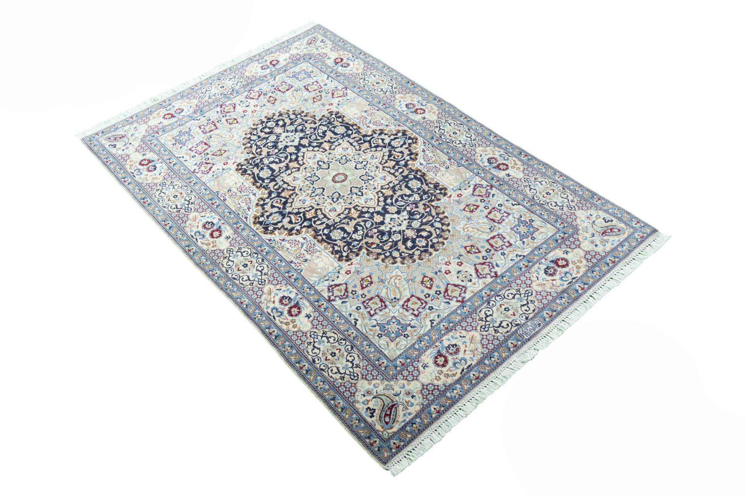 This Nain rug combines quality, tradition and an unmistakable design. It was hand-knotted from high-quality cork wool and natural silk in the desert town of the same name, Nain. Lovers of valuable rugs from Iran will love this Persian rug. With Nain rugs in the 6La and 4La classifications, you have a real work of art with an incredible level of detail that you can really lose yourself in. Nain 4La rugs are almost impossible to find today, as they are extremely elaborate to produce.