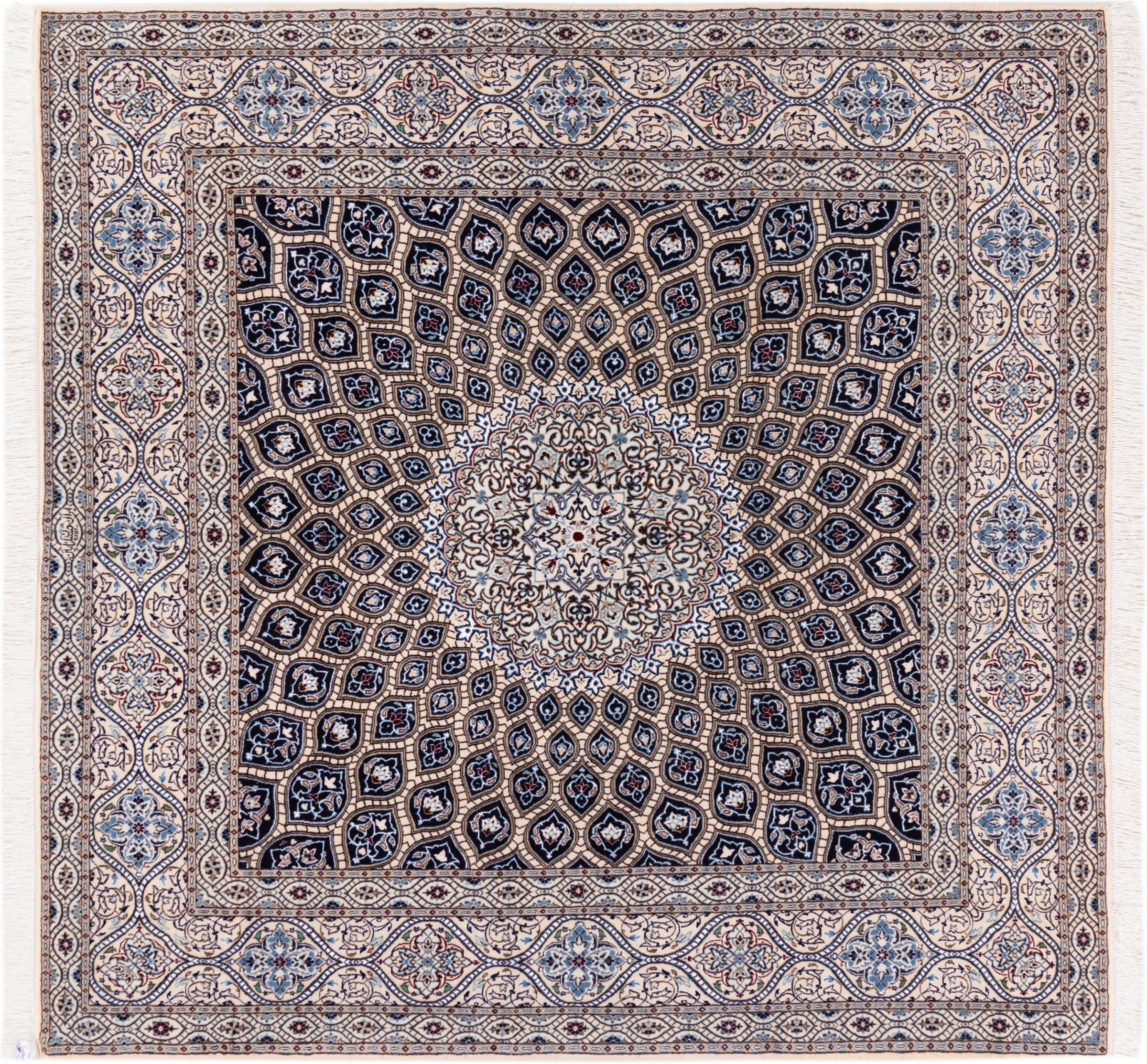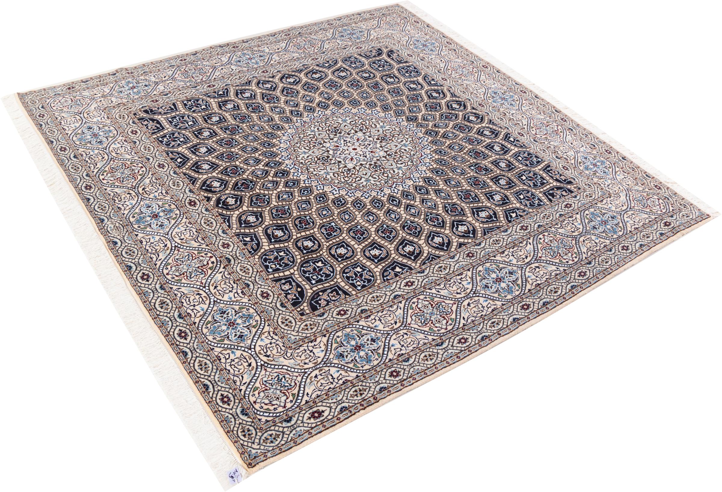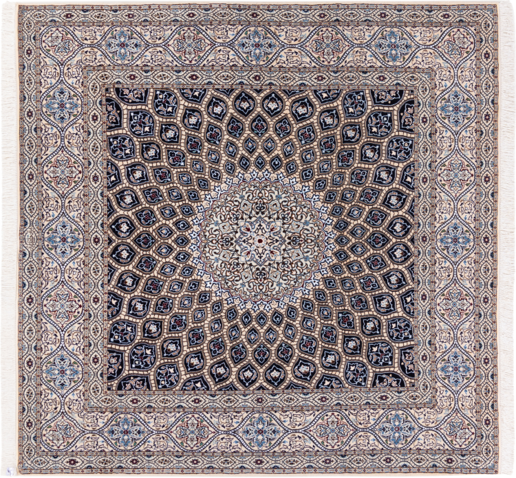 Carpet ID: 3069110021713 Size: 210x207 cm Thickness: ap. 6 mm Knot density: 810 000 / m² Manufacturing: Knotted by hand Pile: Wool with silk Warp: Cotton Origin: Persia Age: New Weight: ap. 11 kg In stock: Unique - Only 1 in stock