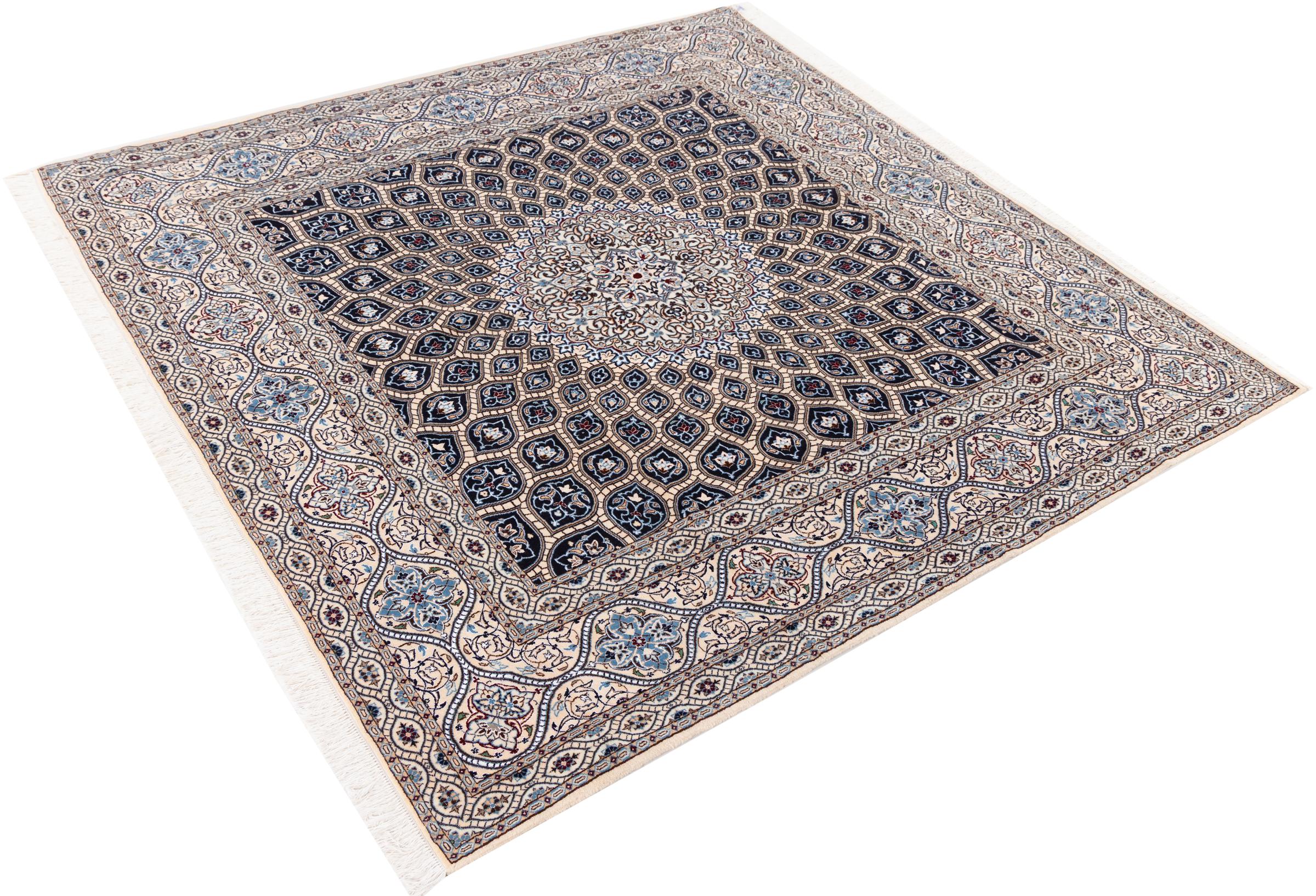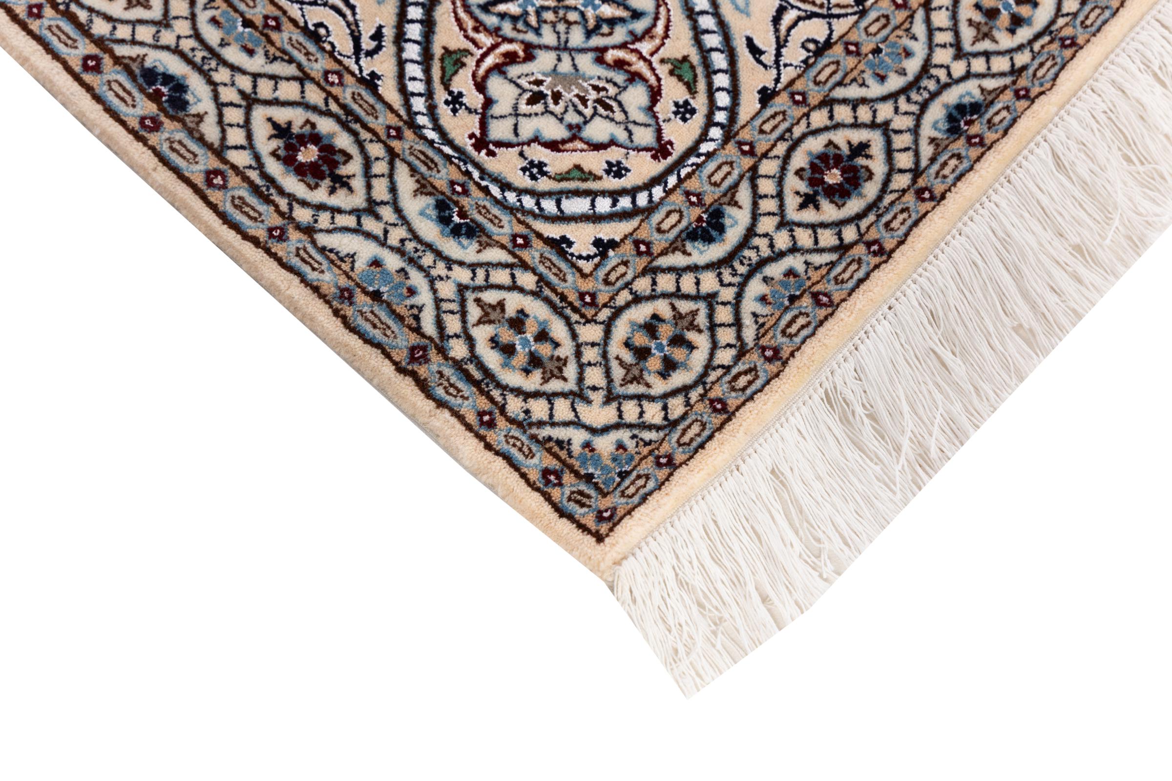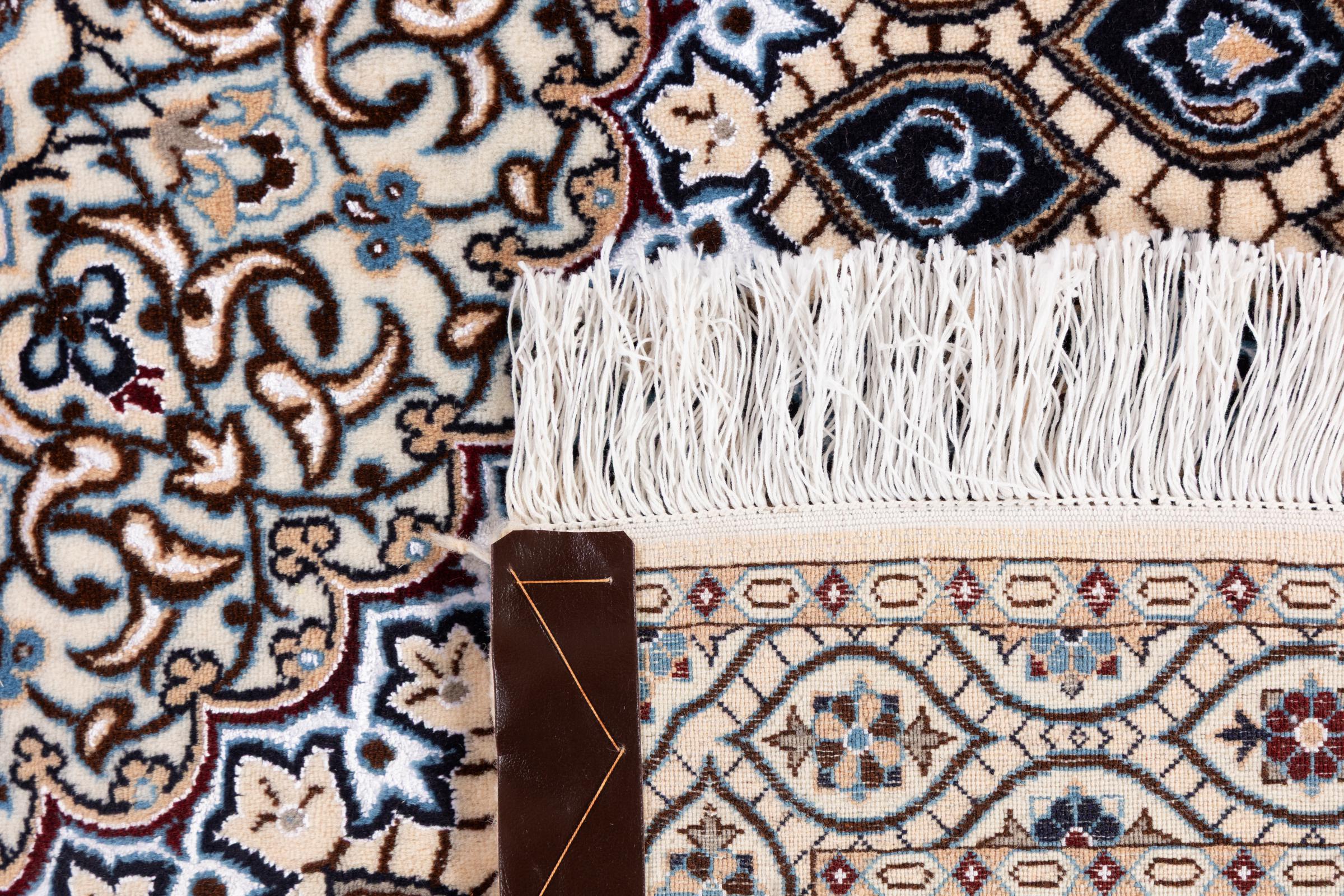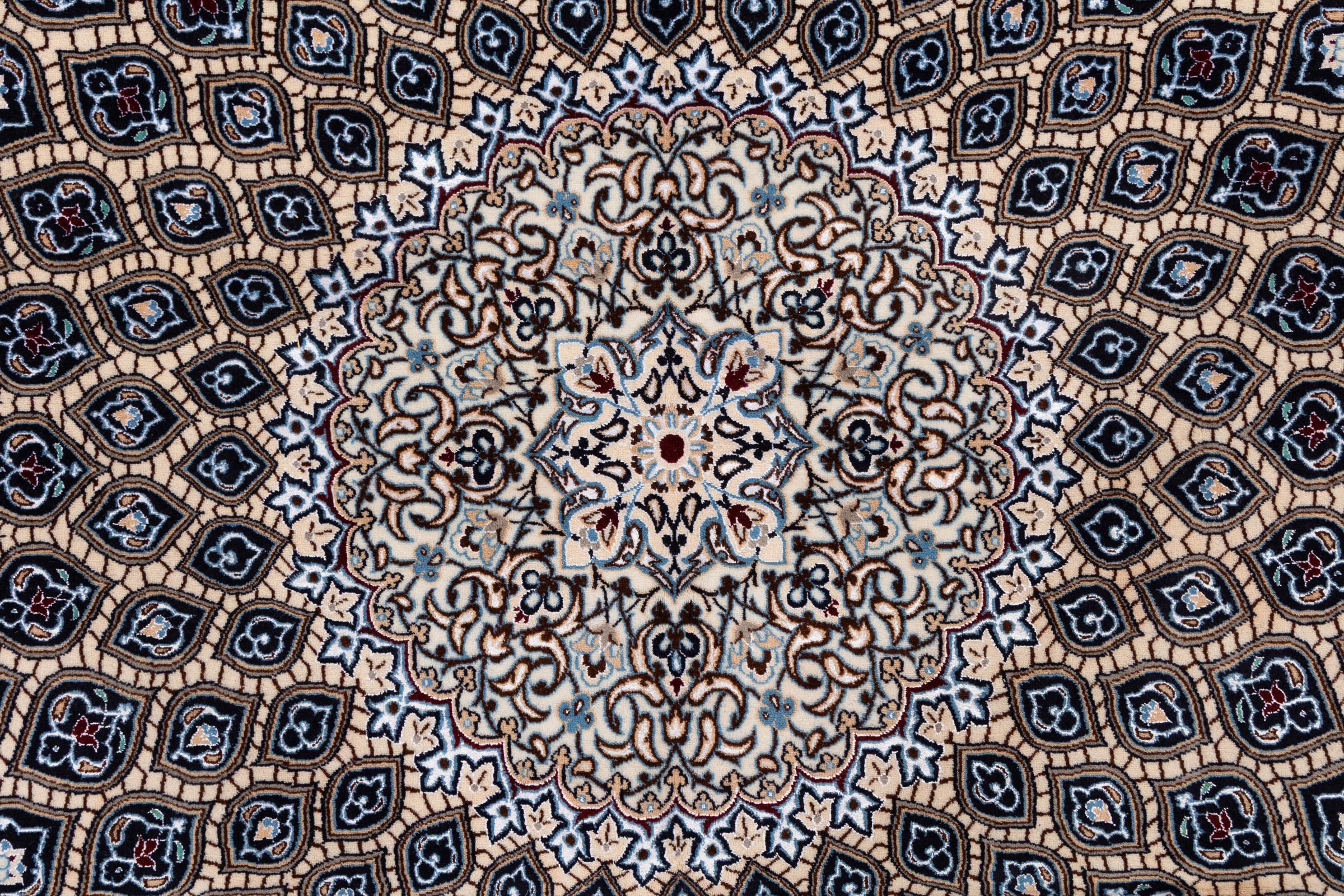 Rugs from the city of Nain, from the border of one of the largest deserts in Iran, are among the most famous Persian rugs in the world. Their typical design is characterized by floral ornaments, a medallion in the middle as well as beige and red or blue shades. Thanks to their designations 4La, 6La, 9La and 12La, the finenesses of a Nain rug can be seen at a glance. The lower the "La" number, the higher the knot density and thus the finer the rug.