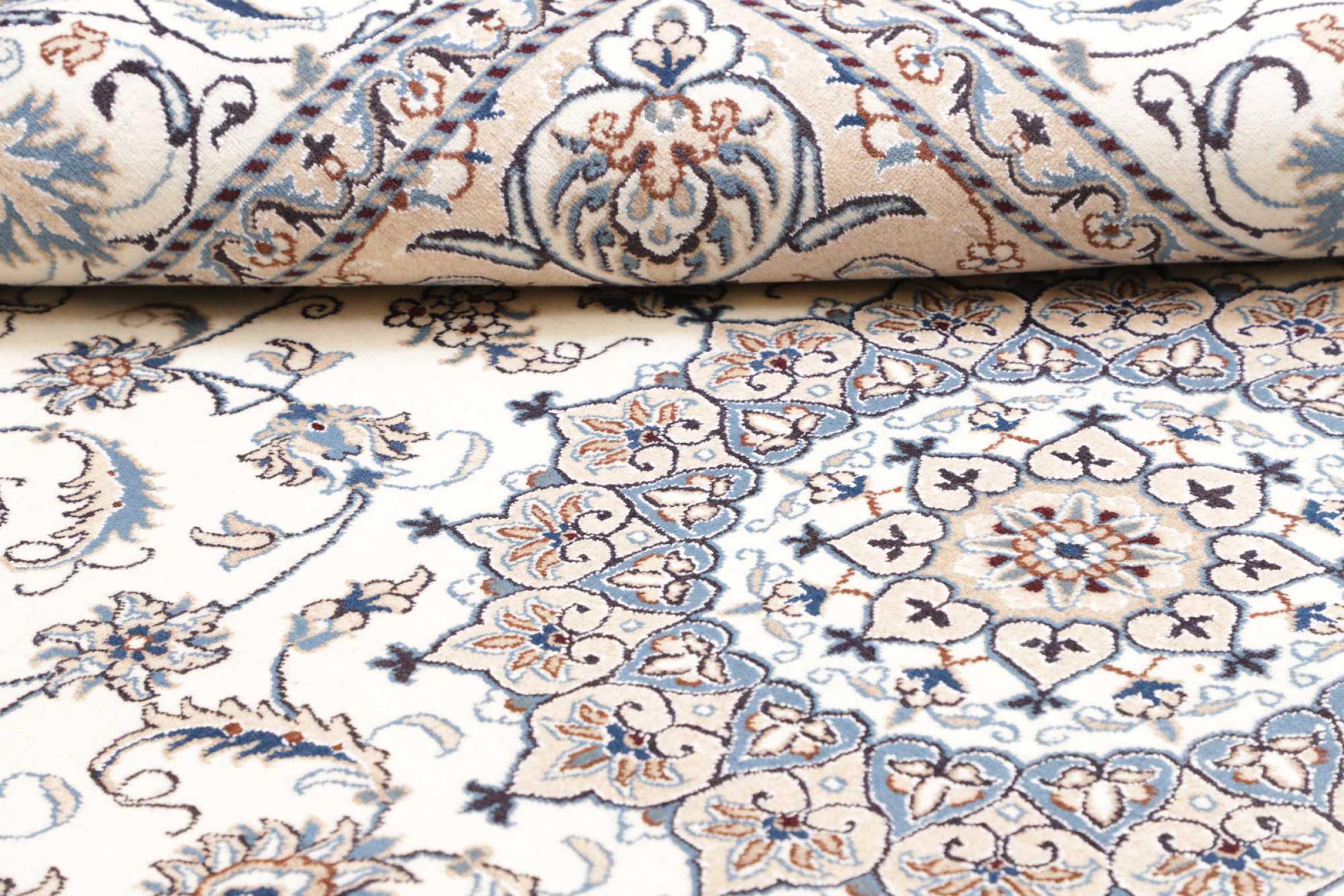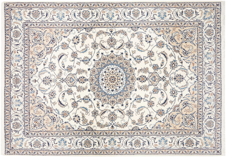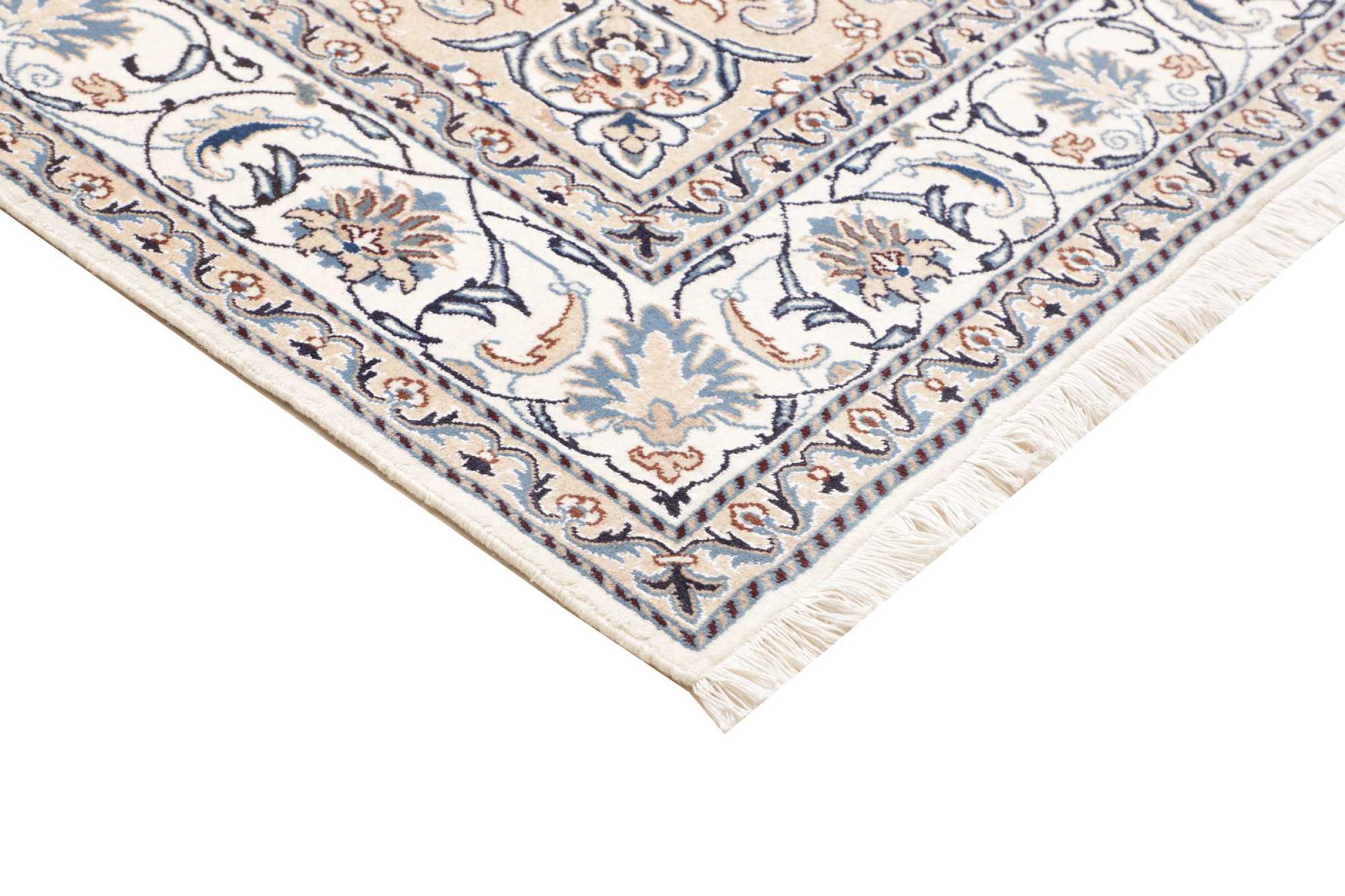 Rugs from the city of Nain, from the border of one of the largest deserts in Iran, are among the most famous Persian rugs in the world. Their typical design is characterized by floral ornaments, a medallion in the middle as well as beige and red or blue shades. Thanks to their designations 4La, 6La, 9La and 12La, the finenesses of a Nain rug can be seen at a glance. The lower the "La" number, the higher the knot density and thus the finer the rug.