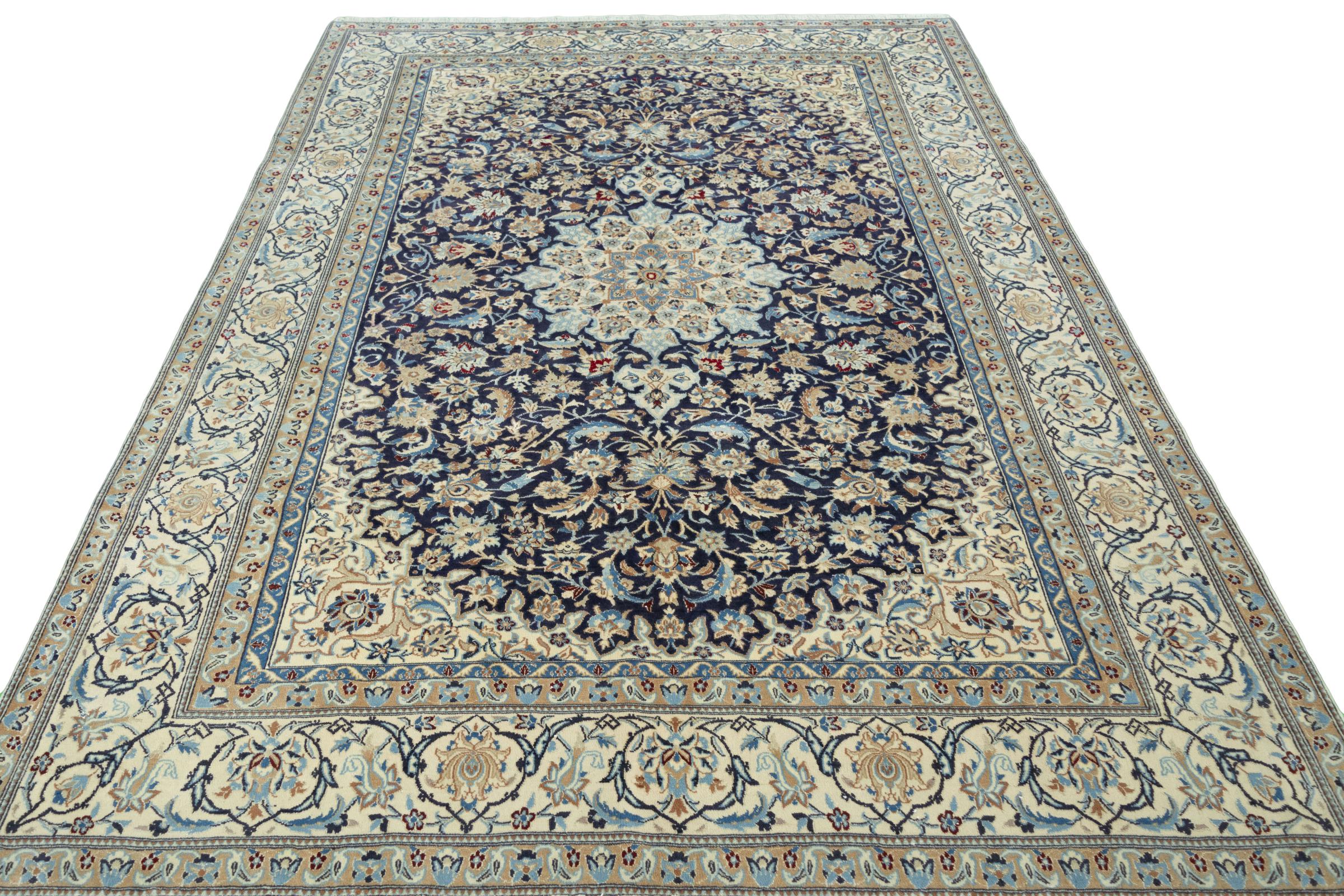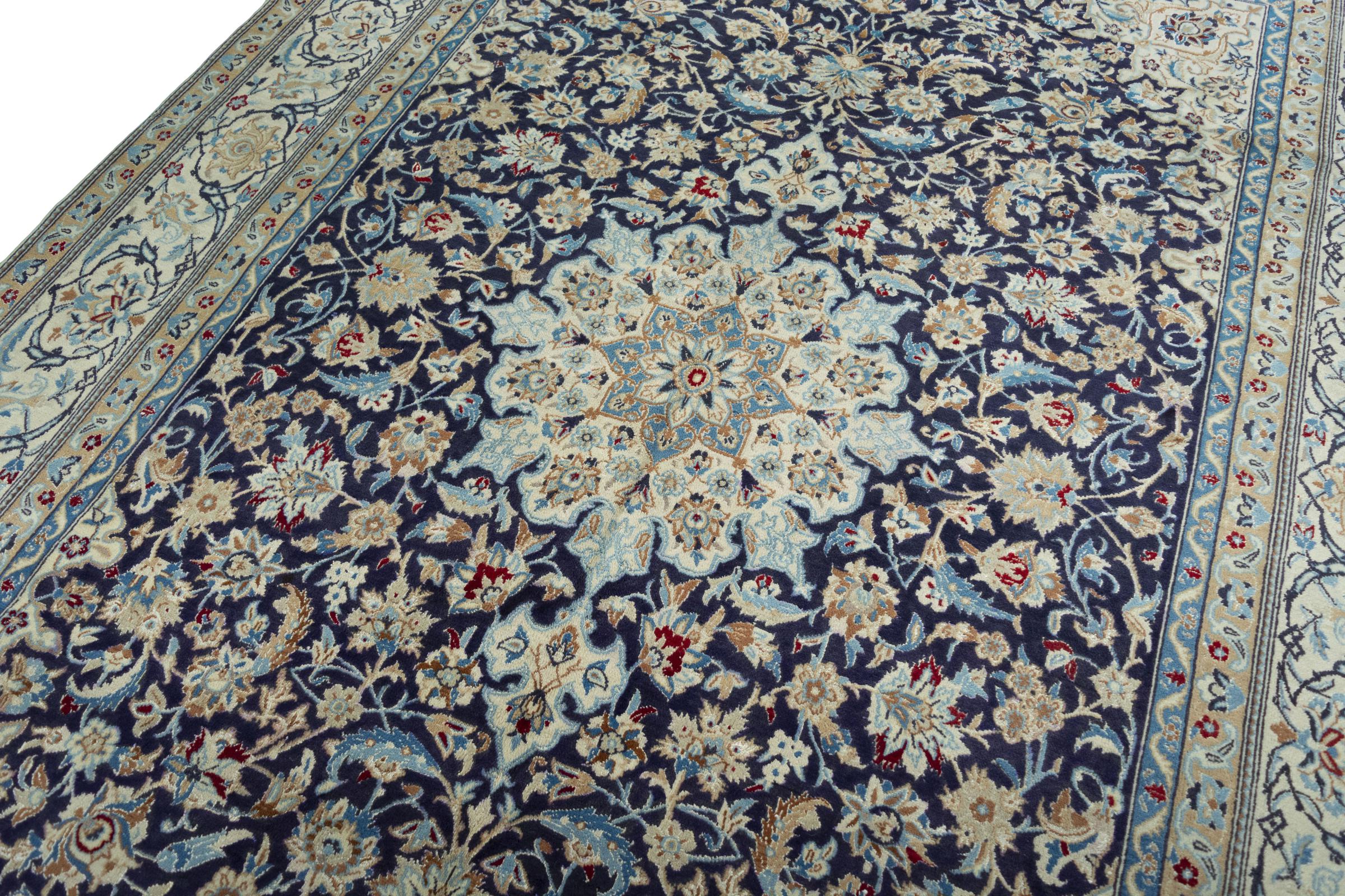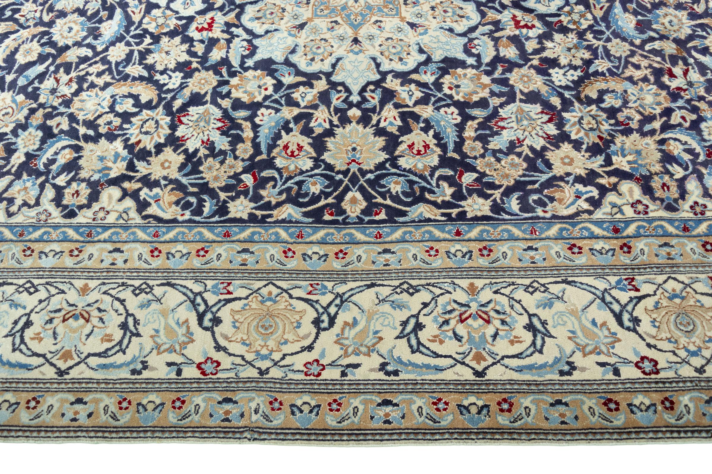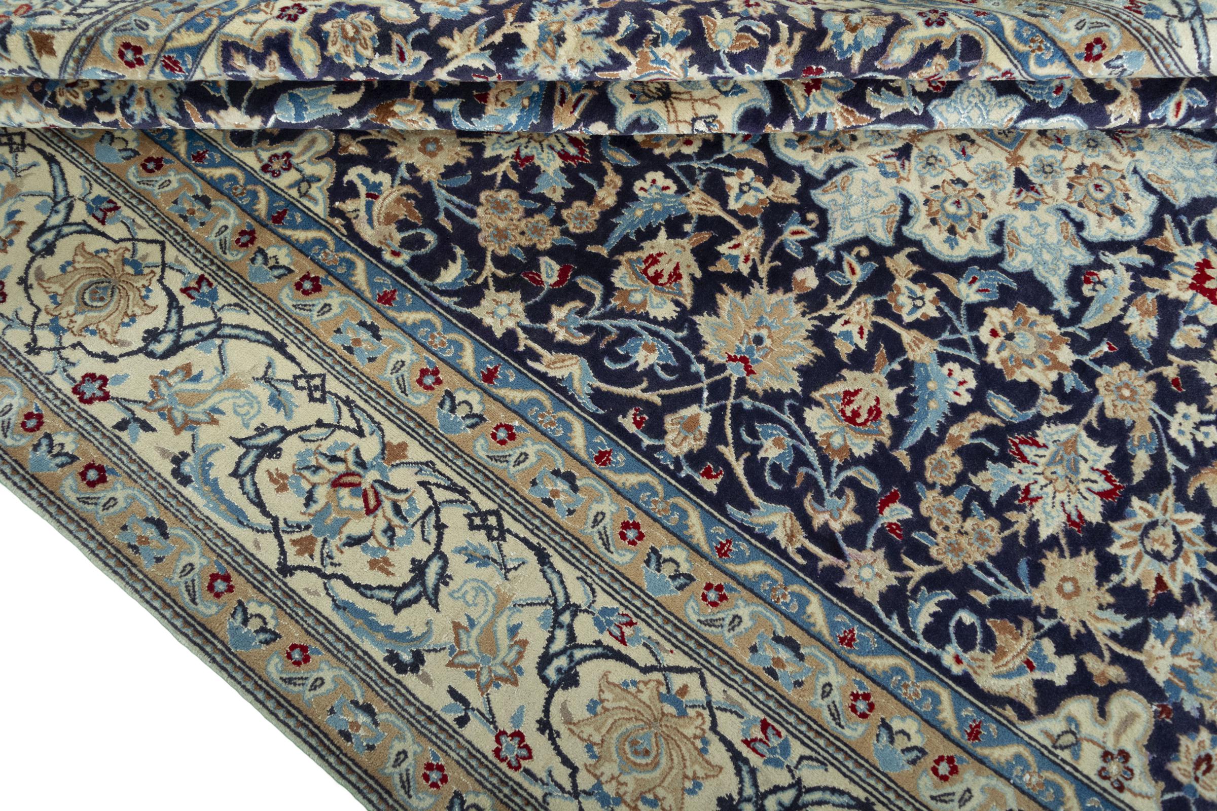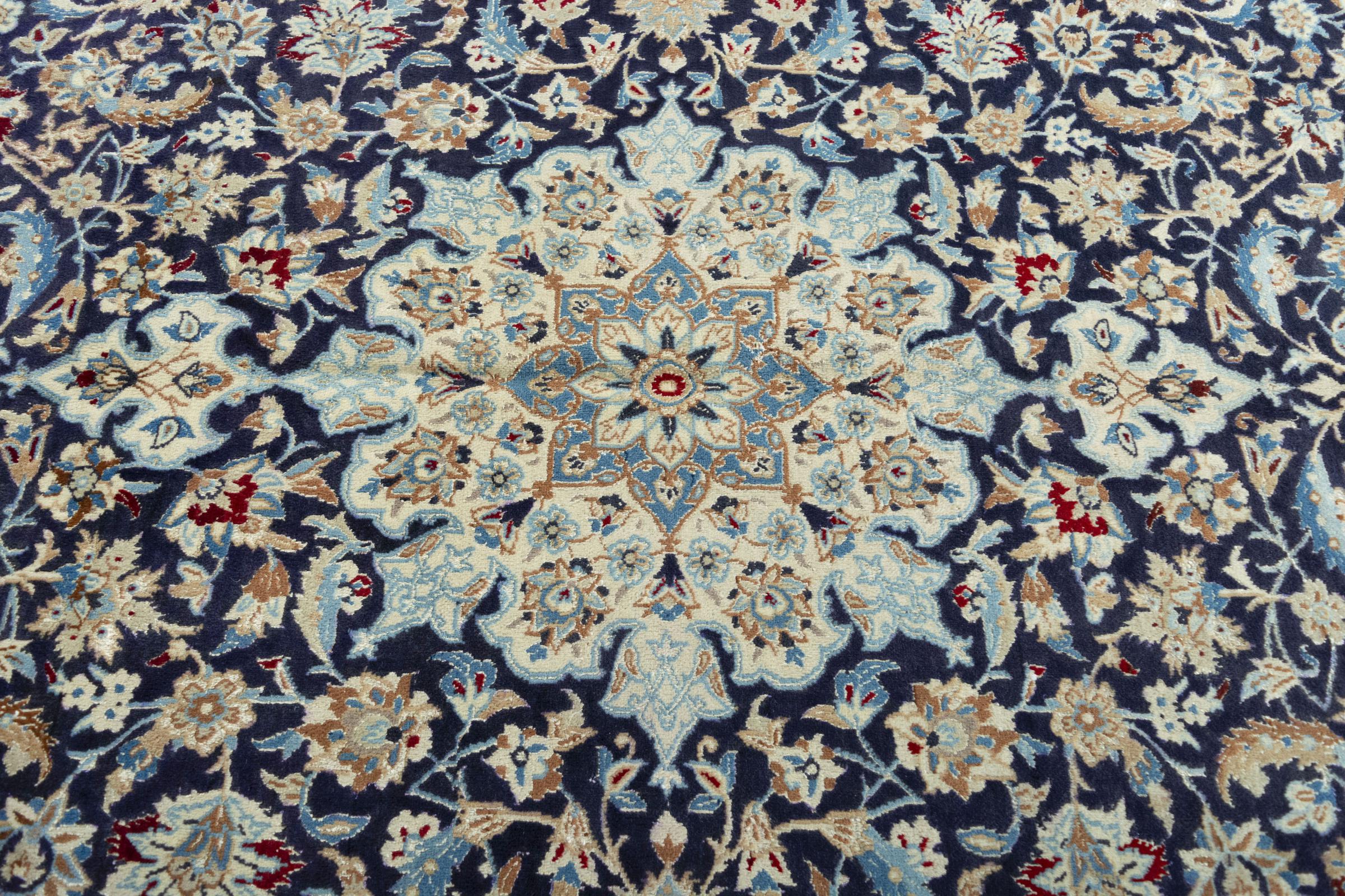 This Nain rug is classified as 9La. The excellent quality, the beautiful oriental design with its curvilinear patterns will delight every buyer. This Persian rug was hand-knotted in the city of Nain, which lies on the western edge of the Dasht-e-Kavir desert, from high-quality wool and natural silk. 9La Nain rugs are significantly finer than a 12La and already show beautiful details.