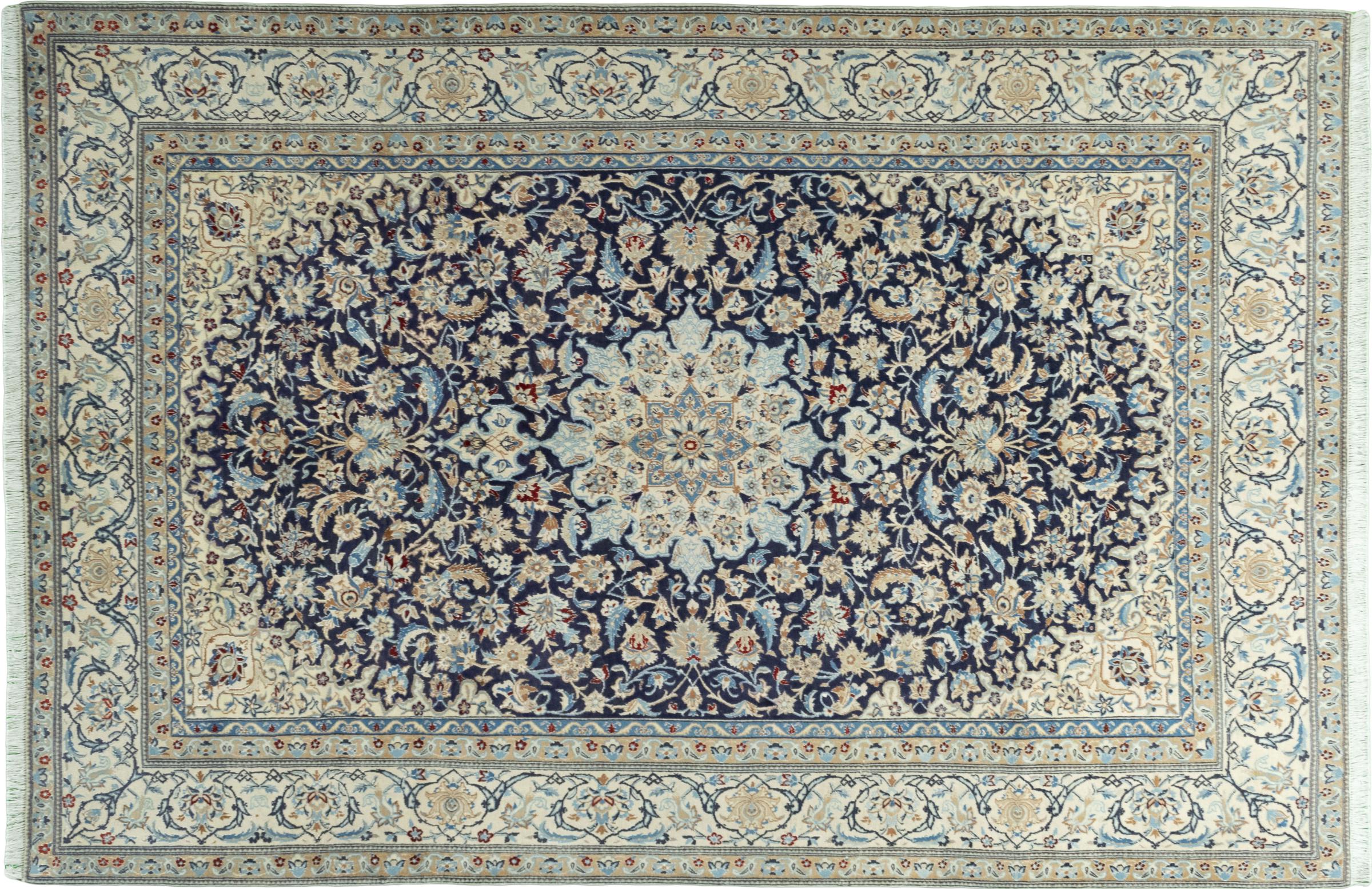 Rugs from the city of Nain, from the border of one of the largest deserts in Iran, are among the most famous Persian rugs in the world. Their typical design is characterized by floral ornaments, a medallion in the middle as well as beige and red or blue shades. Thanks to their designations 4La, 6La, 9La and 12La, the finenesses of a Nain rug can be seen at a glance. The lower the "La" number, the higher the knot density and thus the finer the rug.
