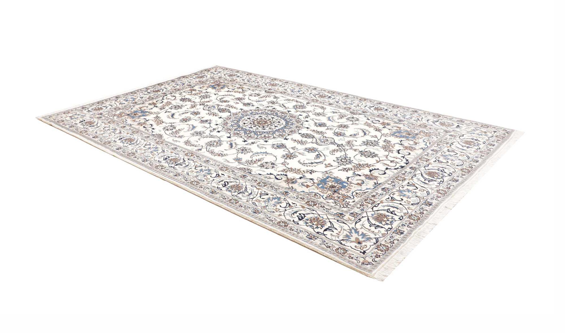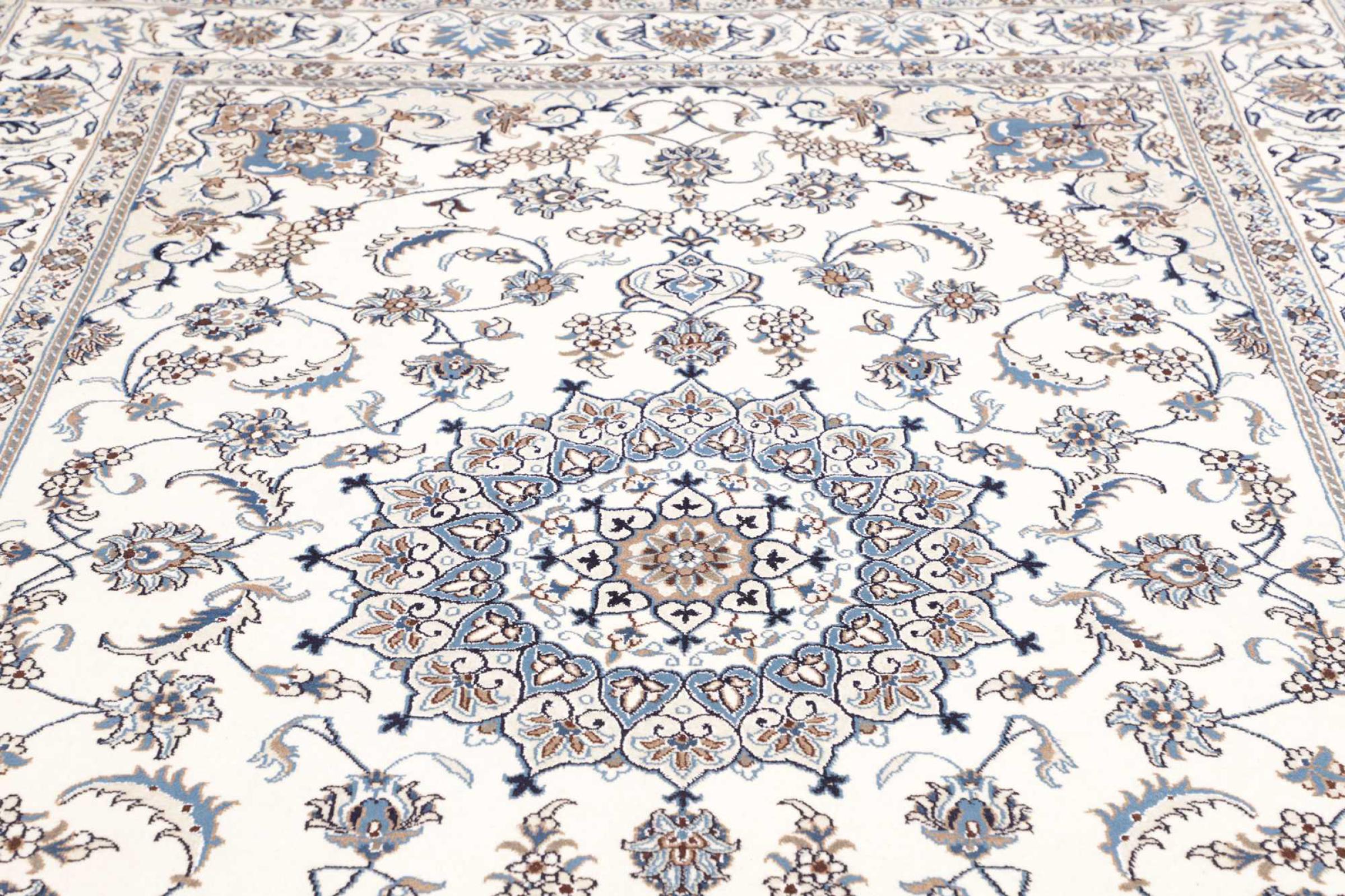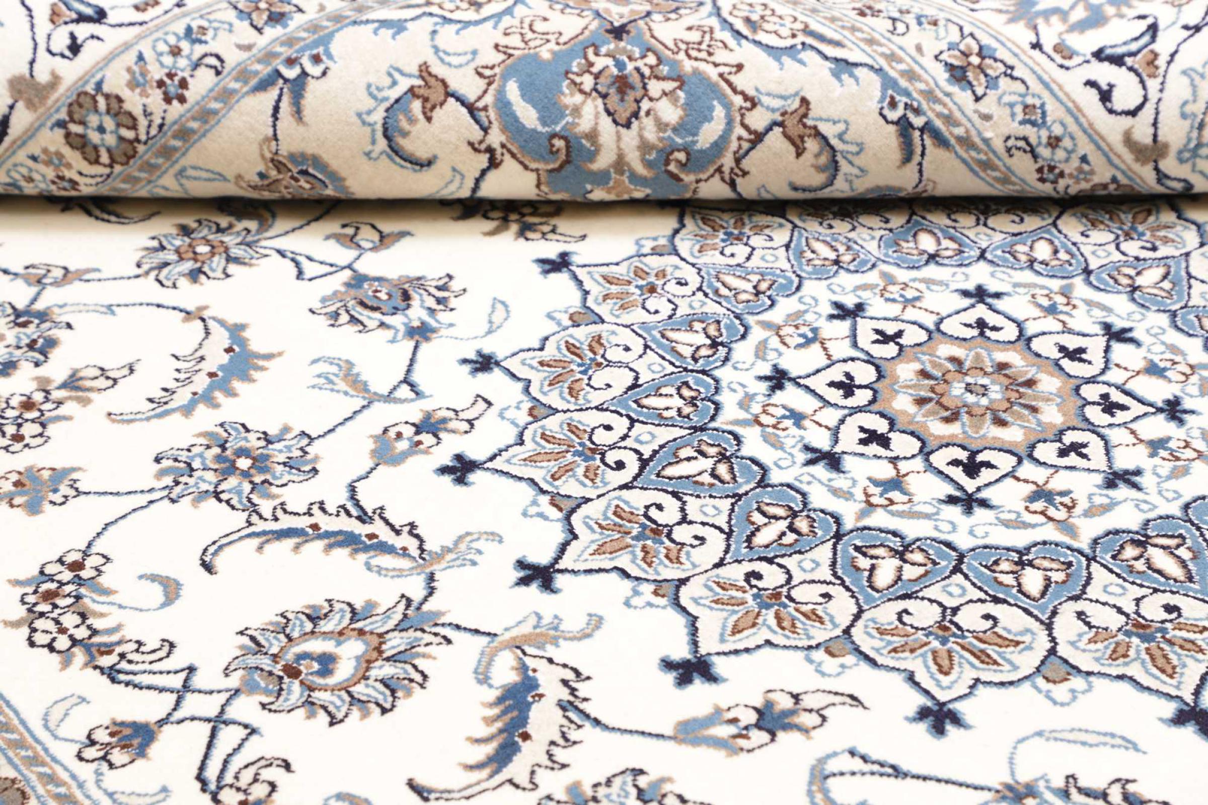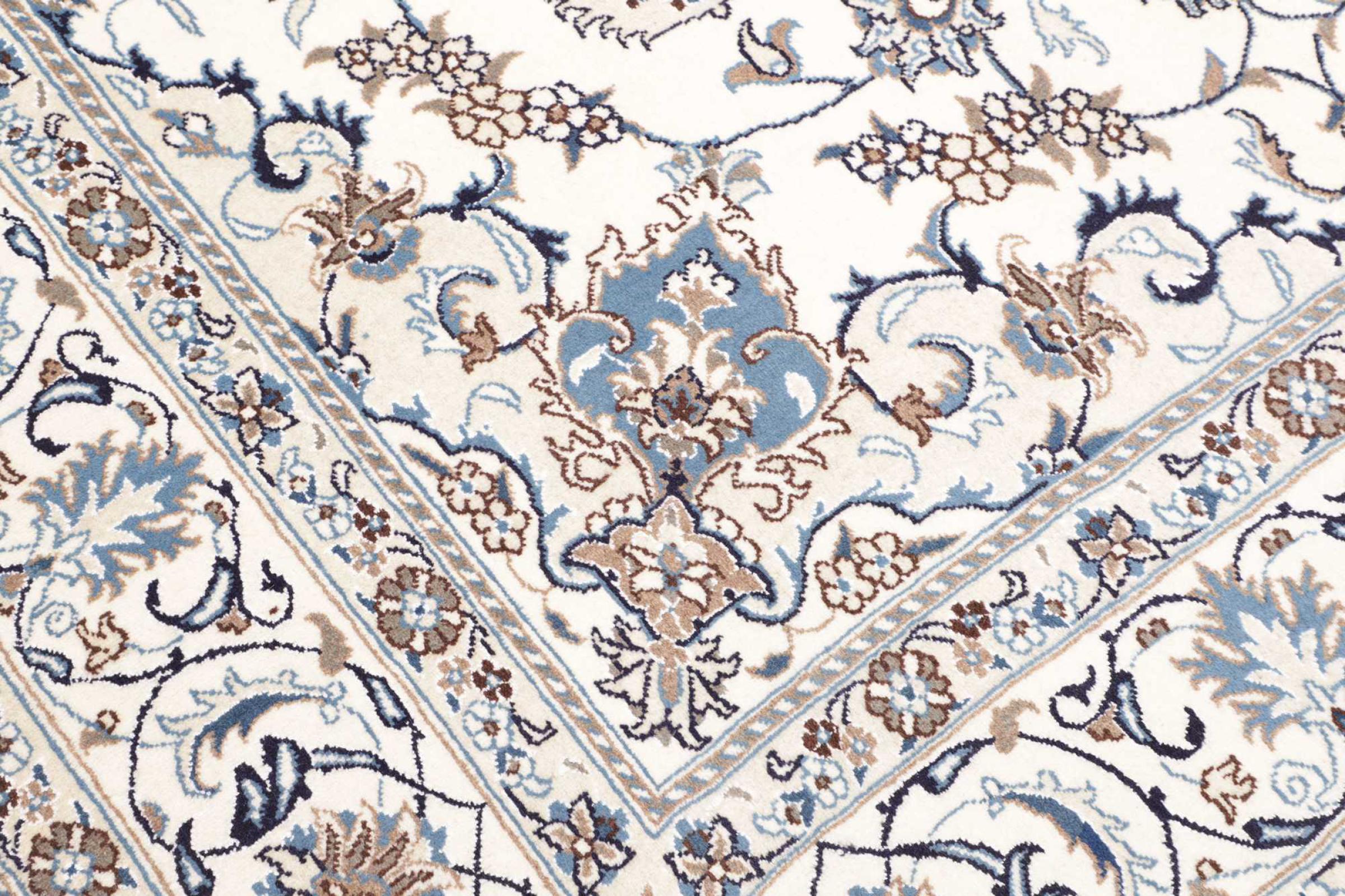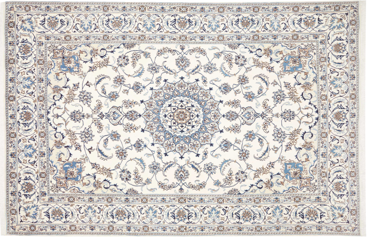Rugs from the city of Nain, from the border of one of the largest deserts in Iran, are among the most famous Persian rugs in the world. Their typical design is characterized by floral ornaments, a medallion in the middle as well as beige and red or blue shades. Thanks to their designations 4La, 6La, 9La and 12La, the finenesses of a Nain rug can be seen at a glance. The lower the "La" number, the higher the knot density and thus the finer the rug.