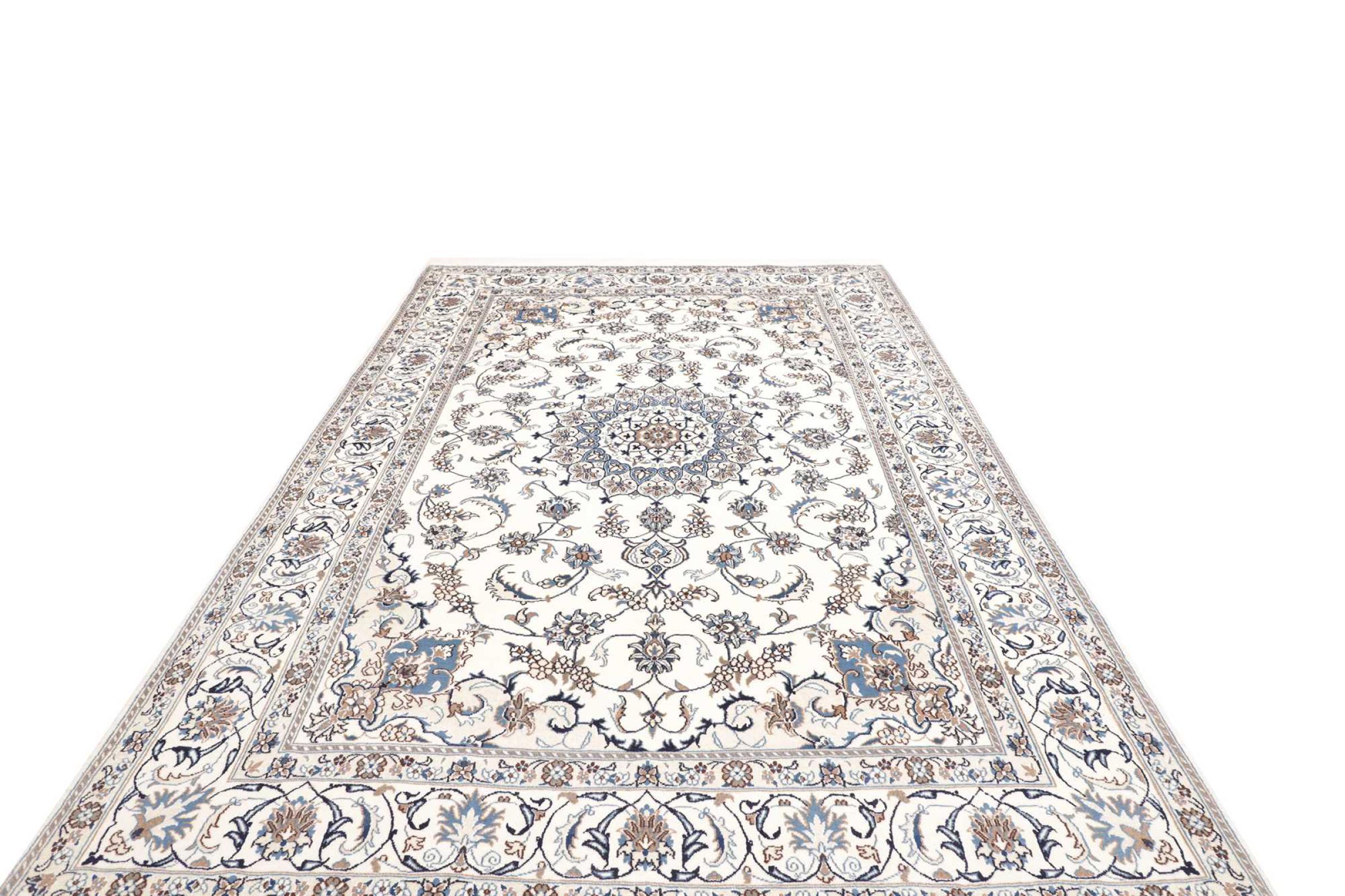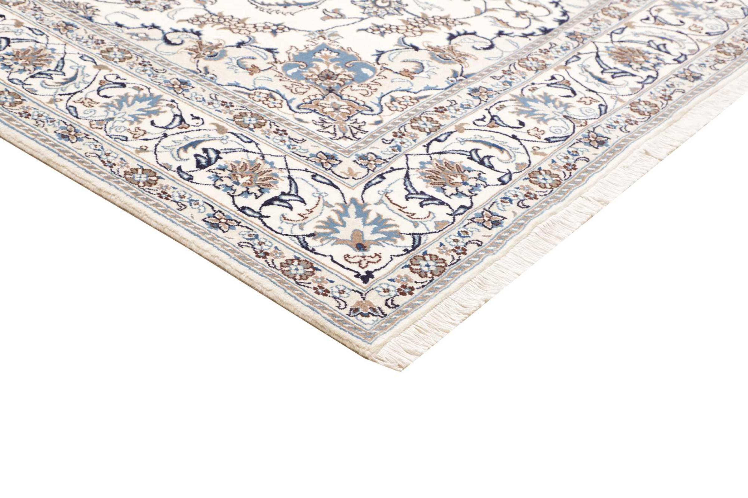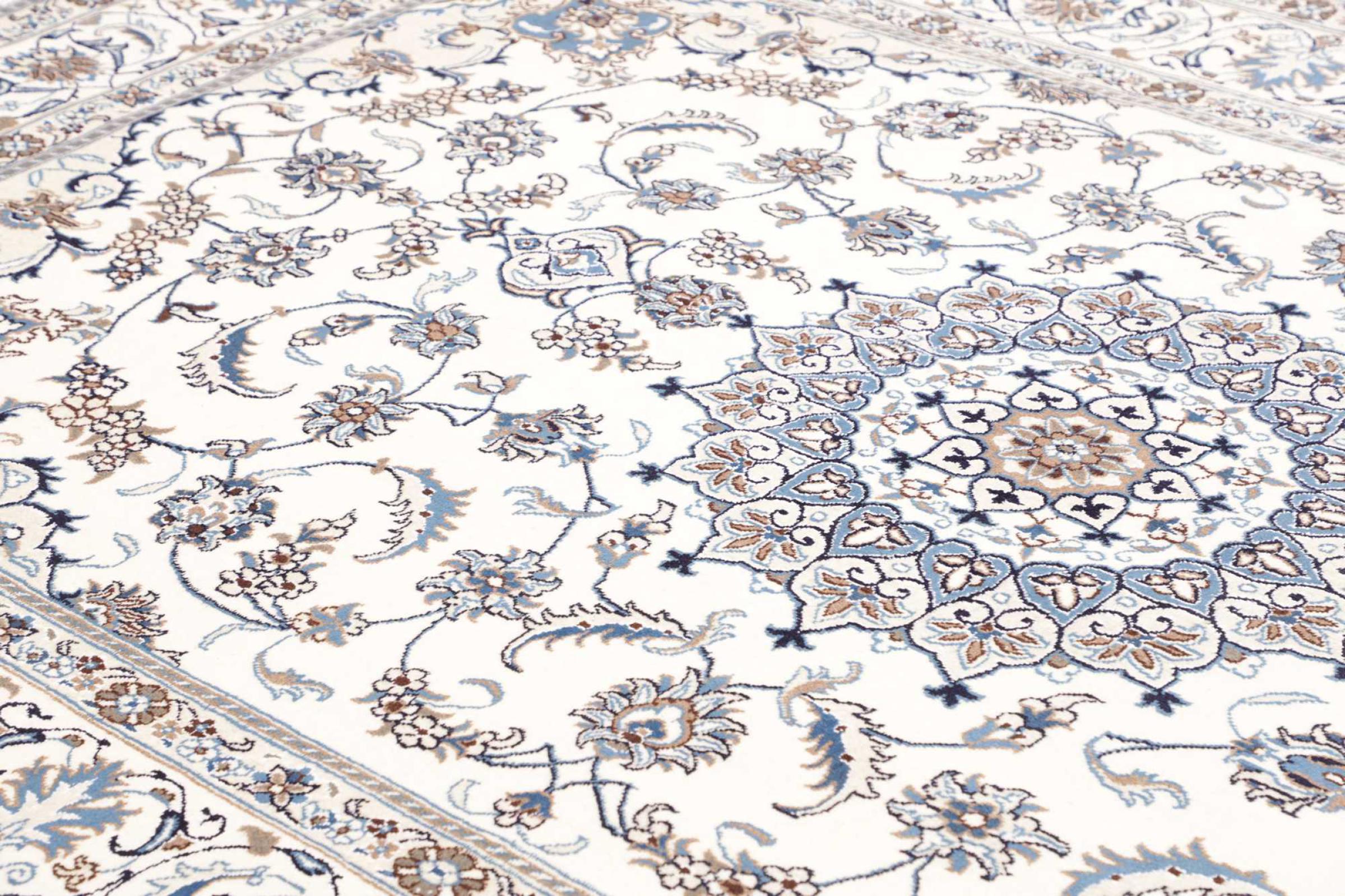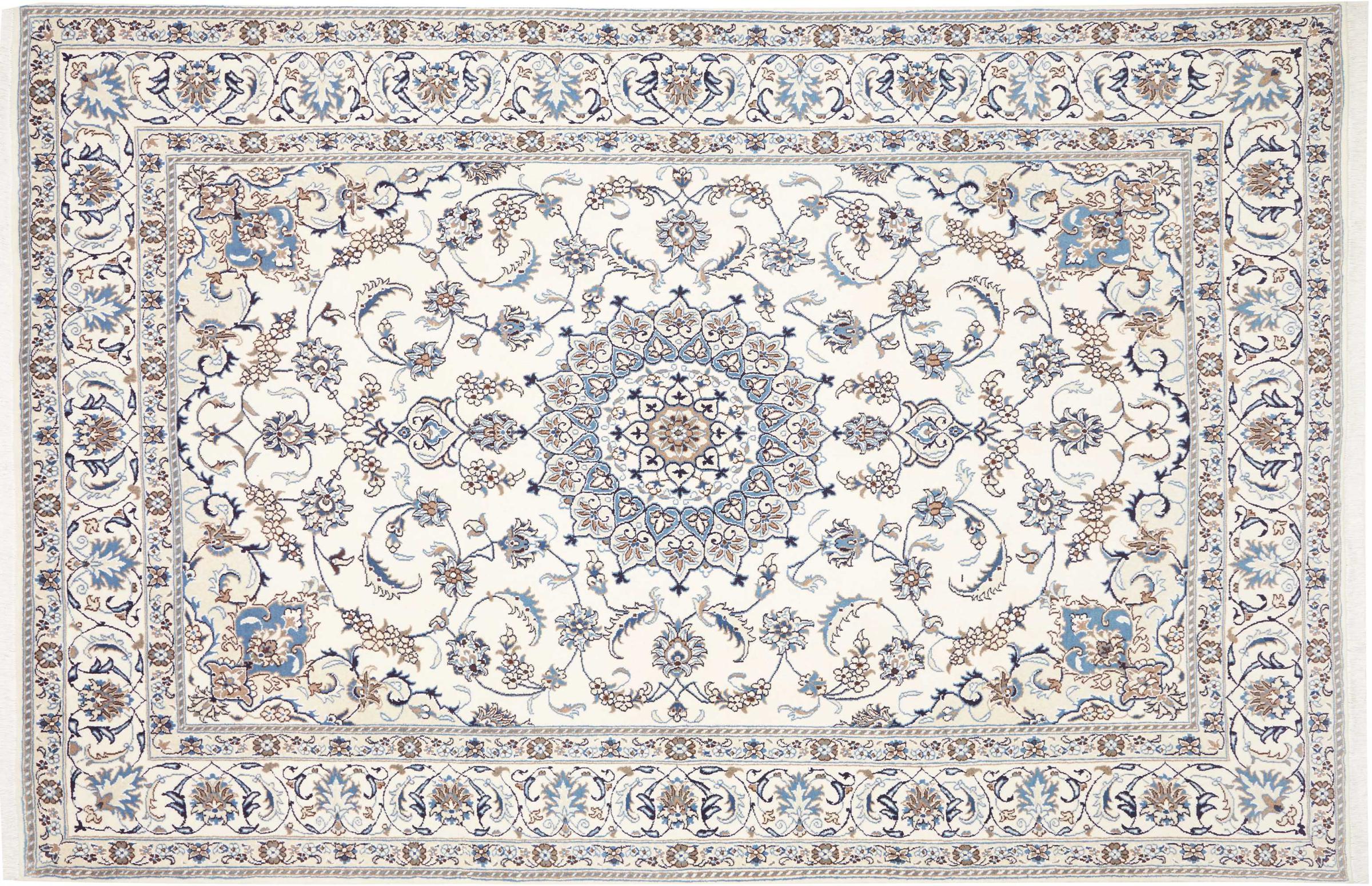 Rugs from the city of Nain, from the border of one of the largest deserts in Iran, are among the most famous Persian rugs in the world. Their typical design is characterized by floral ornaments, a medallion in the middle as well as beige and red or blue shades. Thanks to their designations 4La, 6La, 9La and 12La, the finenesses of a Nain rug can be seen at a glance. The lower the "La" number, the higher the knot density and thus the finer the rug.