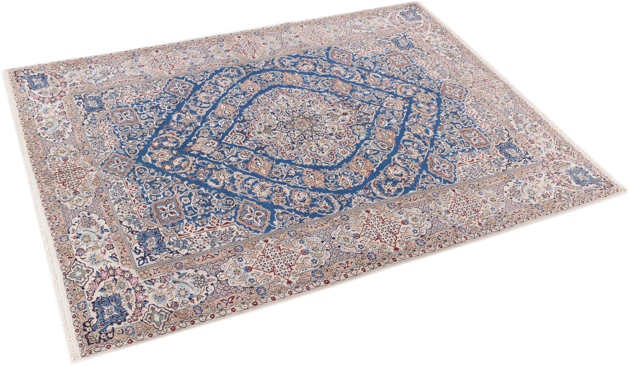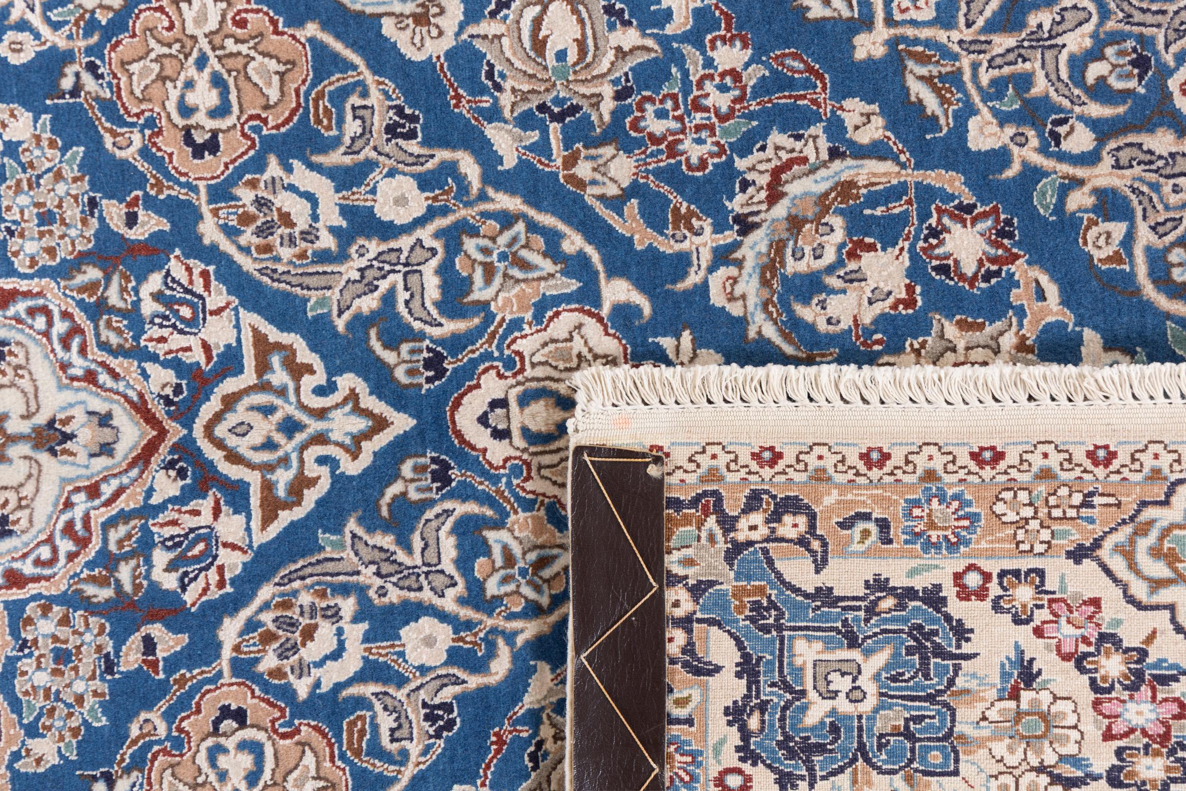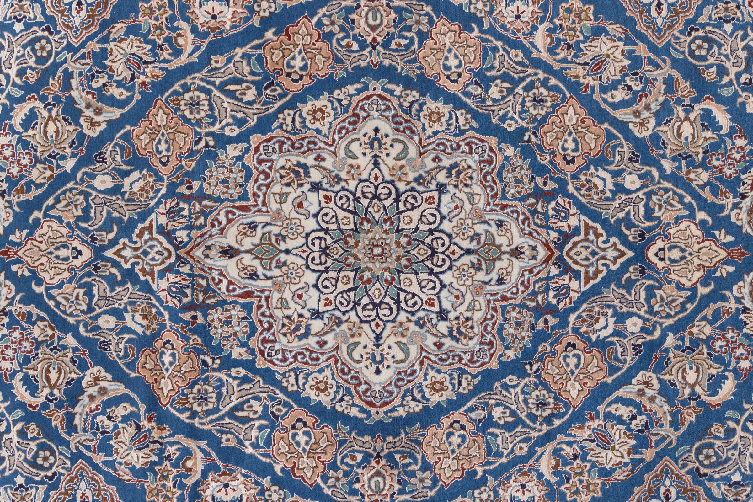 Rugs from the city of Nain, from the border of one of the largest deserts in Iran, are among the most famous Persian rugs in the world. Their typical design is characterized by floral ornaments, a medallion in the middle as well as beige and red or blue shades. Thanks to their designations 4La, 6La, 9La and 12La, the finenesses of a Nain rug can be seen at a glance. The lower the "La" number, the higher the knot density and thus the finer the rug.