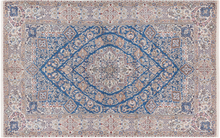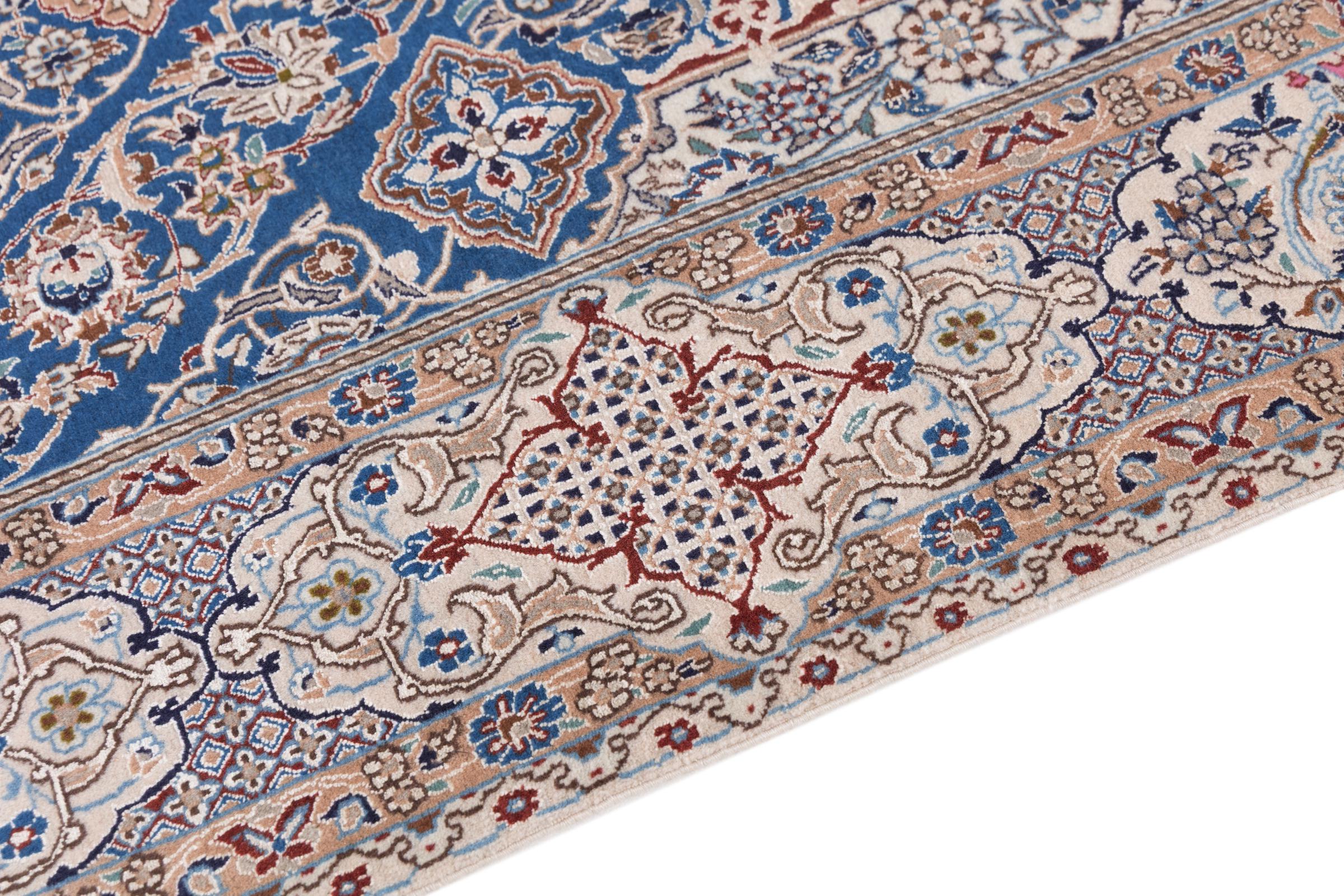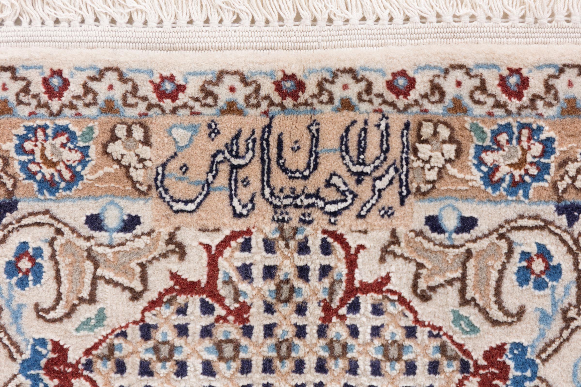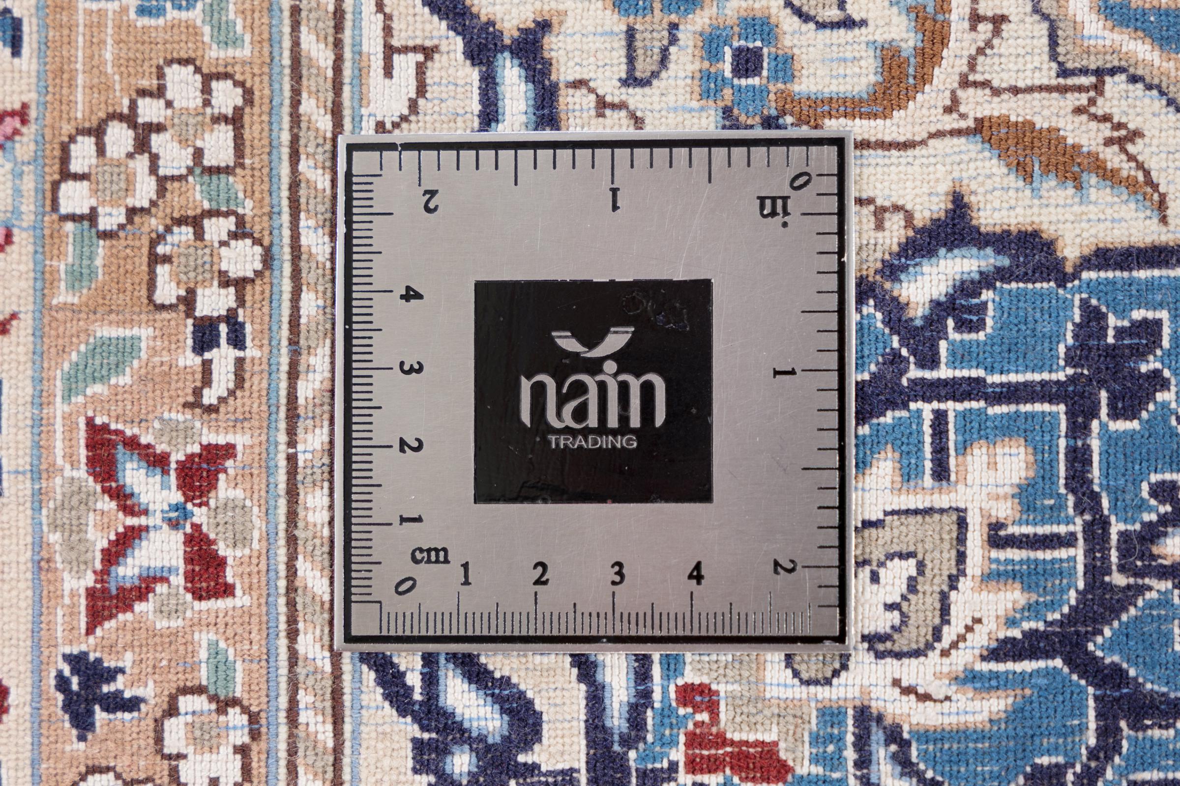 This Nain rug combines quality, tradition and an unmistakable design. It was hand-knotted from high-quality cork wool and natural silk in the desert town of the same name, Nain. Lovers of valuable rugs from Iran will love this Persian rug. With Nain rugs in the 6La and 4La classifications, you have a real work of art with an incredible level of detail that you can really lose yourself in. Nain 4La rugs are almost impossible to find today, as they are extremely elaborate to produce.