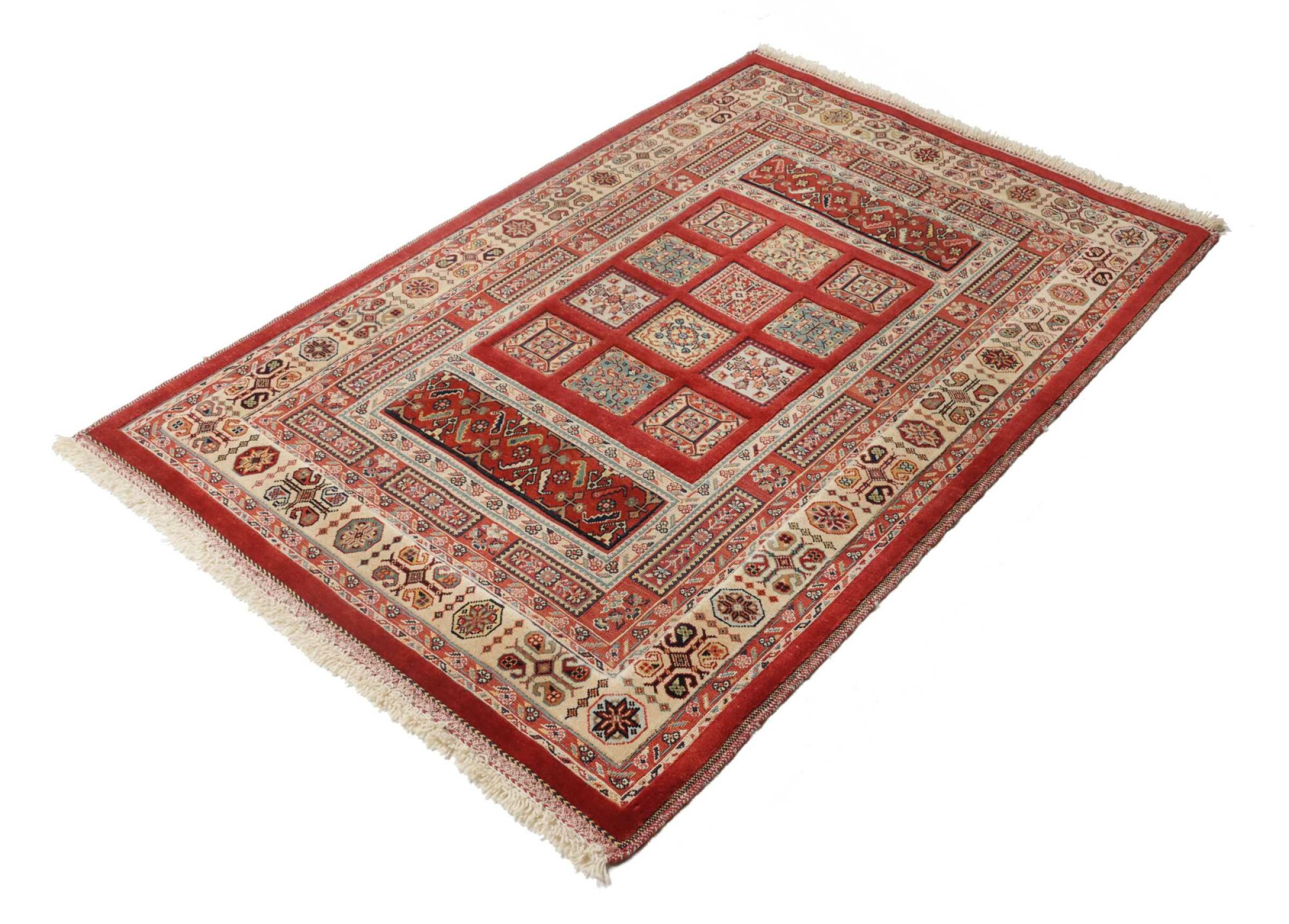This rug is made of hand spun sheep wool of the highest quality. Especially in Iran (former Persia), Afghanistan and Pakistan wool is still spun by hand before the actual knotting of the rug begins. Wool has proven itself as a natural and extremely hard-wearing material over centuries. Among other things, it has dirt-repellent and heat-insulating properties. At the same time, wool is incomparably soft and has a natural shine.