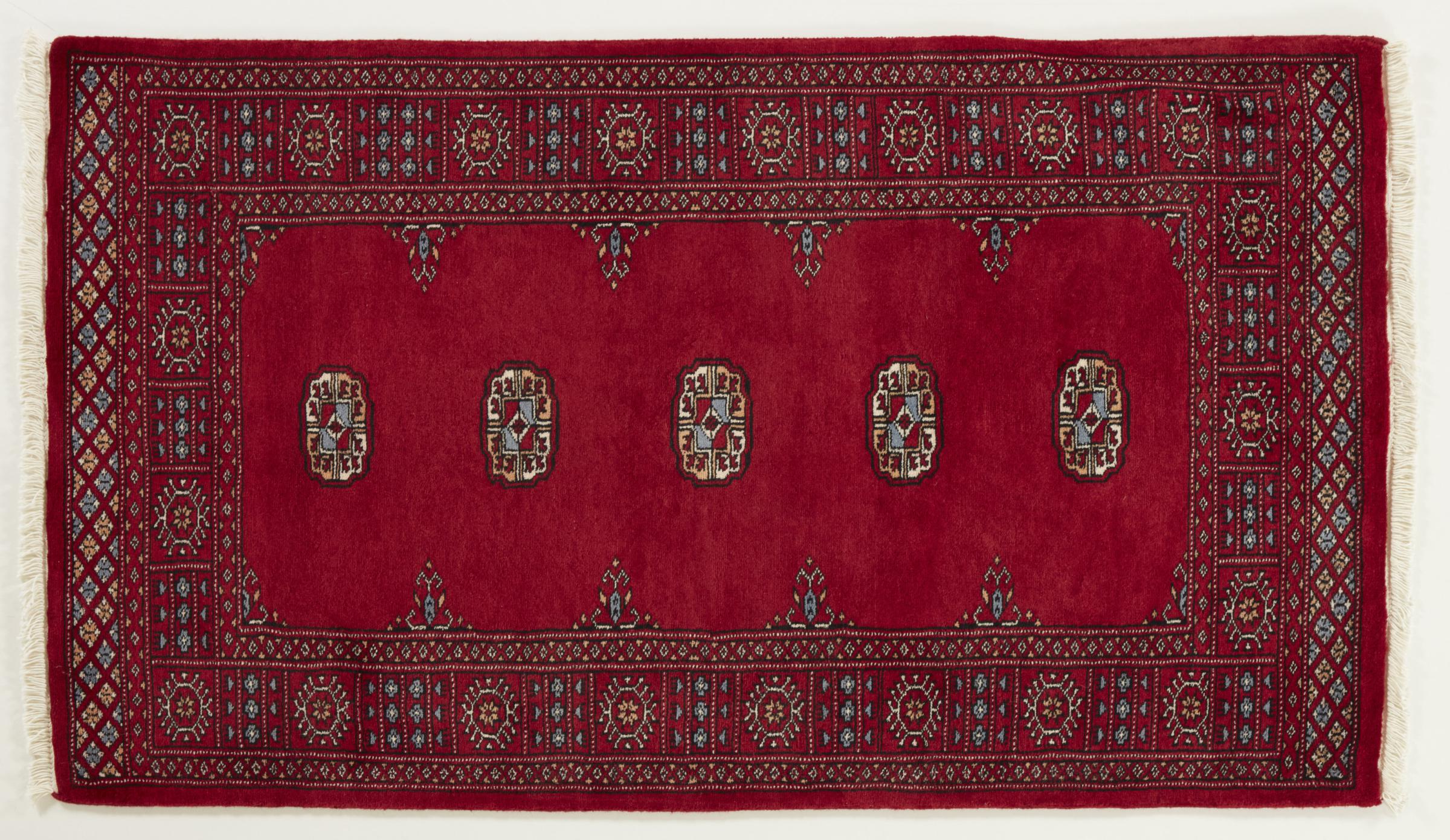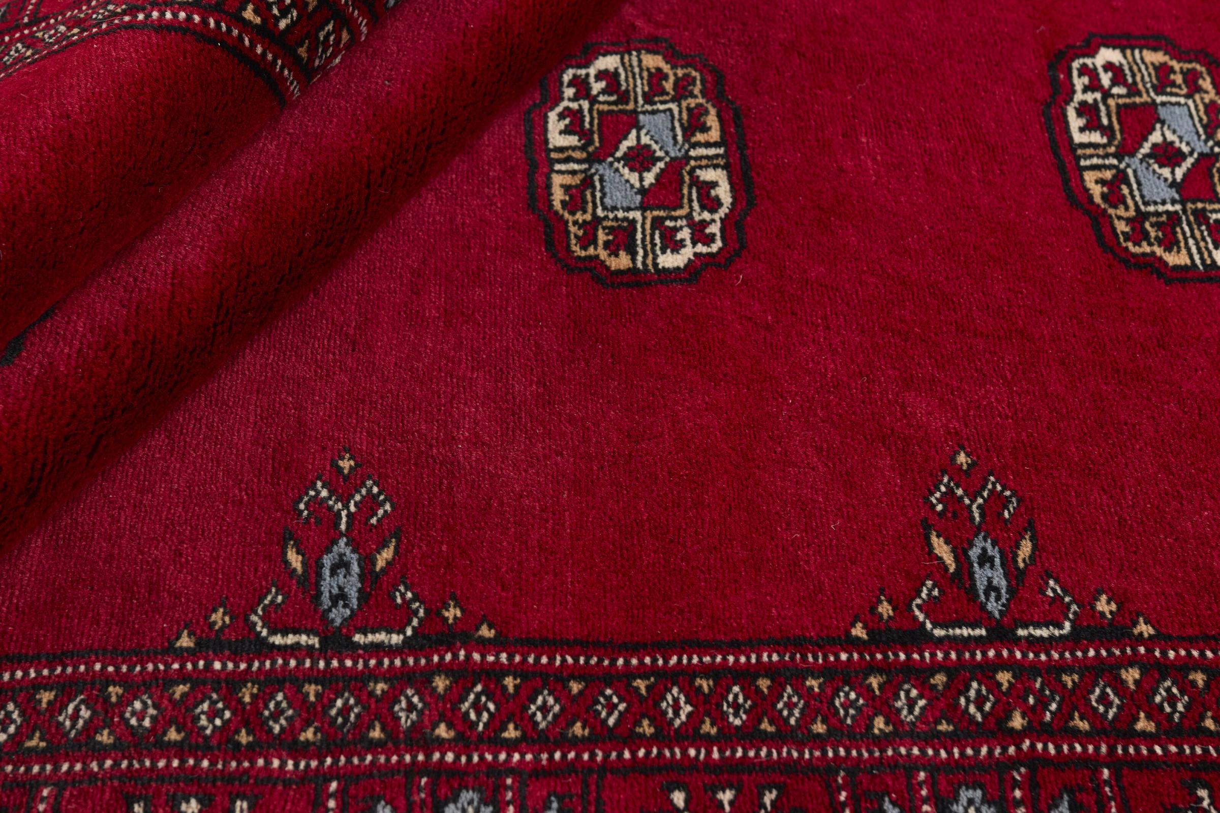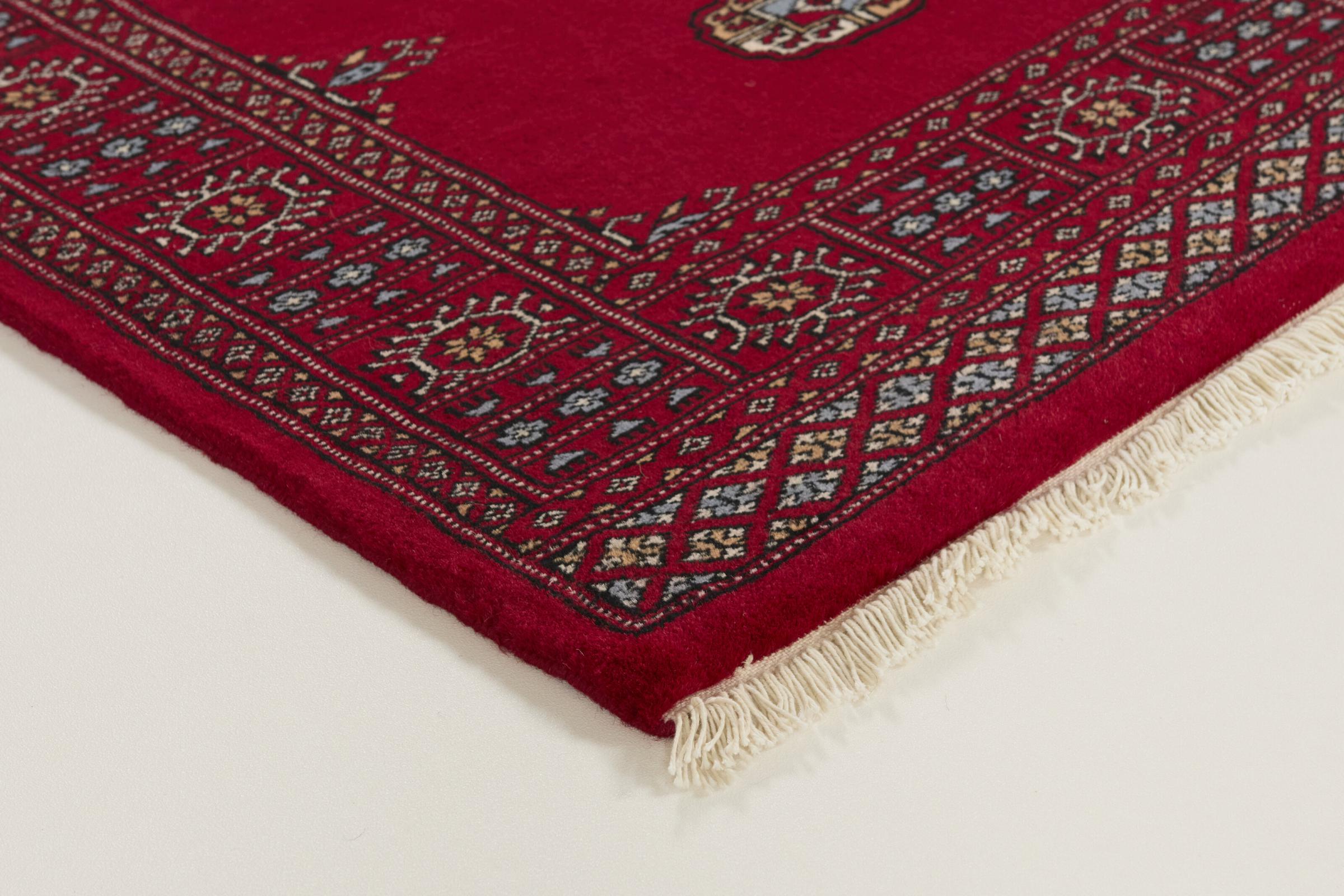 A large part of Pakistani rug production takes place in and around the cities of Lahore and Karachi. Many of the rug knotters of that time fled to Pakistan during the war with India and settled there. Today, especially hand-knotted Pakistan Bukhara rugs are well-known. Similar to the Afghan oriental rugs, Pakistani rugs are also made in dark colours and mostly have shades of red. Even the well-known elephant foot pattern (repeating octagonal pattern) can be found on a Pakistani.