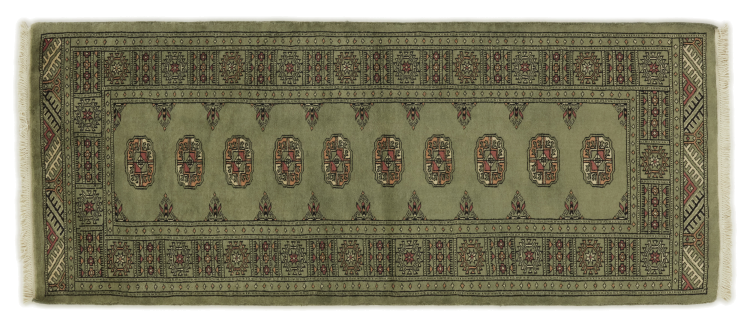 A large part of Pakistani rug production takes place in and around the cities of Lahore and Karachi. Many of the rug knotters of that time fled to Pakistan during the war with India and settled there. Today, especially hand-knotted Pakistan Bukhara rugs are well-known. Similar to the Afghan oriental rugs, Pakistani rugs are also made in dark colours and mostly have shades of red. Even the well-known elephant foot pattern (repeating octagonal pattern) can be found on a Pakistani.
