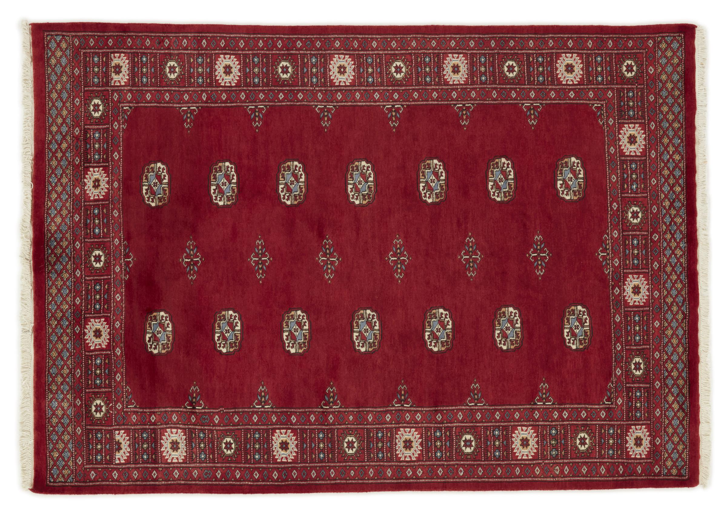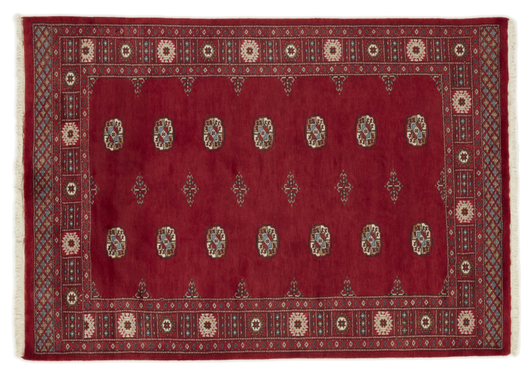 A large part of Pakistani rug production takes place in and around the cities of Lahore and Karachi. Many of the rug knotters of that time fled to Pakistan during the war with India and settled there. Today, especially hand-knotted Pakistan Bukhara rugs are well-known. Similar to the Afghan oriental rugs, Pakistani rugs are also made in dark colours and mostly have shades of red. Even the well-known elephant foot pattern (repeating octagonal pattern) can be found on a Pakistani.