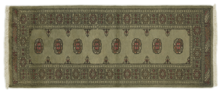 A large part of Pakistani rug production takes place in and around the cities of Lahore and Karachi. Many of the rug knotters of that time fled to Pakistan during the war with India and settled there. Today, especially hand-knotted Pakistan Bukhara rugs are well-known. Similar to the Afghan oriental rugs, Pakistani rugs are also made in dark colours and mostly have shades of red. Even the well-known elephant foot pattern (repeating octagonal pattern) can be found on a Pakistani.