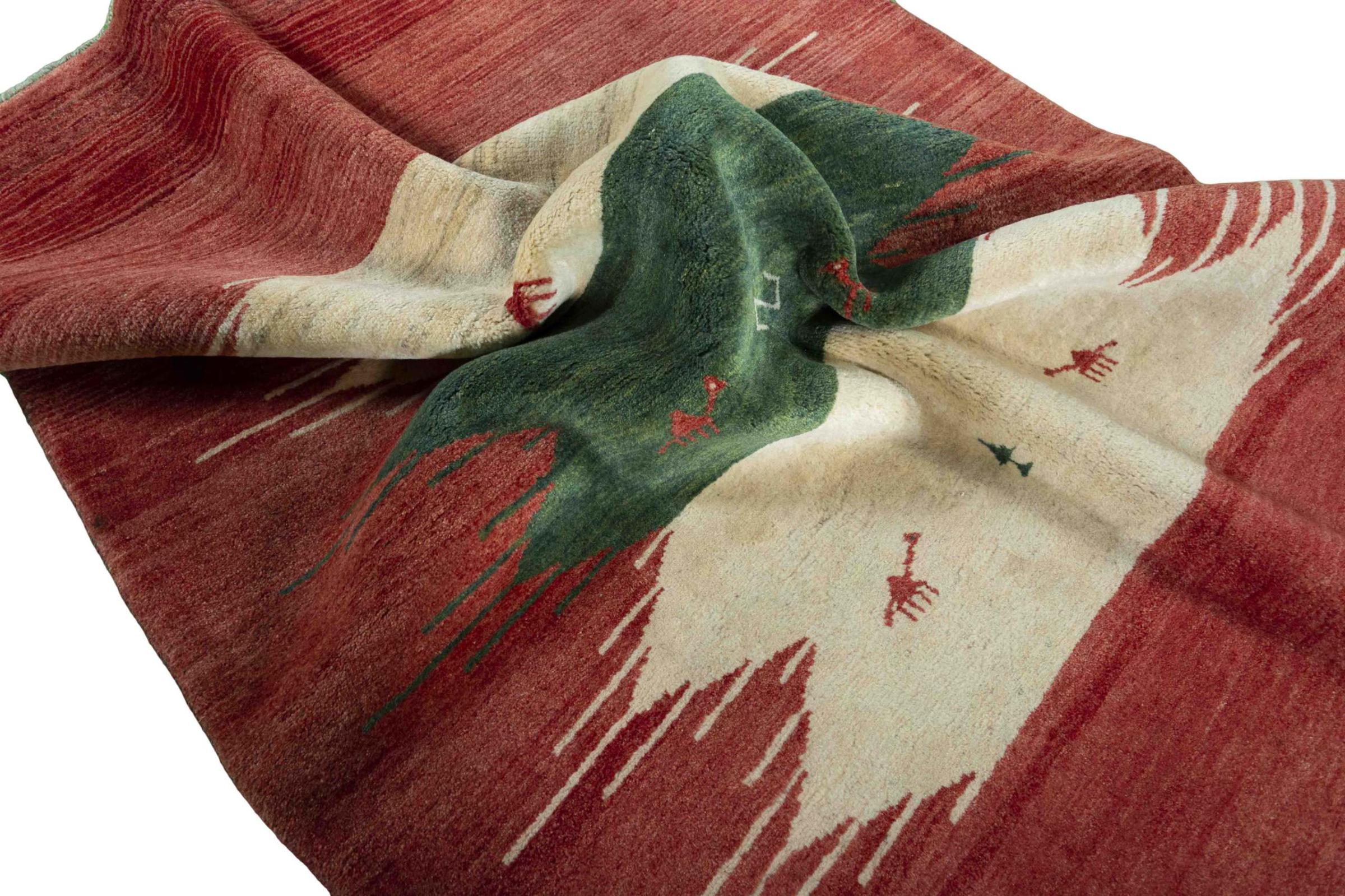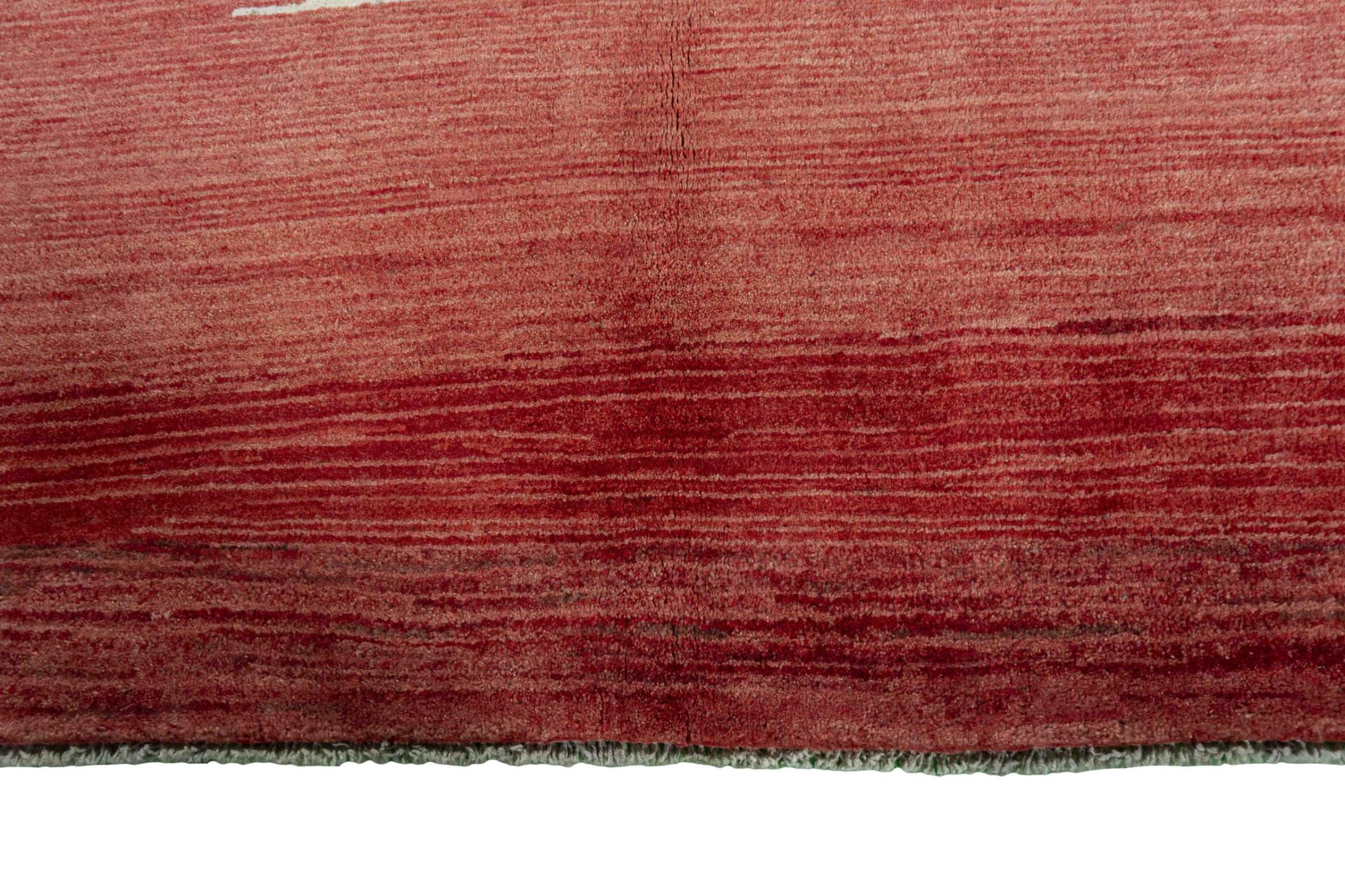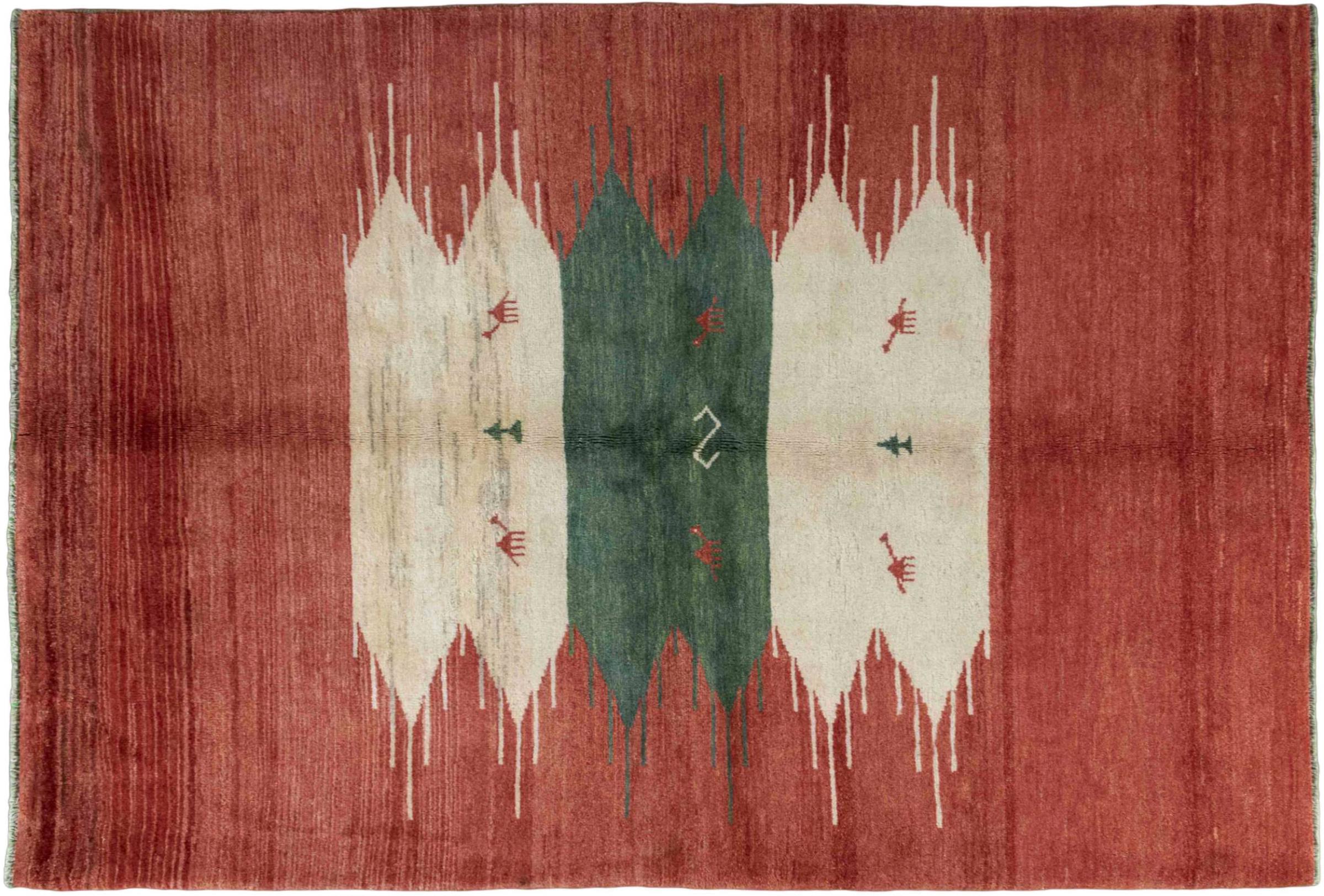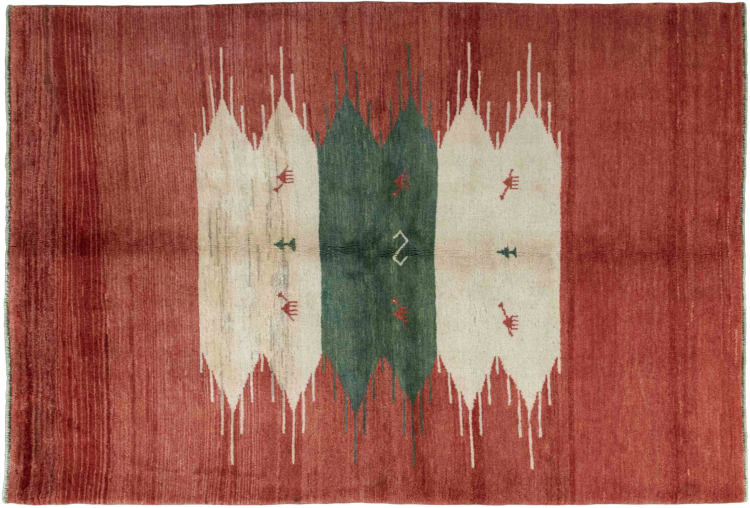 This beautiful rug is a Persian Gabbeh and thus belongs to the highest quality Gabbeh rugs. The rugs are knotted by nomads or semi-nomads in Iran following traditional handicraft. The simple motifs and patterns are mostly inspired by the nomads' close environment. For example camels, trees or bushes can be found on the traditional rugs. Persian Gabbeh rugs are made of wool from locally raised flocks of sheep. The wool is therefore mostly still spun by hand. Thus each of these oriental rugs embodies a unique character of centuries-old culture.