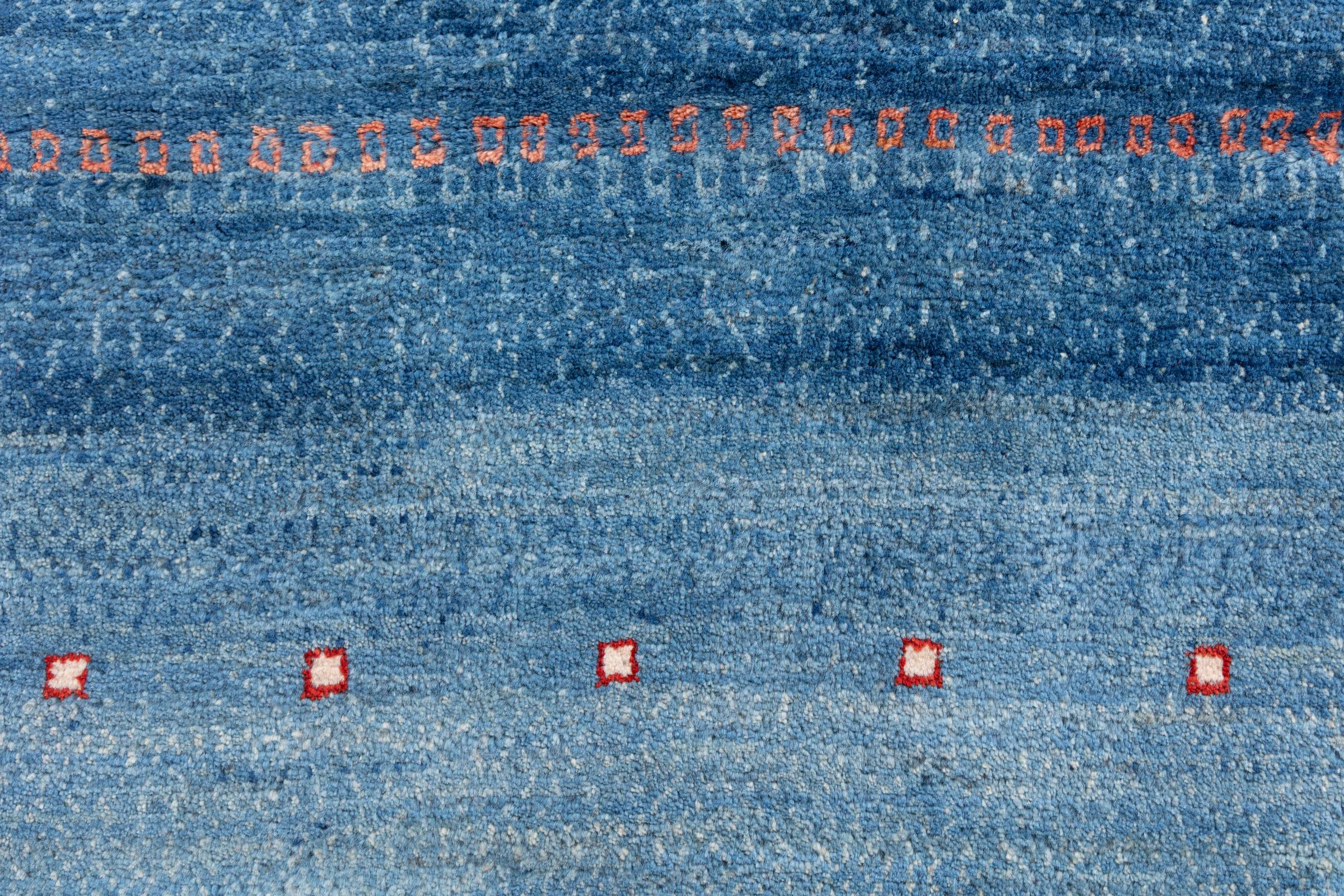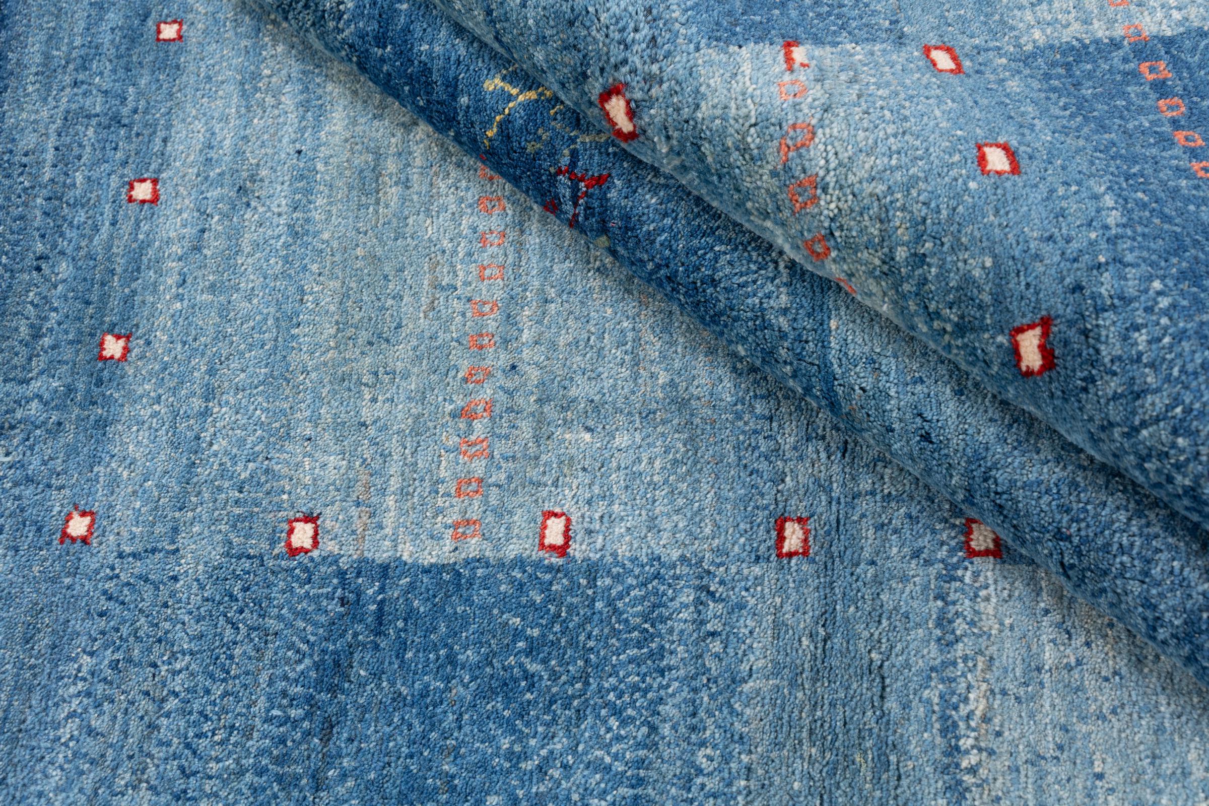 This hand-knotted Persian Gabbeh is immediately impressive with its high quality and very robust pile. It was knotted by hand by Ghashghai nomads in the province of Fars in southern Persia using the best local sheep's wool. Natural vegetable dyes are used to dye the wool. This also makes it a very valuable enrichment for the children's room. This Persian Gabbeh represents the highest class of Gabbeh rugs.