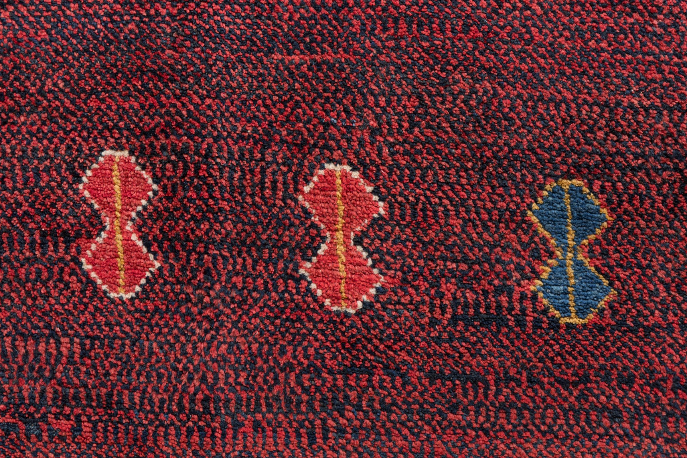 This hand-knotted Persian Gabbeh is immediately impressive with its high quality and very robust pile. It was knotted by hand by Ghashghai nomads in the province of Fars in southern Persia using the best local sheep's wool. Natural vegetable dyes are used to dye the wool. This also makes it a very valuable enrichment for the children's room. This Persian Gabbeh represents the highest class of Gabbeh rugs.
