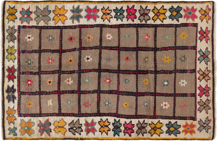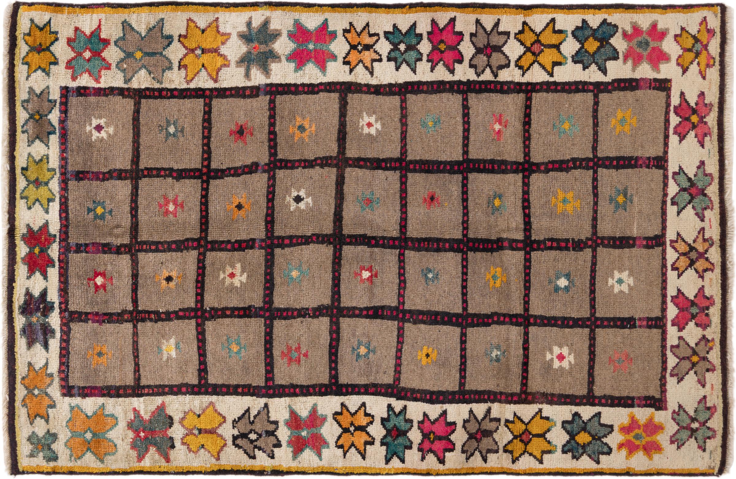 Carpet ID: 29664400960 Size: 153x97 cm Thickness: ap. 15 mm Knot density: 72 000 - 90 000 / m² Manufacturing: Knotted by hand Pile: Handspun wool Warp: Sheep wool Origin: Persia Age: Old, 30-50 years Weight: ap. 4 kg Also know as Gabbe, Ghabbeh In stock: Unique - Only 1 in stock