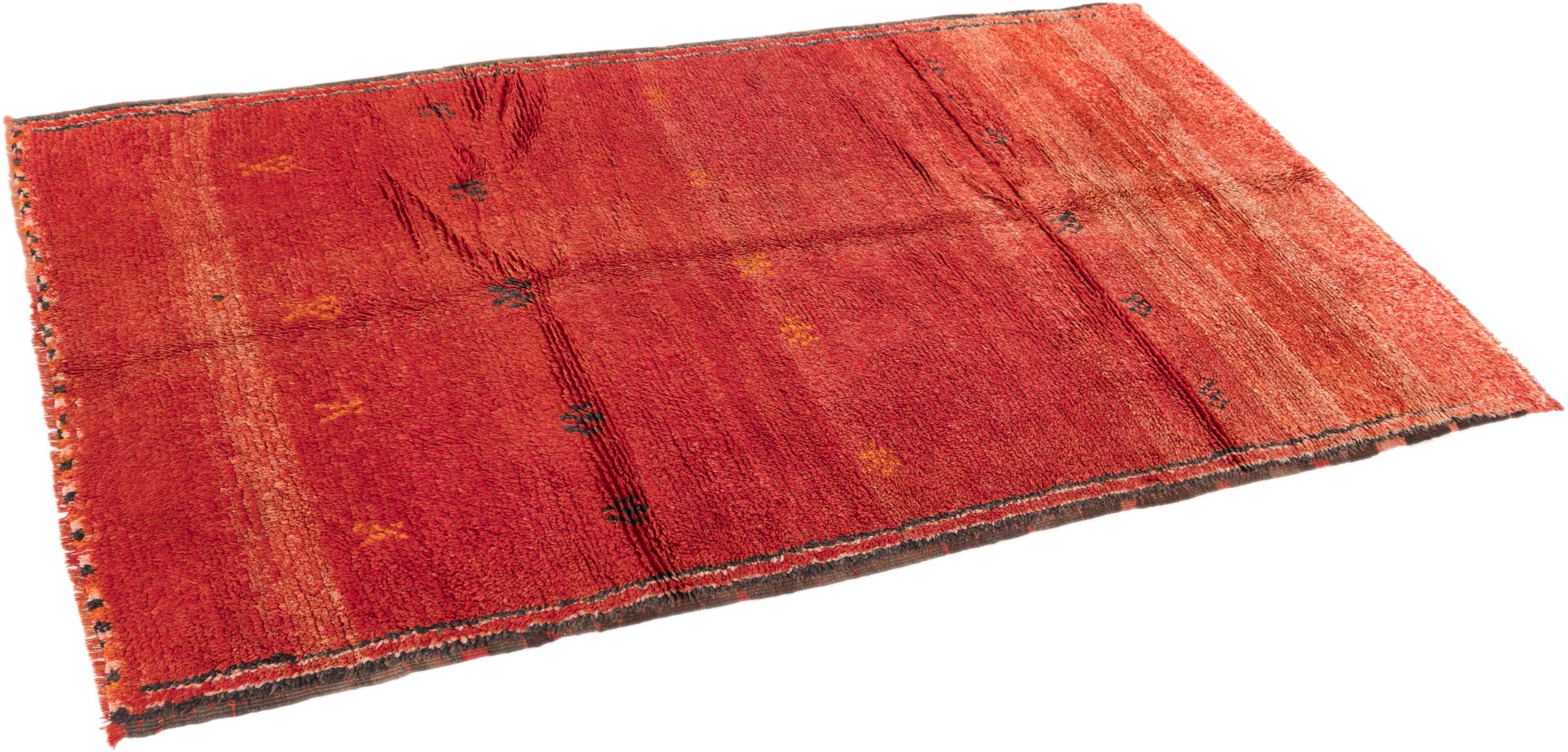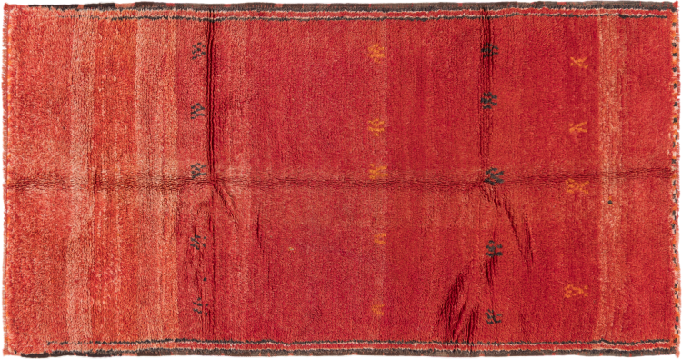 This beautiful rug is a Persian Gabbeh and thus belongs to the highest quality Gabbeh rugs. The rugs are knotted by nomads or semi-nomads in Iran following traditional handicraft. The simple motifs and patterns are mostly inspired by the nomads' close environment. For example camels, trees or bushes can be found on the traditional rugs. Persian Gabbeh rugs are made of wool from locally raised flocks of sheep. The wool is therefore mostly still spun by hand. Thus each of these oriental rugs embodies a unique character of centuries-old culture.