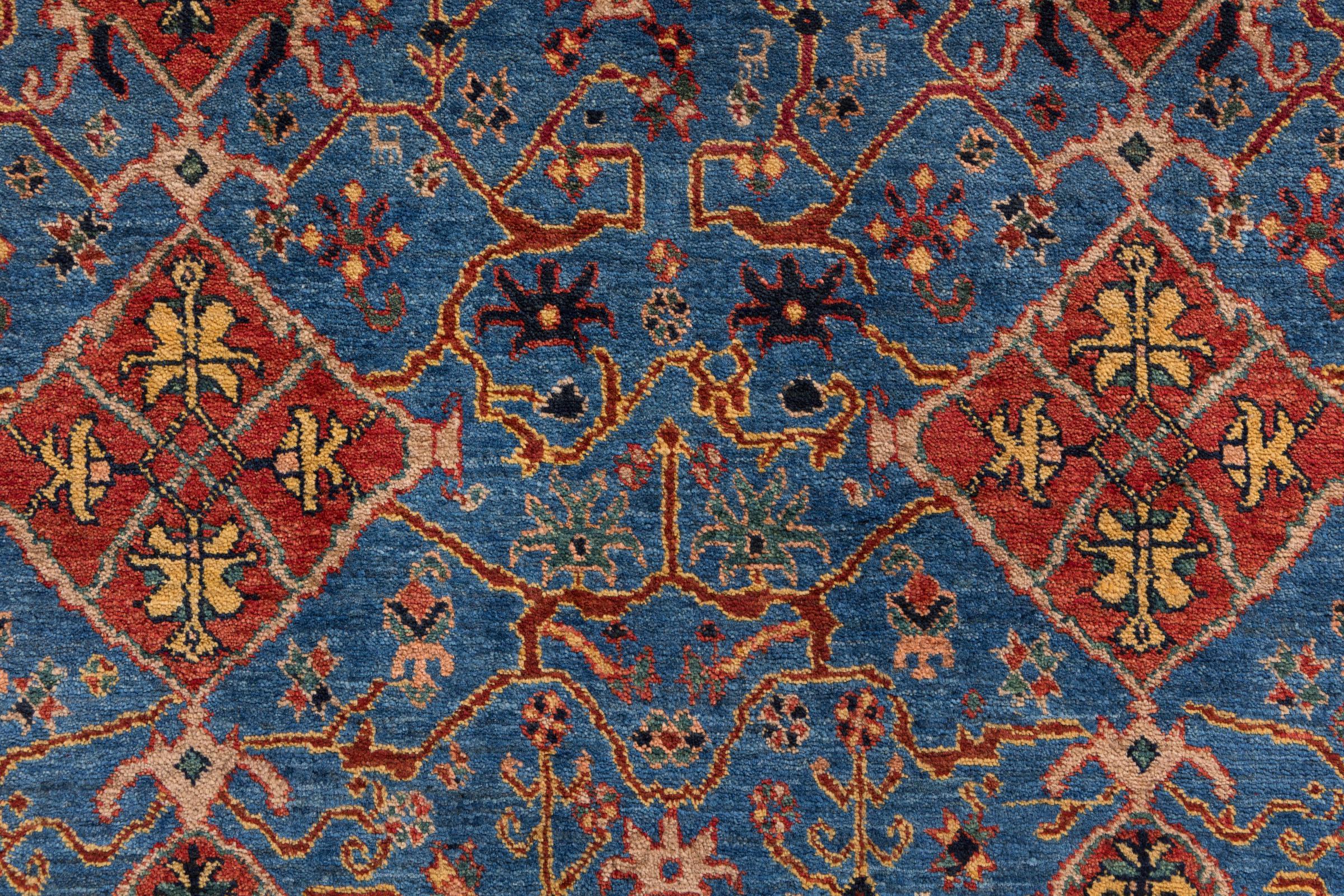 This rug is made of hand spun sheep wool of the highest quality. Especially in Iran (former Persia), Afghanistan and Pakistan wool is still spun by hand before the actual knotting of the rug begins. Wool has proven itself as a natural and extremely hard-wearing material over centuries. Among other things, it has dirt-repellent and heat-insulating properties. At the same time, wool is incomparably soft and has a natural shine.