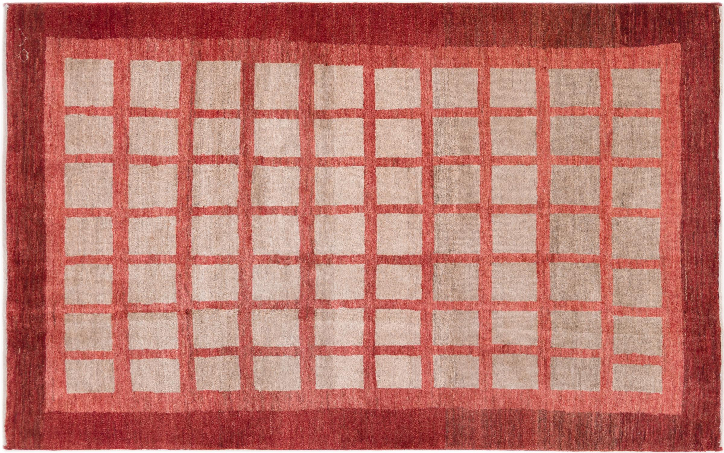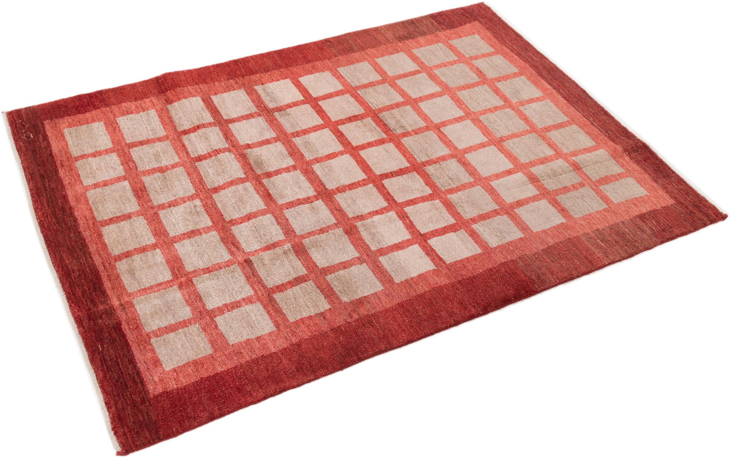 This beautiful rug is a Persian Gabbeh and thus belongs to the highest quality Gabbeh rugs. The rugs are knotted by nomads or semi-nomads in Iran following traditional handicraft. The simple motifs and patterns are mostly inspired by the nomads' close environment. For example camels, trees or bushes can be found on the traditional rugs. Persian Gabbeh rugs are made of wool from locally raised flocks of sheep. The wool is therefore mostly still spun by hand. Thus each of these oriental rugs embodies a unique character of centuries-old culture.