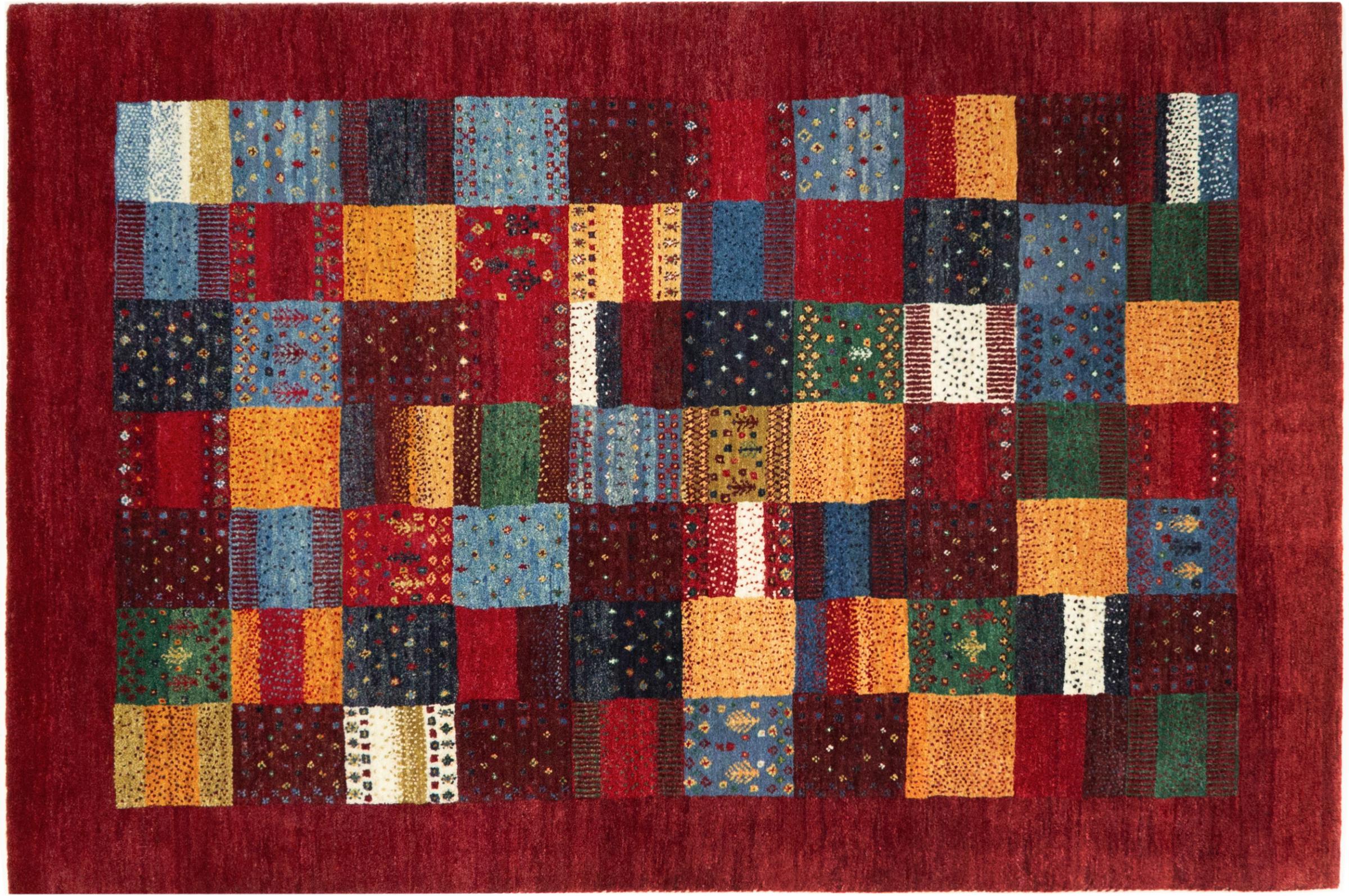 This beautiful rug is a Persian Gabbeh and thus belongs to the highest quality Gabbeh rugs. The rugs are knotted by nomads or semi-nomads in Iran following traditional handicraft. The simple motifs and patterns are mostly inspired by the nomads' close environment. For example camels, trees or bushes can be found on the traditional rugs. Persian Gabbeh rugs are made of wool from locally raised flocks of sheep. The wool is therefore mostly still spun by hand. Thus each of these oriental rugs embodies a unique character of centuries-old culture.