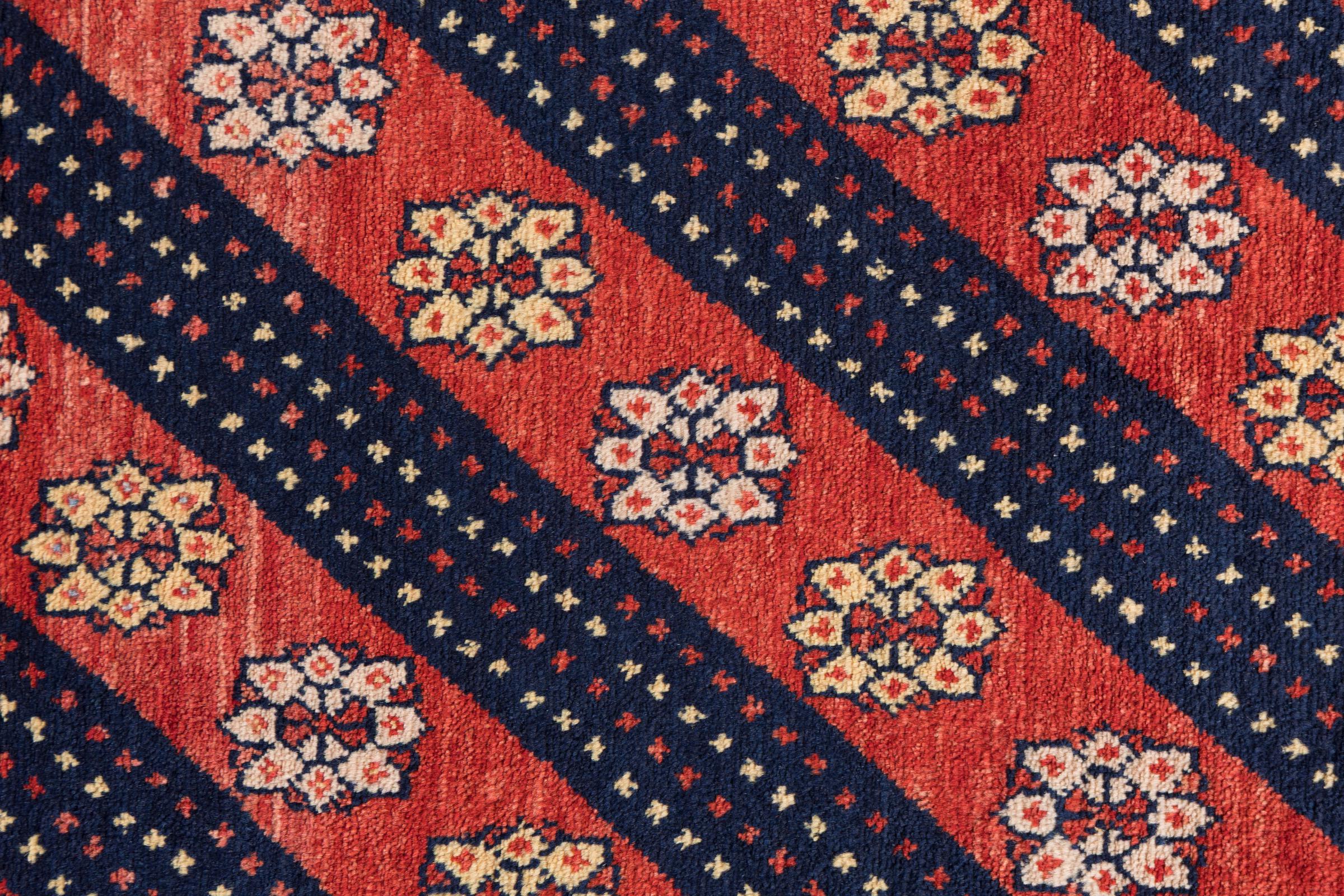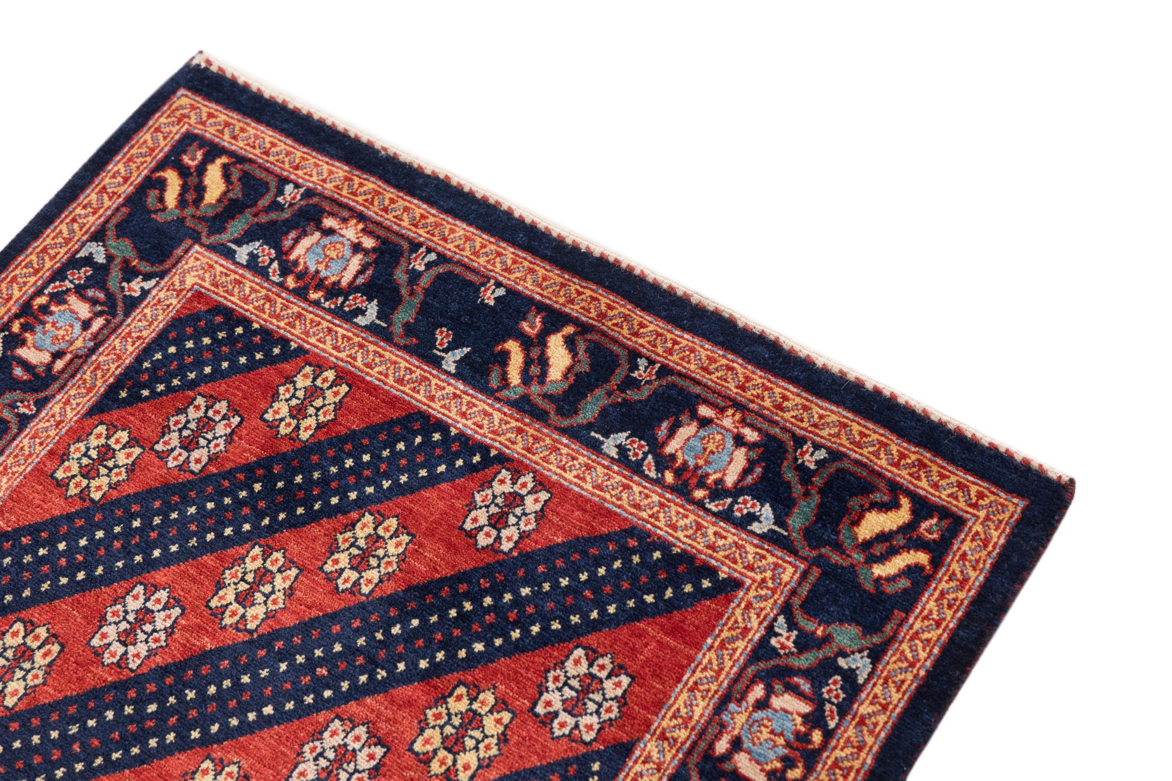 This rug is made of hand spun sheep wool of the highest quality. Especially in Iran (former Persia), Afghanistan and Pakistan wool is still spun by hand before the actual knotting of the rug begins. Wool has proven itself as a natural and extremely hard-wearing material over centuries. Among other things, it has dirt-repellent and heat-insulating properties. At the same time, wool is incomparably soft and has a natural shine.