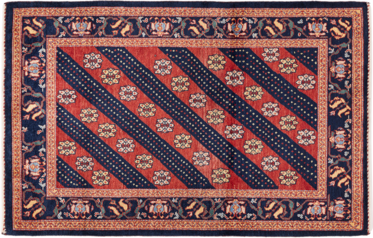 A refinement of the already well-known Gabbeh rugs: That is this Persian Gabbeh Loribaft. With its finer weave and beautiful design, it knows how to impress. It was hand-knotted by Loren in southern Persia from the best hand-spun sheep's wool. Only pure vegetable dyes are used to colour the wool. With this rug, you get the highest standard of Gabbeh rug for your home.