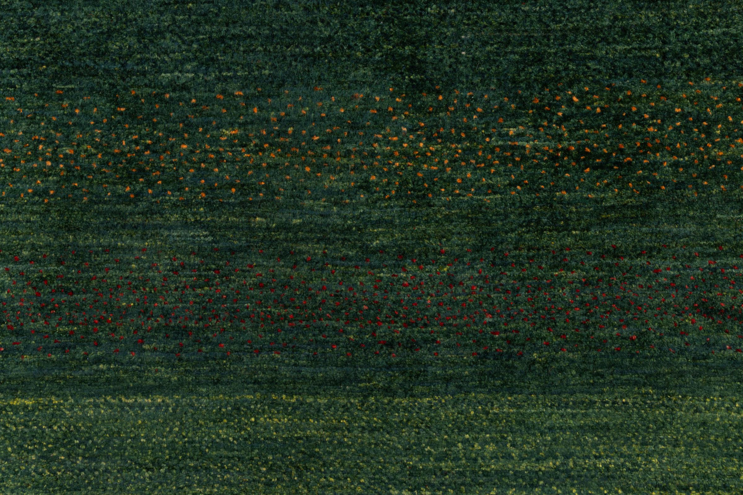 This beautiful rug is a Persian Gabbeh and thus belongs to the highest quality Gabbeh rugs. The rugs are knotted by nomads or semi-nomads in Iran following traditional handicraft. The simple motifs and patterns are mostly inspired by the nomads' close environment. For example camels, trees or bushes can be found on the traditional rugs. Persian Gabbeh rugs are made of wool from locally raised flocks of sheep. The wool is therefore mostly still spun by hand. Thus each of these oriental rugs embodies a unique character of centuries-old culture.