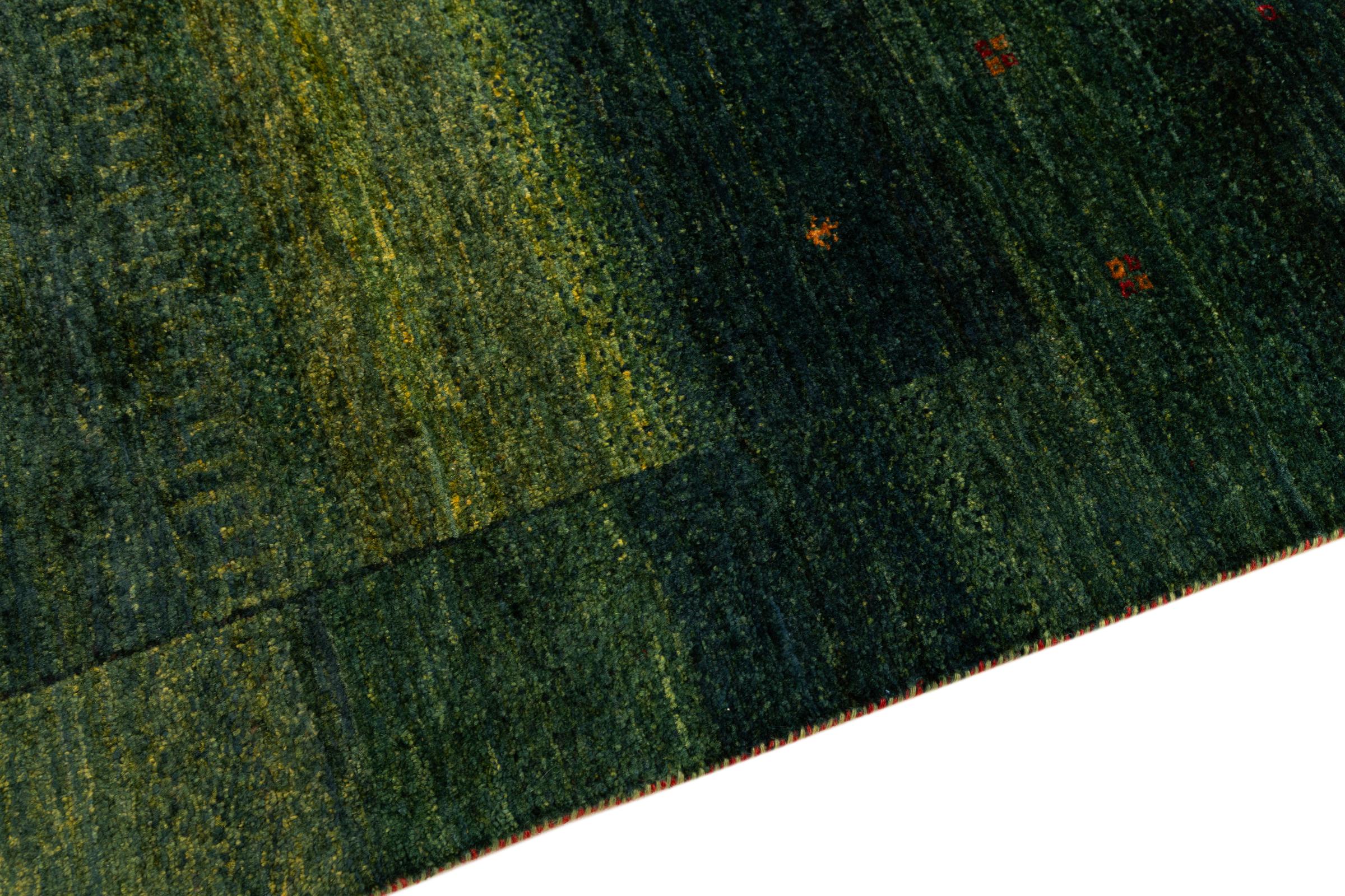 This beautiful rug is a Persian Gabbeh and thus belongs to the highest quality Gabbeh rugs. The rugs are knotted by nomads or semi-nomads in Iran following traditional handicraft. The simple motifs and patterns are mostly inspired by the nomads' close environment. For example camels, trees or bushes can be found on the traditional rugs. Persian Gabbeh rugs are made of wool from locally raised flocks of sheep. The wool is therefore mostly still spun by hand. Thus each of these oriental rugs embodies a unique character of centuries-old culture.