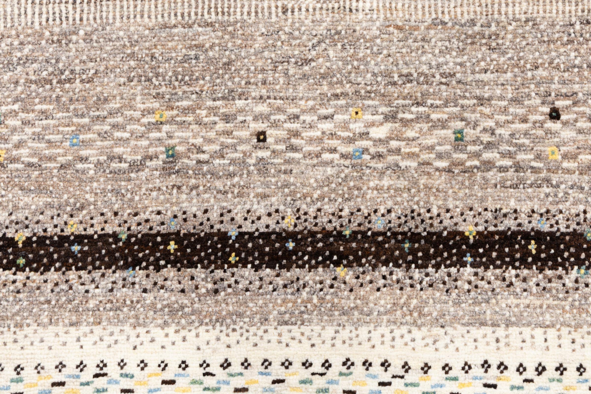 A refinement of the already well-known Gabbeh rugs: That is this Persian Gabbeh Loribaft. With its finer weave and beautiful design, it knows how to impress. It was hand-knotted by Loren in southern Persia from the best hand-spun sheep's wool. Only pure vegetable dyes are used to colour the wool. With this rug, you get the highest standard of Gabbeh rug for your home.