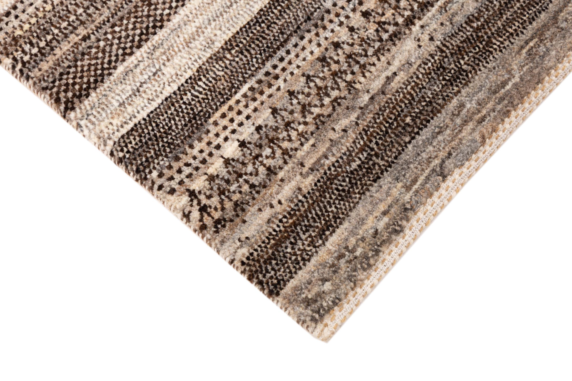 This beautiful rug is a Persian Gabbeh and thus belongs to the highest quality Gabbeh rugs. The rugs are knotted by nomads or semi-nomads in Iran following traditional handicraft. The simple motifs and patterns are mostly inspired by the nomads' close environment. For example camels, trees or bushes can be found on the traditional rugs. Persian Gabbeh rugs are made of wool from locally raised flocks of sheep. The wool is therefore mostly still spun by hand. Thus each of these oriental rugs embodies a unique character of centuries-old culture.